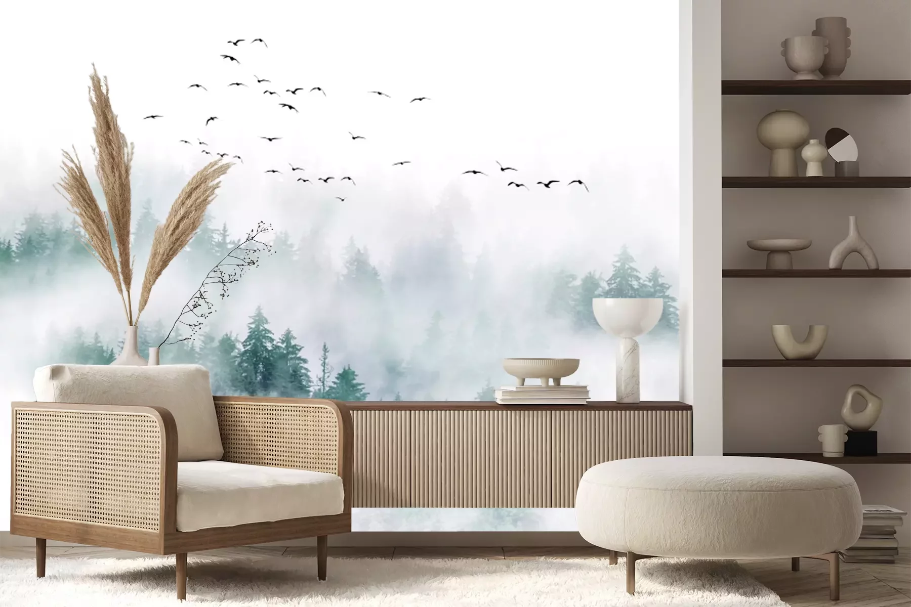 Het materiaal Premium+ is een gestructureerd vinyl op vlies met een gewicht van 255 g/m², dat kleine oneffenheden in de muur effectief camoufleert. De subtiele structuur van fijn zand geeft het oppervlak een exclusieve uitstraling, terwijl de halfmatte afwerking de diepte van de kleuren benadrukt. Het materiaal is dampdoorlatend, waardoor het ook in de keuken en badkamer kan worden gebruikt. De maximale breedte van één baan bedraagt 100 cm – bij grotere afmetingen wordt het fotobehang in meerdere gelijke banen verdeeld. De lijm wordt direct op de muur aangebracht en het behang wordt rand-aan-rand geplakt, wat zorgt voor een esthetisch resultaat zonder zichtbare naden. Het oppervlak kan gemakkelijk worden schoongemaakt door het voorzichtig af te nemen met een vochtige doek.