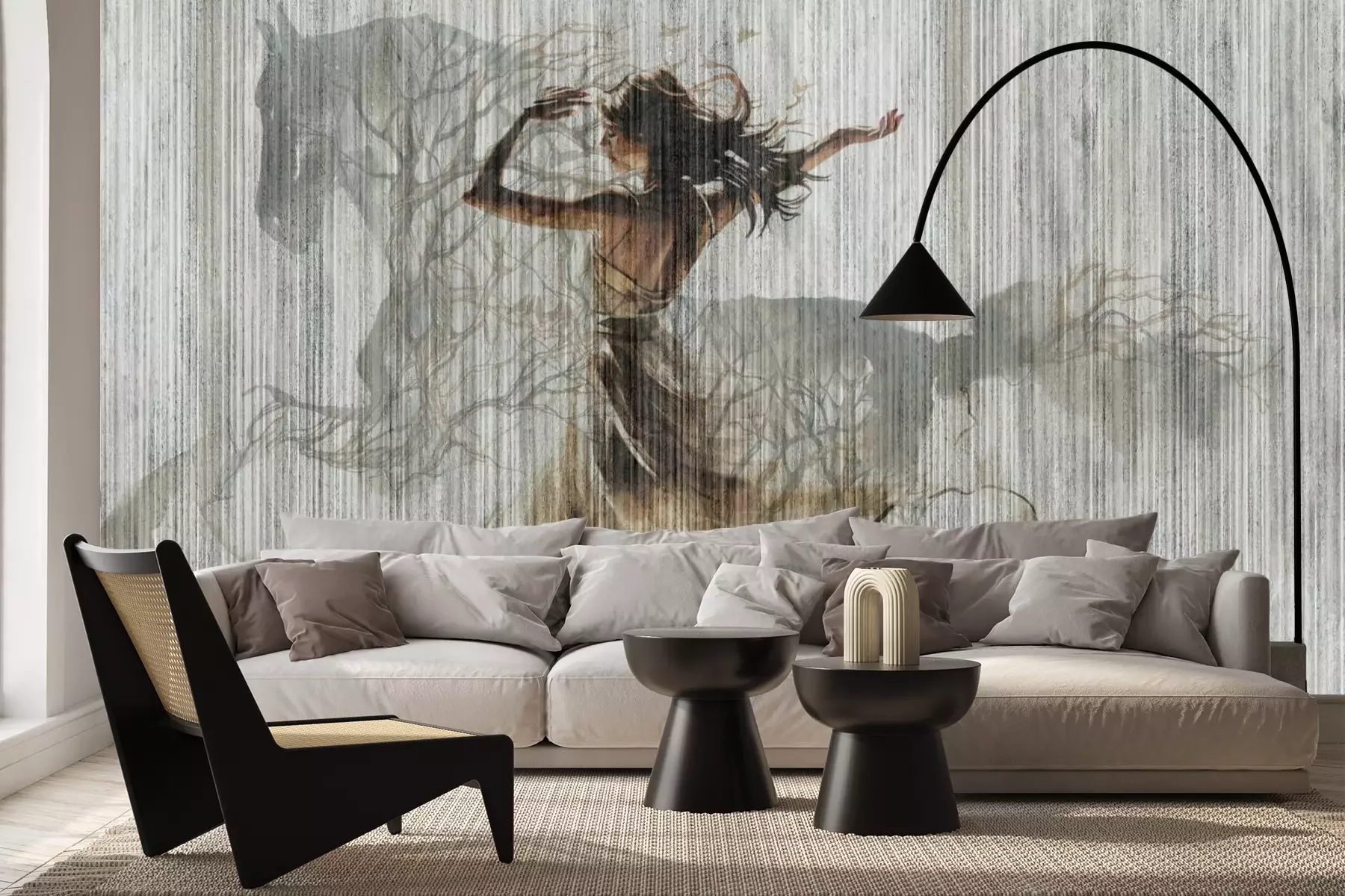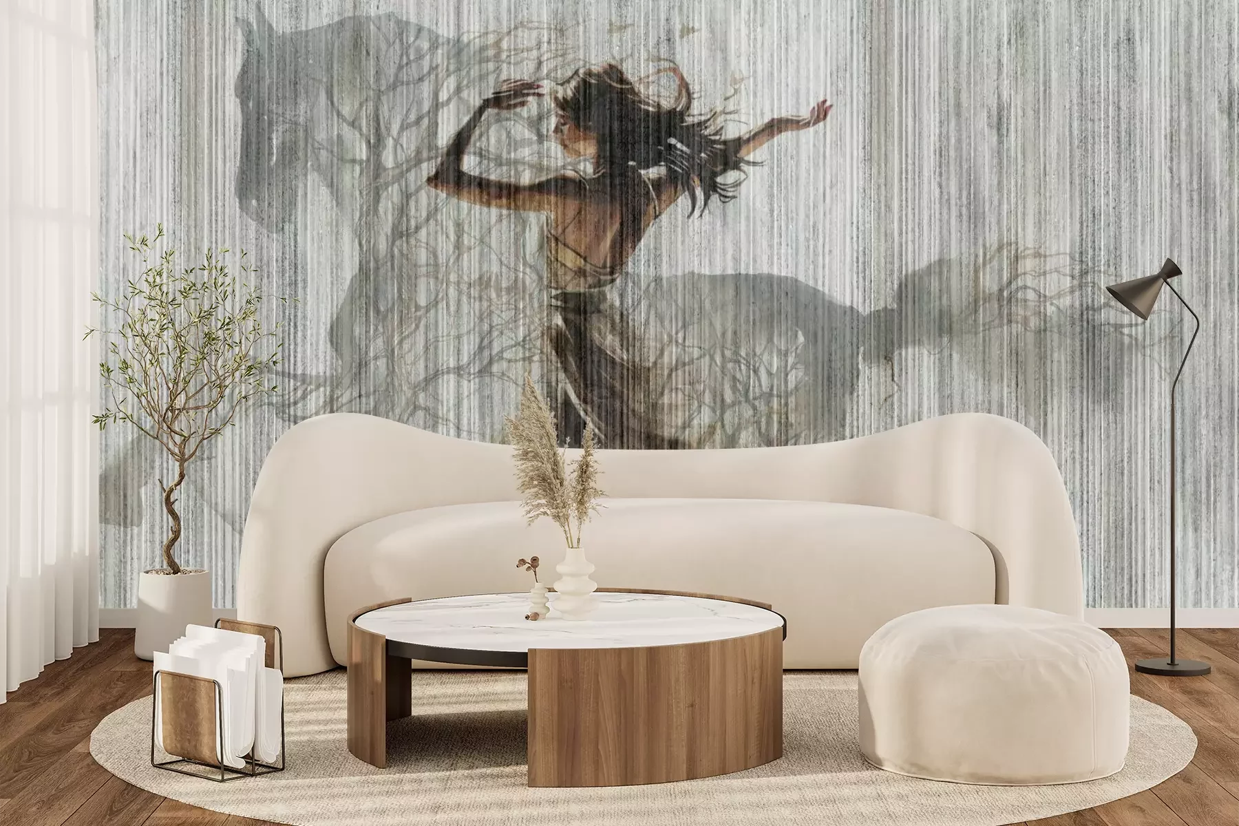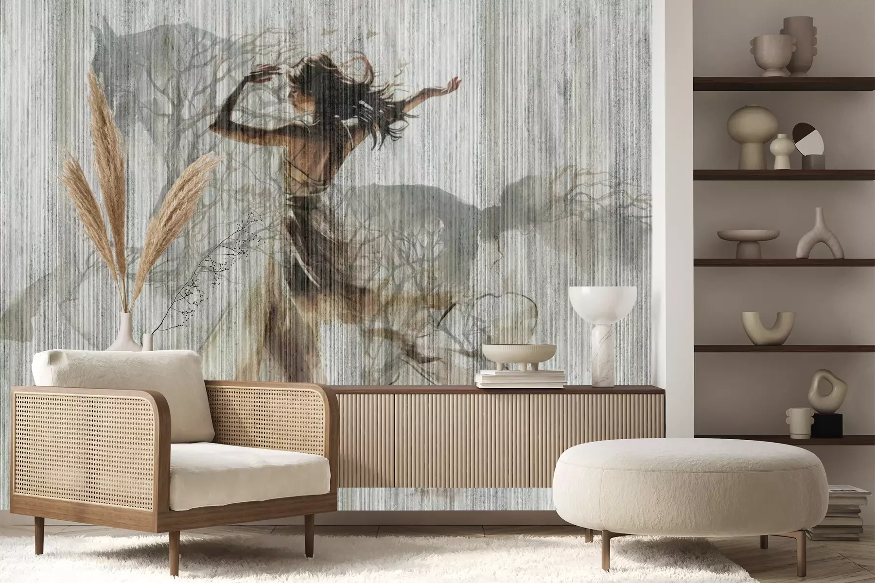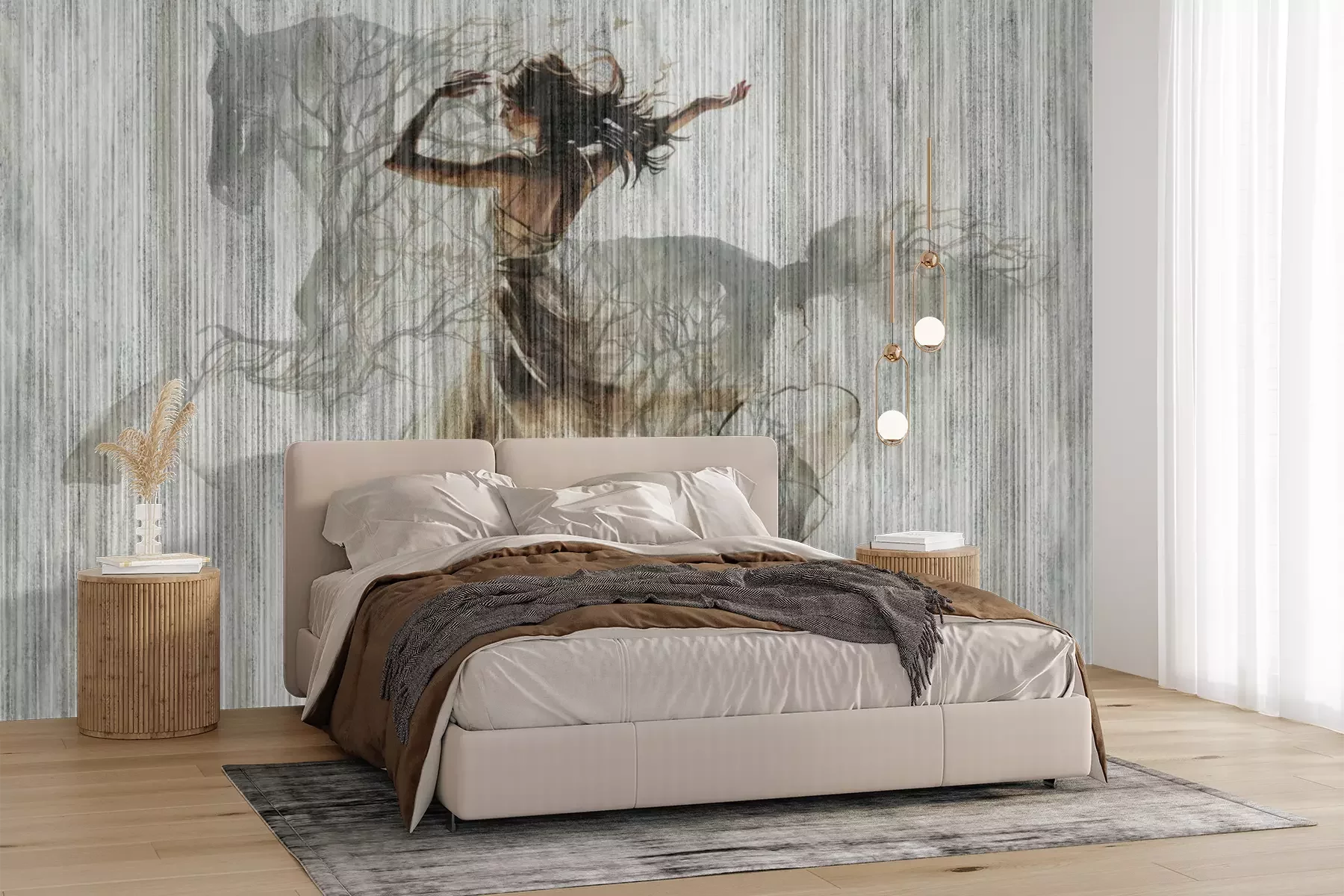 Het materiaal Premium+ is een gestructureerd vinyl op vlies met een gewicht van 255 g/m², dat kleine oneffenheden in de muur effectief camoufleert. De subtiele structuur van fijn zand geeft het oppervlak een exclusieve uitstraling, terwijl de halfmatte afwerking de diepte van de kleuren benadrukt. Het materiaal is dampdoorlatend, waardoor het ook in de keuken en badkamer kan worden gebruikt. De maximale breedte van één baan bedraagt 100 cm – bij grotere afmetingen wordt het fotobehang in meerdere gelijke banen verdeeld. De lijm wordt direct op de muur aangebracht en het behang wordt rand-aan-rand geplakt, wat zorgt voor een esthetisch resultaat zonder zichtbare naden. Het oppervlak kan gemakkelijk worden schoongemaakt door het voorzichtig af te nemen met een vochtige doek.