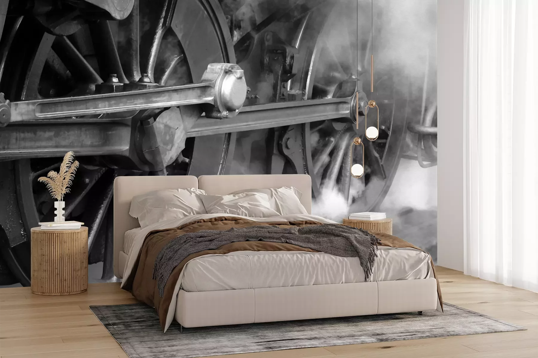Het materiaal Premium+ is een gestructureerd vinyl op vlies met een gewicht van 255 g/m², dat kleine oneffenheden in de muur effectief camoufleert. De subtiele structuur van fijn zand geeft het oppervlak een exclusieve uitstraling, terwijl de halfmatte afwerking de diepte van de kleuren benadrukt. Het materiaal is dampdoorlatend, waardoor het ook in de keuken en badkamer kan worden gebruikt. De maximale breedte van één baan bedraagt 100 cm – bij grotere afmetingen wordt het fotobehang in meerdere gelijke banen verdeeld. De lijm wordt direct op de muur aangebracht en het behang wordt rand-aan-rand geplakt, wat zorgt voor een esthetisch resultaat zonder zichtbare naden. Het oppervlak kan gemakkelijk worden schoongemaakt door het voorzichtig af te nemen met een vochtige doek.