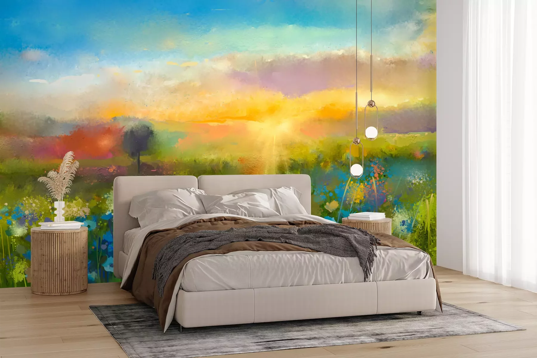 Het materiaal Premium+ is een gestructureerd vinyl op vlies met een gewicht van 255 g/m², dat kleine oneffenheden in de muur effectief camoufleert. De subtiele structuur van fijn zand geeft het oppervlak een exclusieve uitstraling, terwijl de halfmatte afwerking de diepte van de kleuren benadrukt. Het materiaal is dampdoorlatend, waardoor het ook in de keuken en badkamer kan worden gebruikt. De maximale breedte van één baan bedraagt 100 cm – bij grotere afmetingen wordt het fotobehang in meerdere gelijke banen verdeeld. De lijm wordt direct op de muur aangebracht en het behang wordt rand-aan-rand geplakt, wat zorgt voor een esthetisch resultaat zonder zichtbare naden. Het oppervlak kan gemakkelijk worden schoongemaakt door het voorzichtig af te nemen met een vochtige doek.