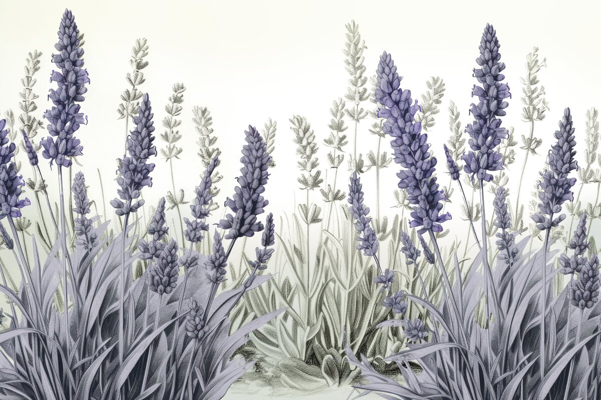 Fotobehang: Een open plek met lavendel in grijsachtige kleuren