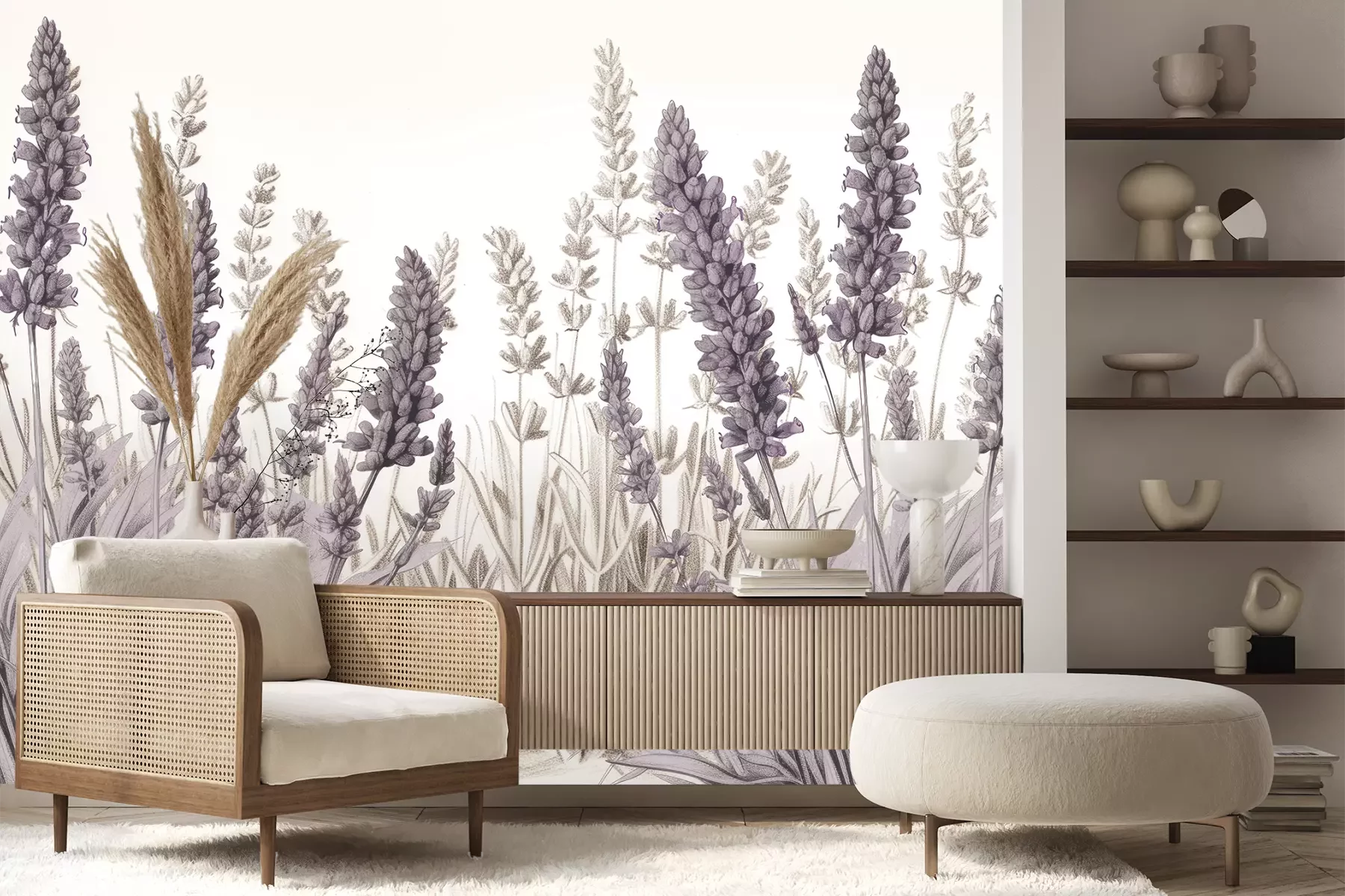 Het materiaal Premium+ is een gestructureerd vinyl op vlies met een gewicht van 255 g/m², dat kleine oneffenheden in de muur effectief camoufleert. De subtiele structuur van fijn zand geeft het oppervlak een exclusieve uitstraling, terwijl de halfmatte afwerking de diepte van de kleuren benadrukt. Het materiaal is dampdoorlatend, waardoor het ook in de keuken en badkamer kan worden gebruikt. De maximale breedte van één baan bedraagt 100 cm – bij grotere afmetingen wordt het fotobehang in meerdere gelijke banen verdeeld. De lijm wordt direct op de muur aangebracht en het behang wordt rand-aan-rand geplakt, wat zorgt voor een esthetisch resultaat zonder zichtbare naden. Het oppervlak kan gemakkelijk worden schoongemaakt door het voorzichtig af te nemen met een vochtige doek.
