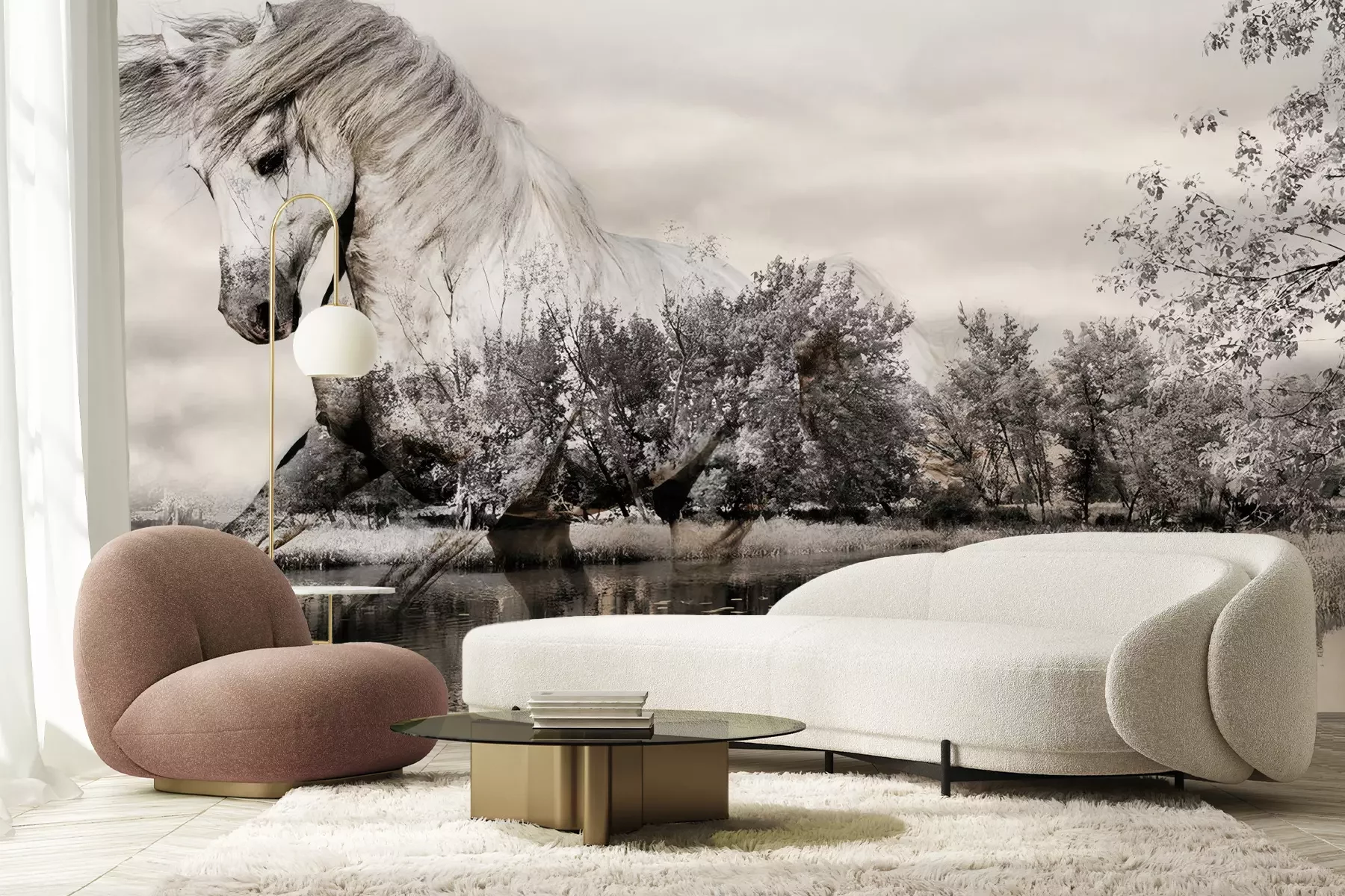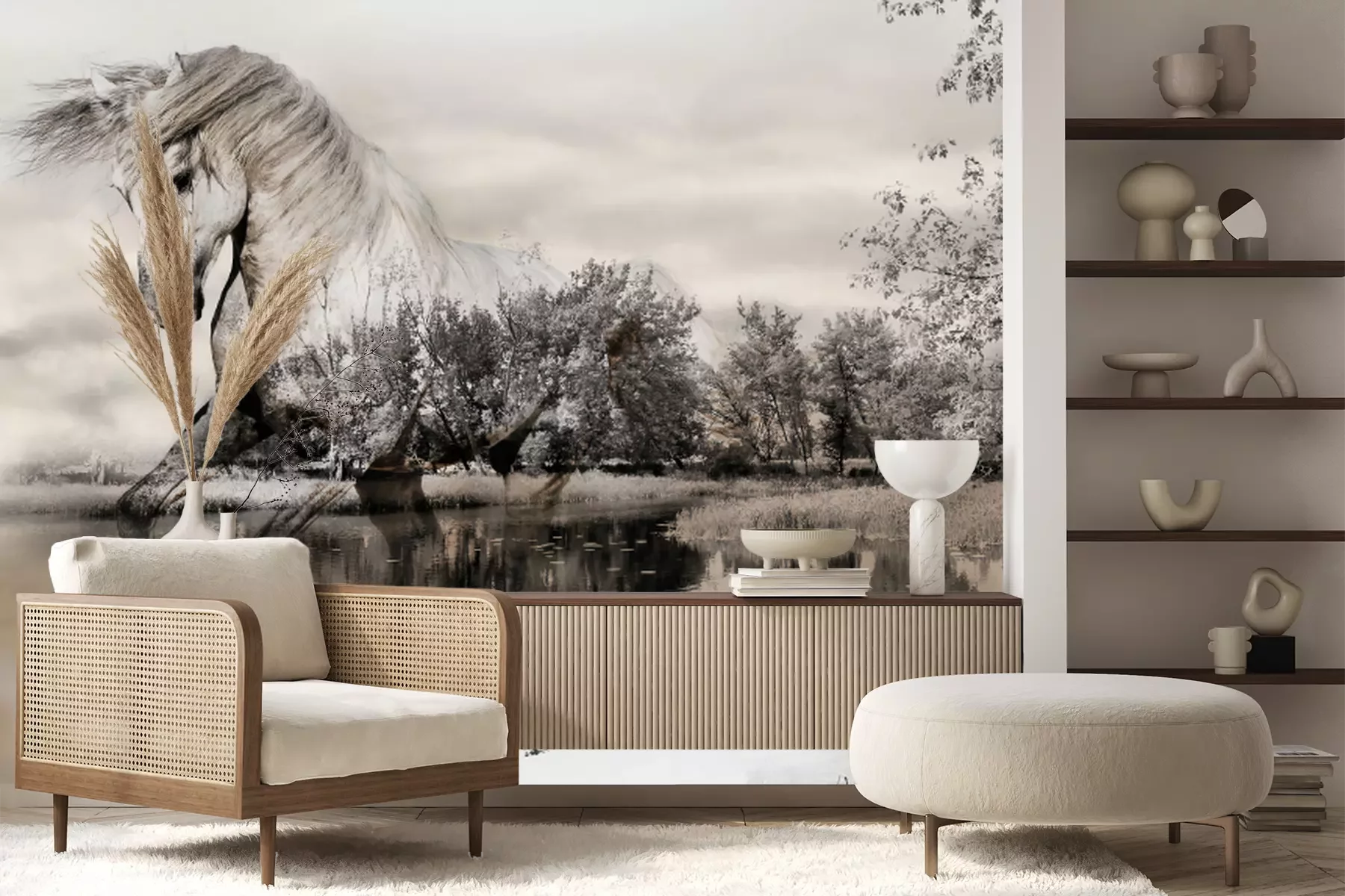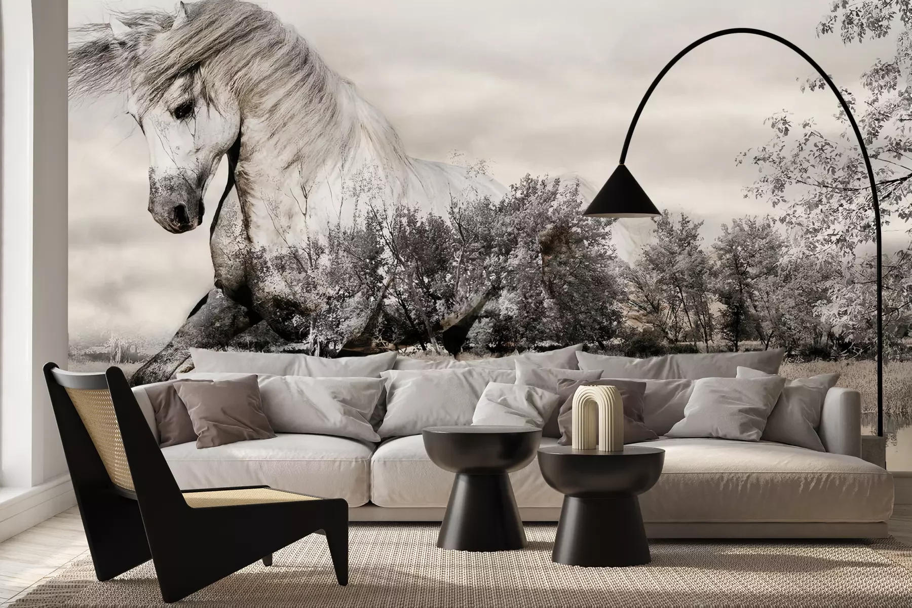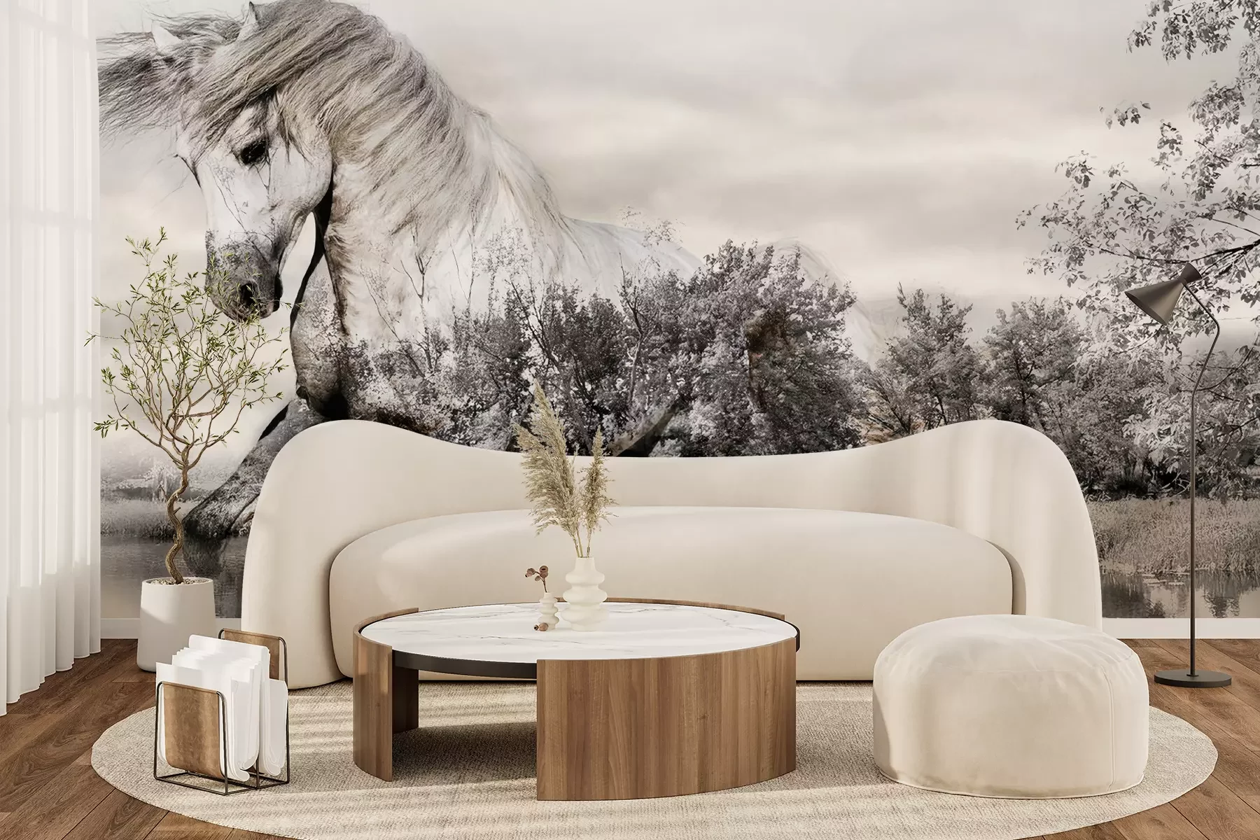 Het materiaal Premium+ is een gestructureerd vinyl op vlies met een gewicht van 255 g/m², dat kleine oneffenheden in de muur effectief camoufleert. De subtiele structuur van fijn zand geeft het oppervlak een exclusieve uitstraling, terwijl de halfmatte afwerking de diepte van de kleuren benadrukt. Het materiaal is dampdoorlatend, waardoor het ook in de keuken en badkamer kan worden gebruikt. De maximale breedte van één baan bedraagt 100 cm – bij grotere afmetingen wordt het fotobehang in meerdere gelijke banen verdeeld. De lijm wordt direct op de muur aangebracht en het behang wordt rand-aan-rand geplakt, wat zorgt voor een esthetisch resultaat zonder zichtbare naden. Het oppervlak kan gemakkelijk worden schoongemaakt door het voorzichtig af te nemen met een vochtige doek.