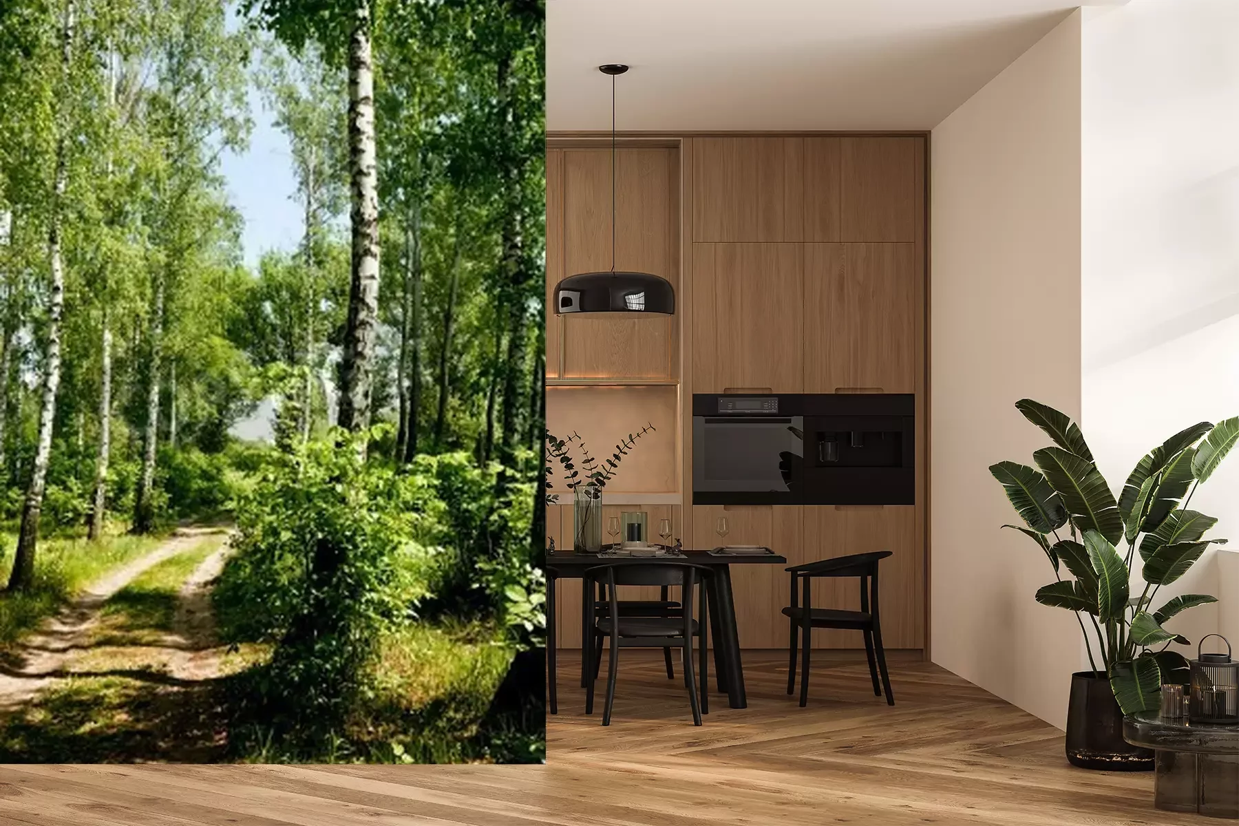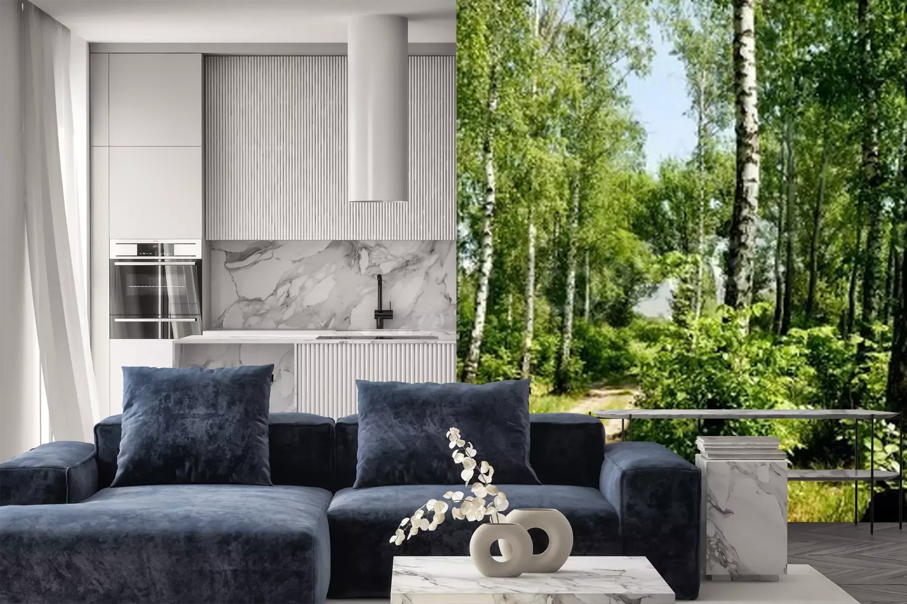 Fotobehang Een pad door een berkenbos
