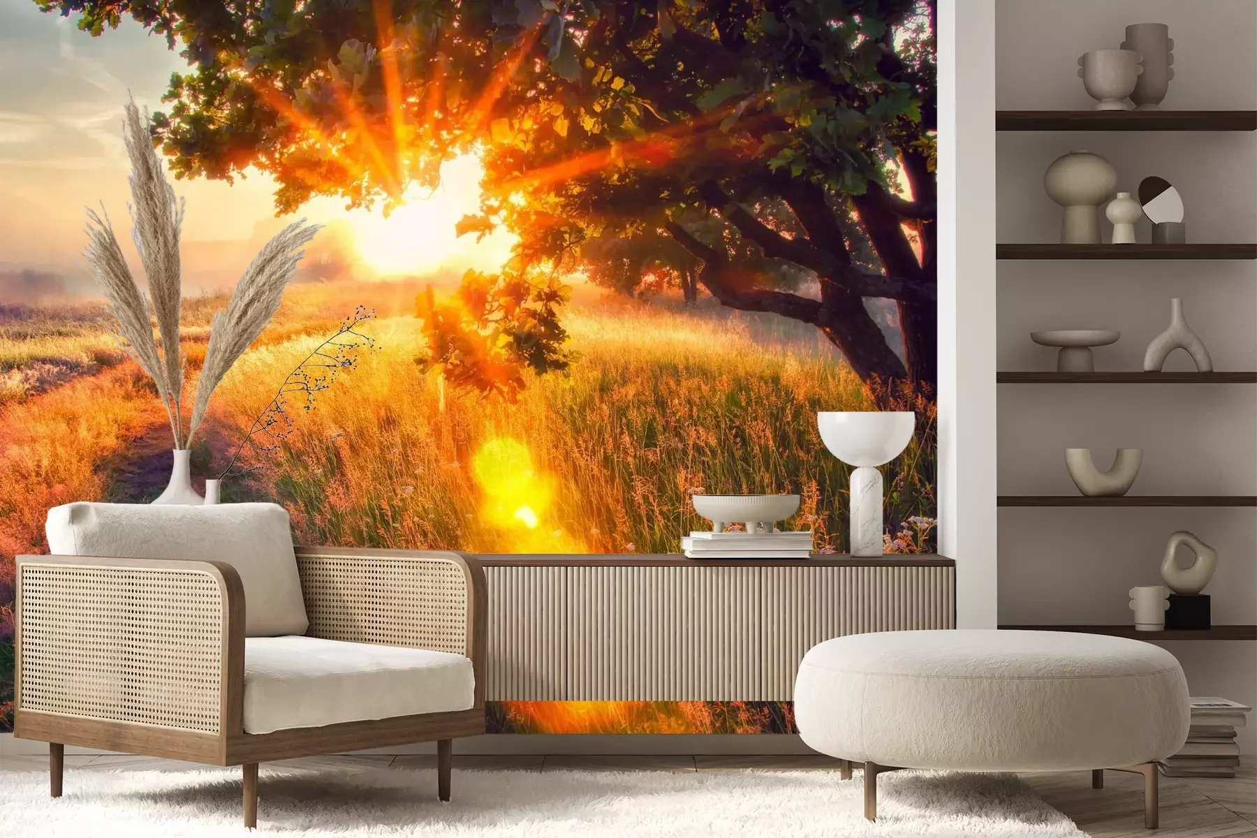 Het materiaal Premium+ is een gestructureerd vinyl op vlies met een gewicht van 255 g/m², dat kleine oneffenheden in de muur effectief camoufleert. De subtiele structuur van fijn zand geeft het oppervlak een exclusieve uitstraling, terwijl de halfmatte afwerking de diepte van de kleuren benadrukt. Het materiaal is dampdoorlatend, waardoor het ook in de keuken en badkamer kan worden gebruikt. De maximale breedte van één baan bedraagt 100 cm – bij grotere afmetingen wordt het fotobehang in meerdere gelijke banen verdeeld. De lijm wordt direct op de muur aangebracht en het behang wordt rand-aan-rand geplakt, wat zorgt voor een esthetisch resultaat zonder zichtbare naden. Het oppervlak kan gemakkelijk worden schoongemaakt door het voorzichtig af te nemen met een vochtige doek.