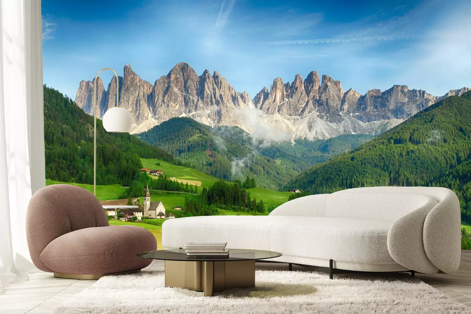 Het materiaal Premium+ is een gestructureerd vinyl op vlies met een gewicht van 255 g/m², dat kleine oneffenheden in de muur effectief camoufleert. De subtiele structuur van fijn zand geeft het oppervlak een exclusieve uitstraling, terwijl de halfmatte afwerking de diepte van de kleuren benadrukt. Het materiaal is dampdoorlatend, waardoor het ook in de keuken en badkamer kan worden gebruikt. De maximale breedte van één baan bedraagt 100 cm – bij grotere afmetingen wordt het fotobehang in meerdere gelijke banen verdeeld. De lijm wordt direct op de muur aangebracht en het behang wordt rand-aan-rand geplakt, wat zorgt voor een esthetisch resultaat zonder zichtbare naden. Het oppervlak kan gemakkelijk worden schoongemaakt door het voorzichtig af te nemen met een vochtige doek.