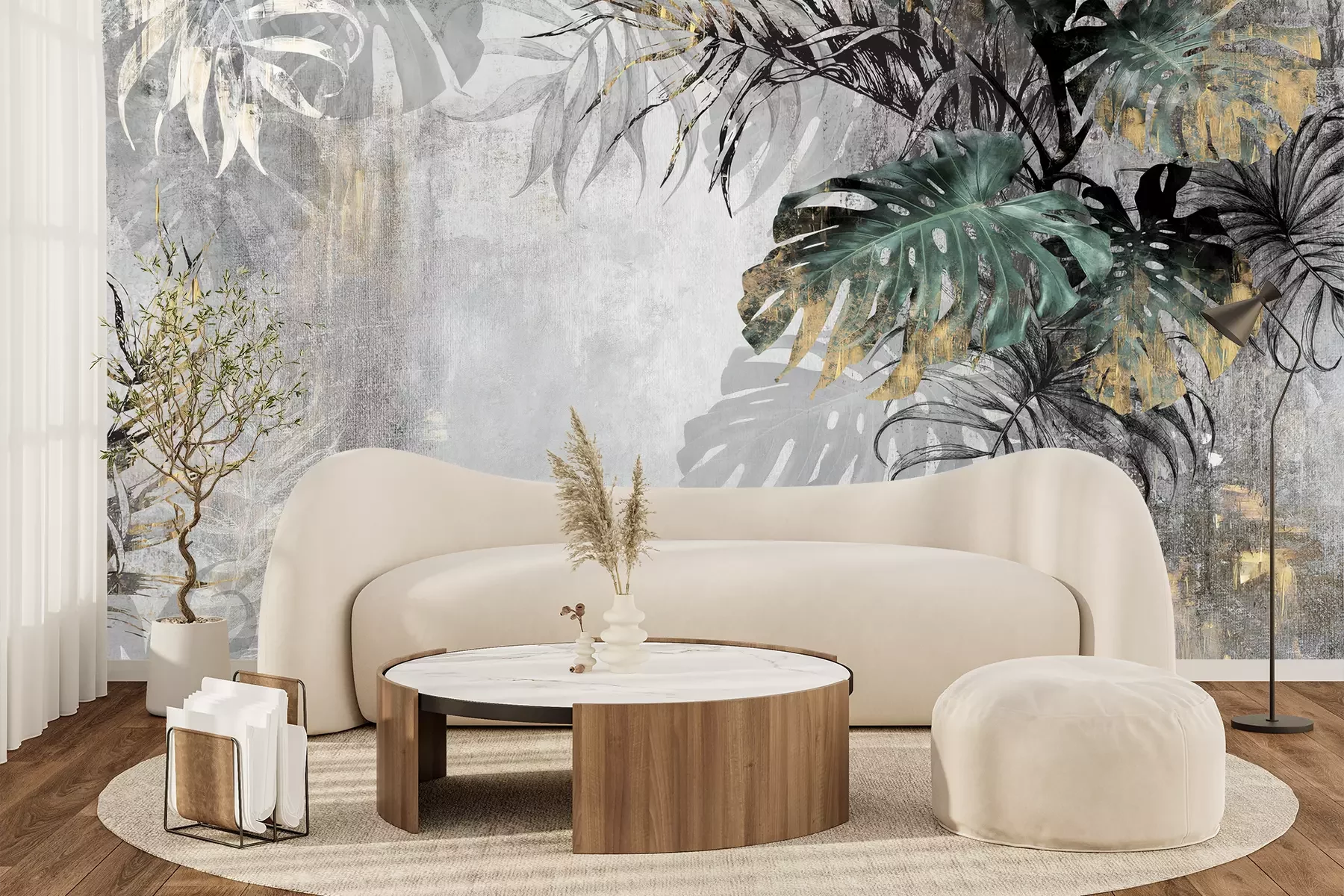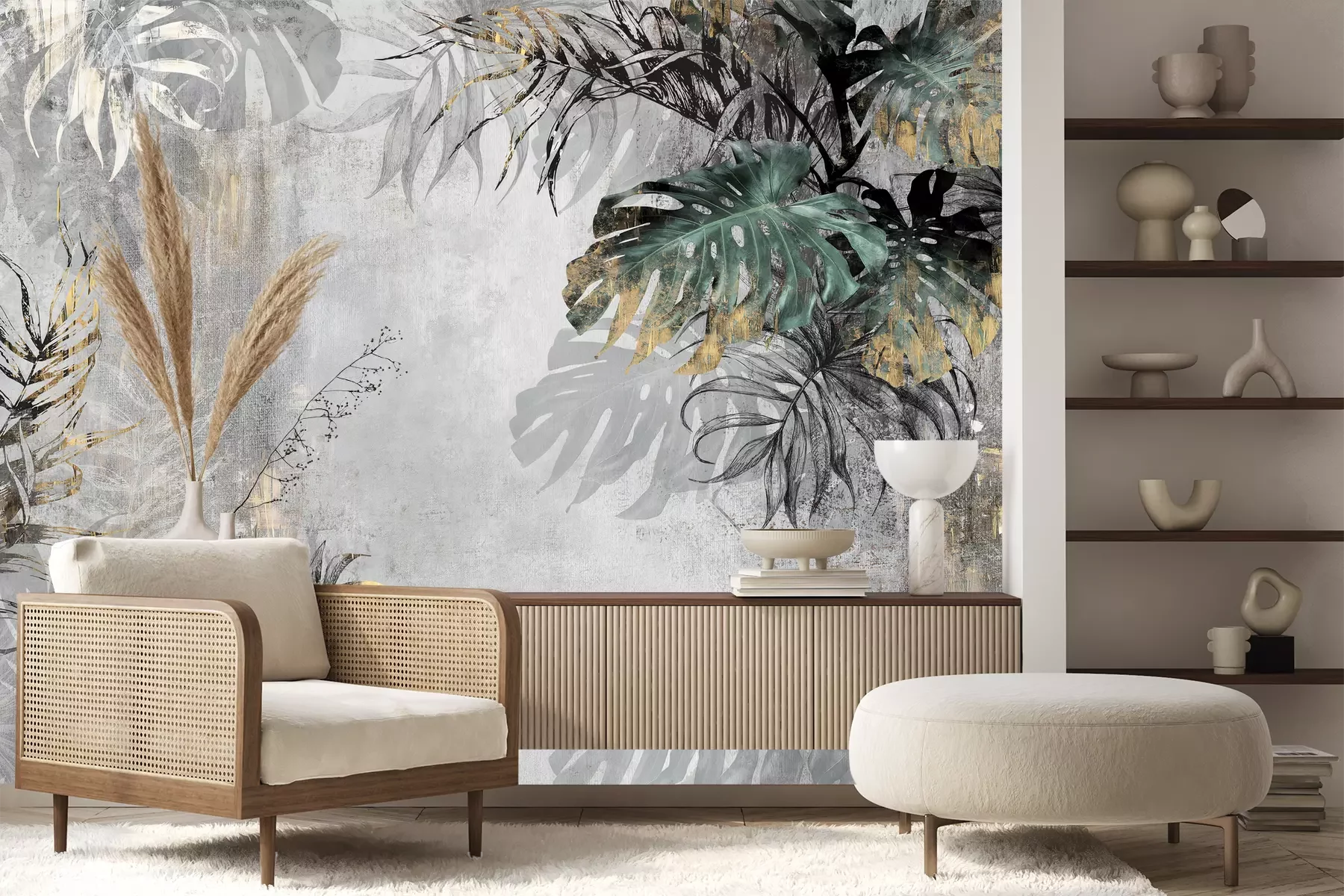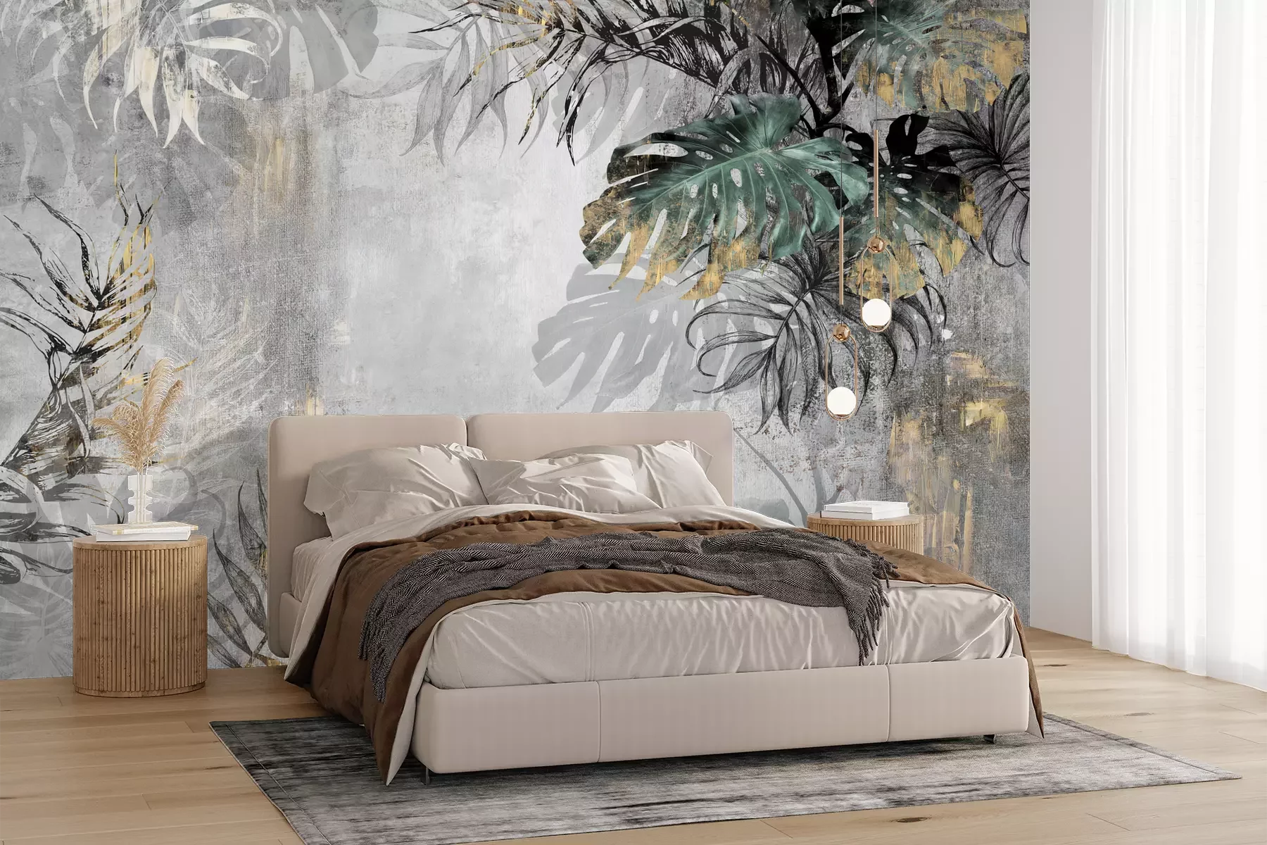 Het materiaal Premium+ is een gestructureerd vinyl op vlies met een gewicht van 255 g/m², dat kleine oneffenheden in de muur effectief camoufleert. De subtiele structuur van fijn zand geeft het oppervlak een exclusieve uitstraling, terwijl de halfmatte afwerking de diepte van de kleuren benadrukt. Het materiaal is dampdoorlatend, waardoor het ook in de keuken en badkamer kan worden gebruikt. De maximale breedte van één baan bedraagt 100 cm – bij grotere afmetingen wordt het fotobehang in meerdere gelijke banen verdeeld. De lijm wordt direct op de muur aangebracht en het behang wordt rand-aan-rand geplakt, wat zorgt voor een esthetisch resultaat zonder zichtbare naden. Het oppervlak kan gemakkelijk worden schoongemaakt door het voorzichtig af te nemen met een vochtige doek.