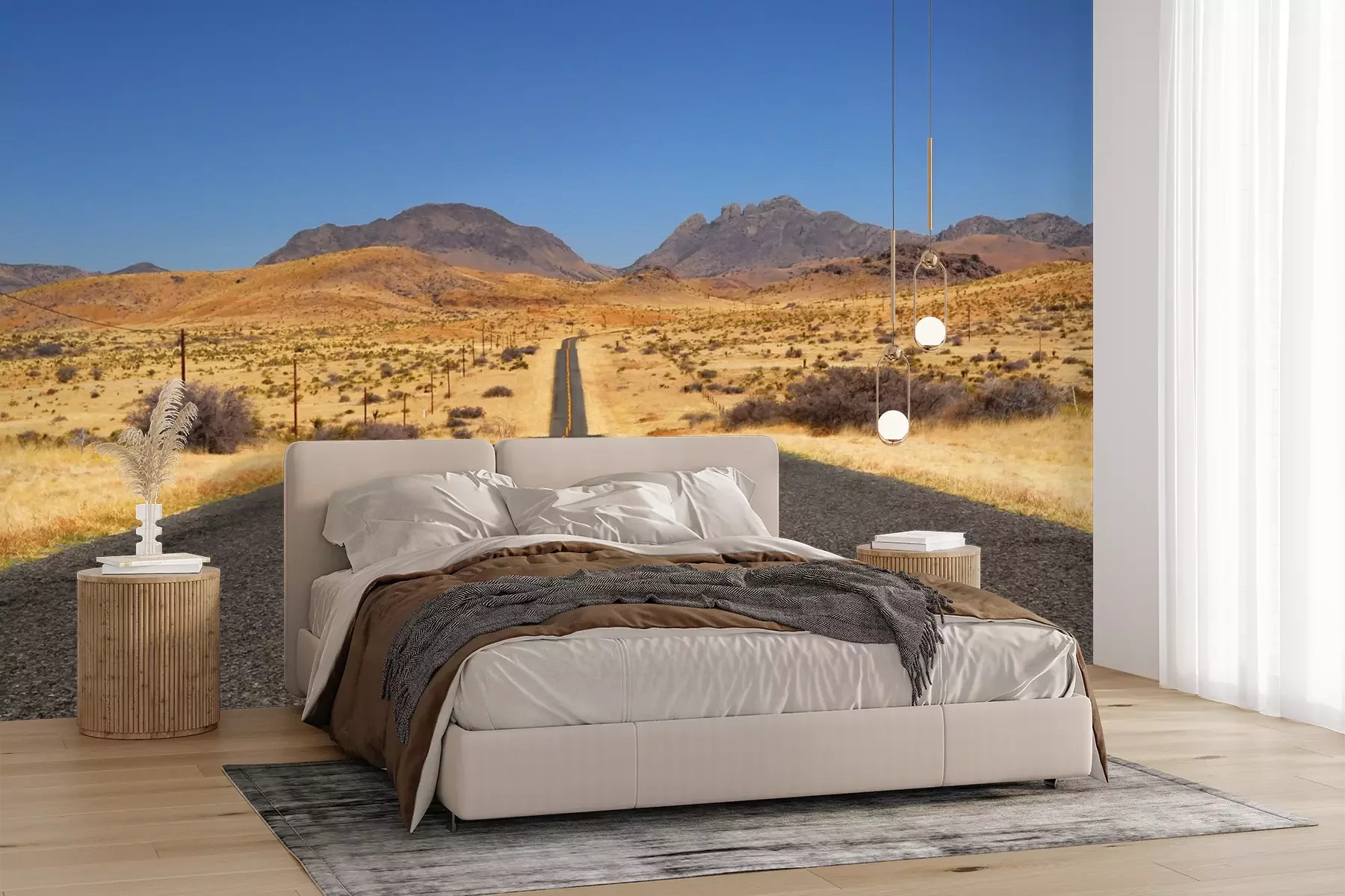 Het materiaal Premium+ is een gestructureerd vinyl op vlies met een gewicht van 255 g/m², dat kleine oneffenheden in de muur effectief camoufleert. De subtiele structuur van fijn zand geeft het oppervlak een exclusieve uitstraling, terwijl de halfmatte afwerking de diepte van de kleuren benadrukt. Het materiaal is dampdoorlatend, waardoor het ook in de keuken en badkamer kan worden gebruikt. De maximale breedte van één baan bedraagt 100 cm – bij grotere afmetingen wordt het fotobehang in meerdere gelijke banen verdeeld. De lijm wordt direct op de muur aangebracht en het behang wordt rand-aan-rand geplakt, wat zorgt voor een esthetisch resultaat zonder zichtbare naden. Het oppervlak kan gemakkelijk worden schoongemaakt door het voorzichtig af te nemen met een vochtige doek.