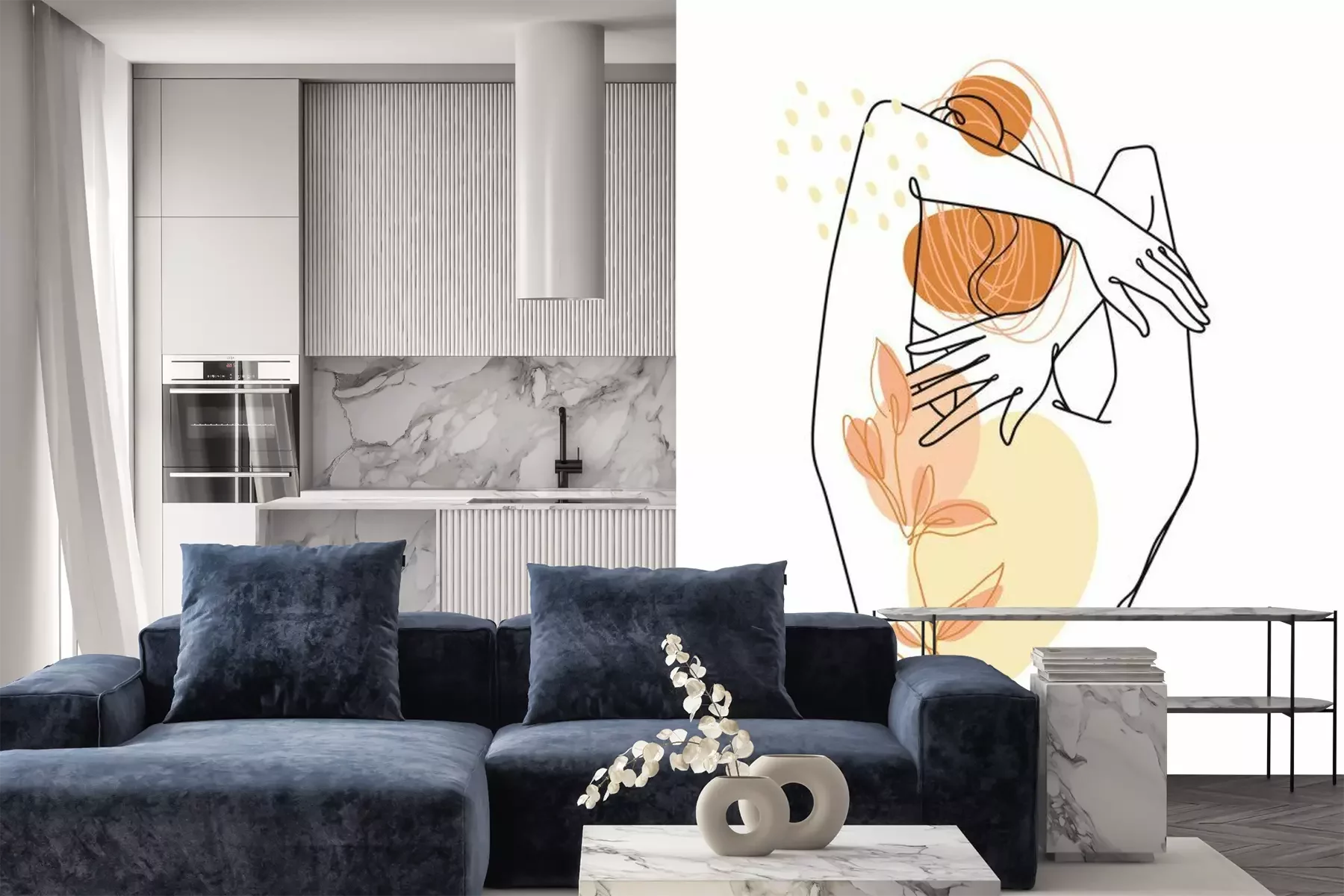 Het materiaal Premium is een glad vinyl op vlies, dat bestand is tegen uitrekken en vervorming. Het is dampdoorlatend – de muren kunnen vrij ademen – waardoor het geschikt is voor gebruik in de keuken en badkamer. Bij vervuiling kan het materiaal worden afgenomen met een vochtige doek. De maximale breedte van één baan bedraagt 95 of 105 cm, afhankelijk van de beschikbaarheid. Montage vindt plaats met de rand-aan-rand methode, wat een esthetisch resultaat zonder zichtbare naden oplevert. Omdat de lijm rechtstreeks op de muur wordt aangebracht, verloopt de installatie van het fotobehang snel en eenvoudig.