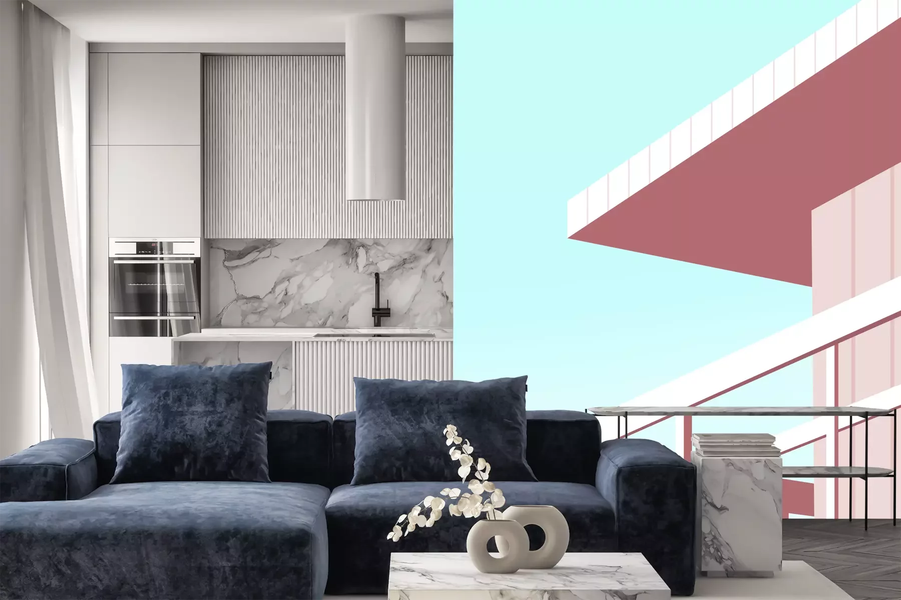 Het materiaal Premium+ is een gestructureerd vinyl op vlies met een gewicht van 255 g/m², dat kleine oneffenheden in de muur effectief camoufleert. De subtiele structuur van fijn zand geeft het oppervlak een exclusieve uitstraling, terwijl de halfmatte afwerking de diepte van de kleuren benadrukt. Het materiaal is dampdoorlatend, waardoor het ook in de keuken en badkamer kan worden gebruikt. De maximale breedte van één baan bedraagt 100 cm – bij grotere afmetingen wordt het fotobehang in meerdere gelijke banen verdeeld. De lijm wordt direct op de muur aangebracht en het behang wordt rand-aan-rand geplakt, wat zorgt voor een esthetisch resultaat zonder zichtbare naden. Het oppervlak kan gemakkelijk worden schoongemaakt door het voorzichtig af te nemen met een vochtige doek.