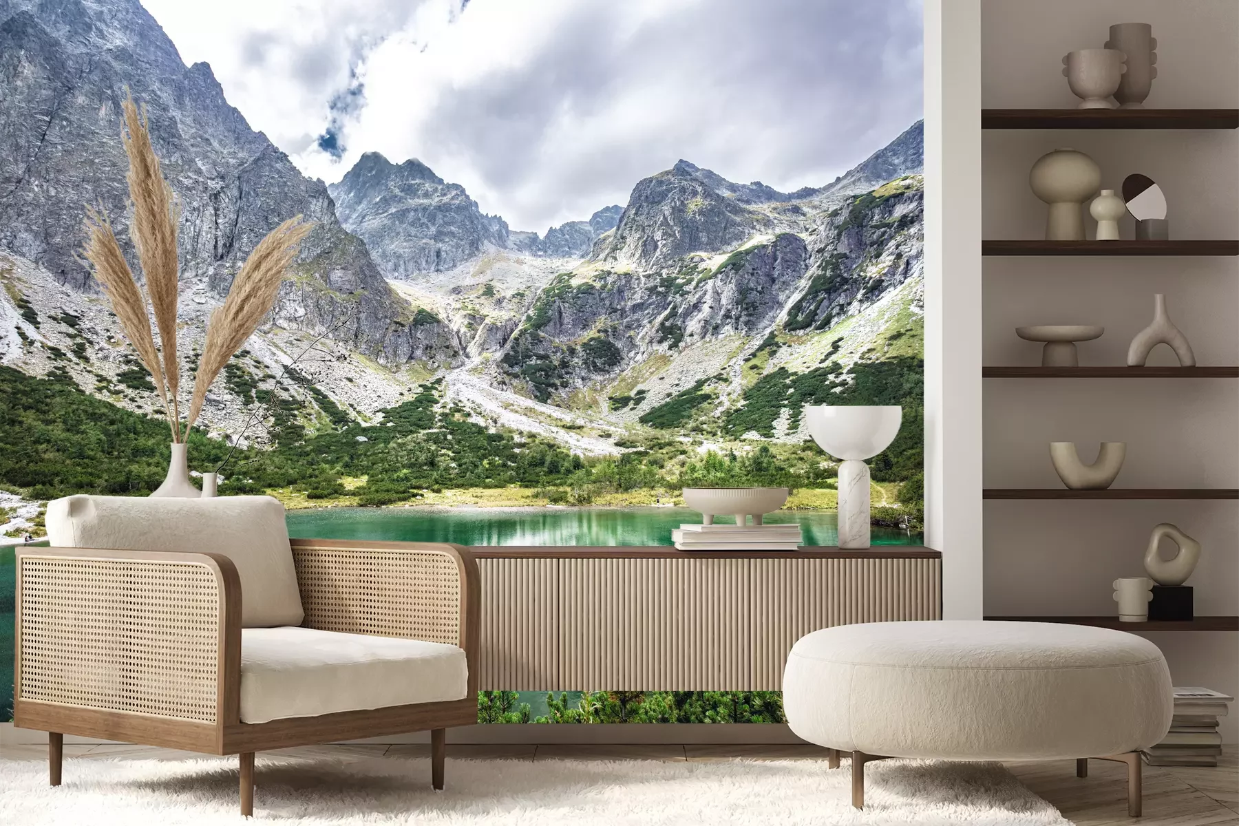 Het materiaal Premium+ is een gestructureerd vinyl op vlies met een gewicht van 255 g/m², dat kleine oneffenheden in de muur effectief camoufleert. De subtiele structuur van fijn zand geeft het oppervlak een exclusieve uitstraling, terwijl de halfmatte afwerking de diepte van de kleuren benadrukt. Het materiaal is dampdoorlatend, waardoor het ook in de keuken en badkamer kan worden gebruikt. De maximale breedte van één baan bedraagt 100 cm – bij grotere afmetingen wordt het fotobehang in meerdere gelijke banen verdeeld. De lijm wordt direct op de muur aangebracht en het behang wordt rand-aan-rand geplakt, wat zorgt voor een esthetisch resultaat zonder zichtbare naden. Het oppervlak kan gemakkelijk worden schoongemaakt door het voorzichtig af te nemen met een vochtige doek.