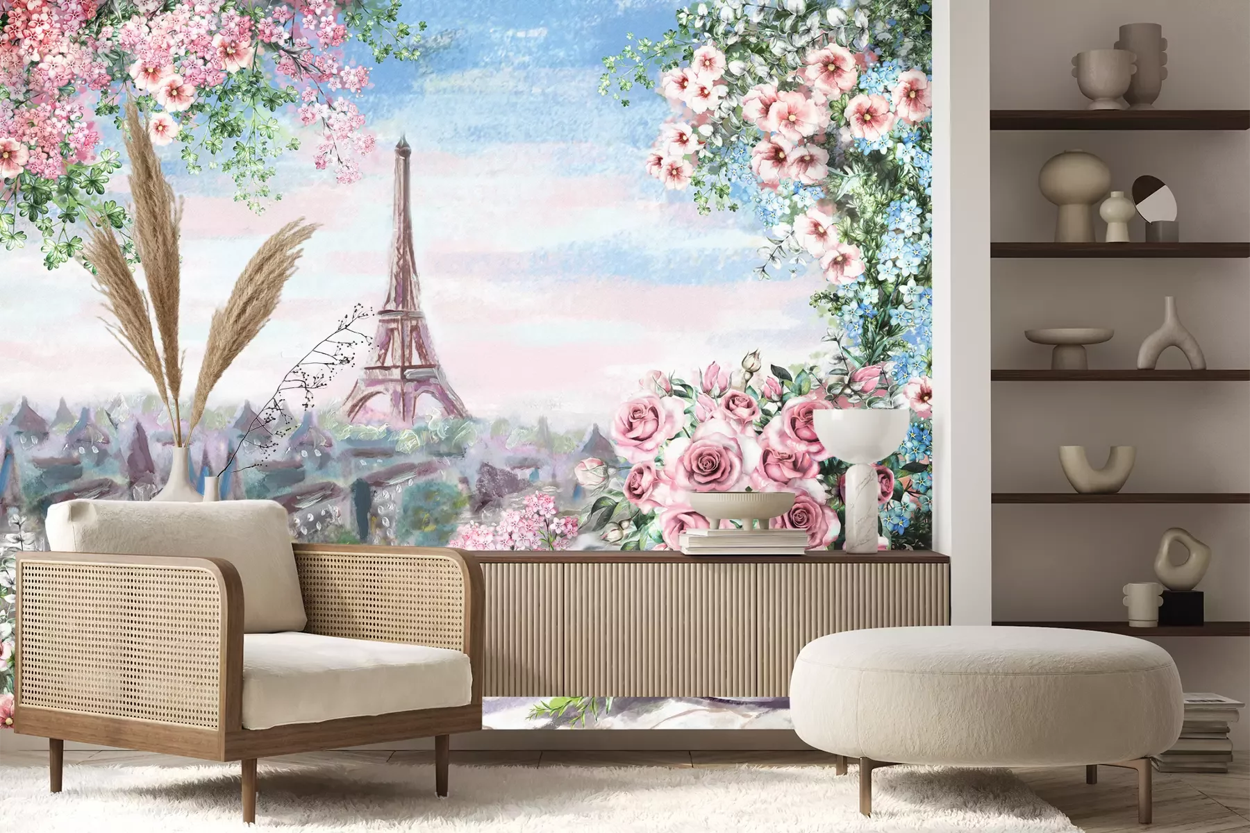 Het materiaal Premium+ is een gestructureerd vinyl op vlies met een gewicht van 255 g/m², dat kleine oneffenheden in de muur effectief camoufleert. De subtiele structuur van fijn zand geeft het oppervlak een exclusieve uitstraling, terwijl de halfmatte afwerking de diepte van de kleuren benadrukt. Het materiaal is dampdoorlatend, waardoor het ook in de keuken en badkamer kan worden gebruikt. De maximale breedte van één baan bedraagt 100 cm – bij grotere afmetingen wordt het fotobehang in meerdere gelijke banen verdeeld. De lijm wordt direct op de muur aangebracht en het behang wordt rand-aan-rand geplakt, wat zorgt voor een esthetisch resultaat zonder zichtbare naden. Het oppervlak kan gemakkelijk worden schoongemaakt door het voorzichtig af te nemen met een vochtige doek.