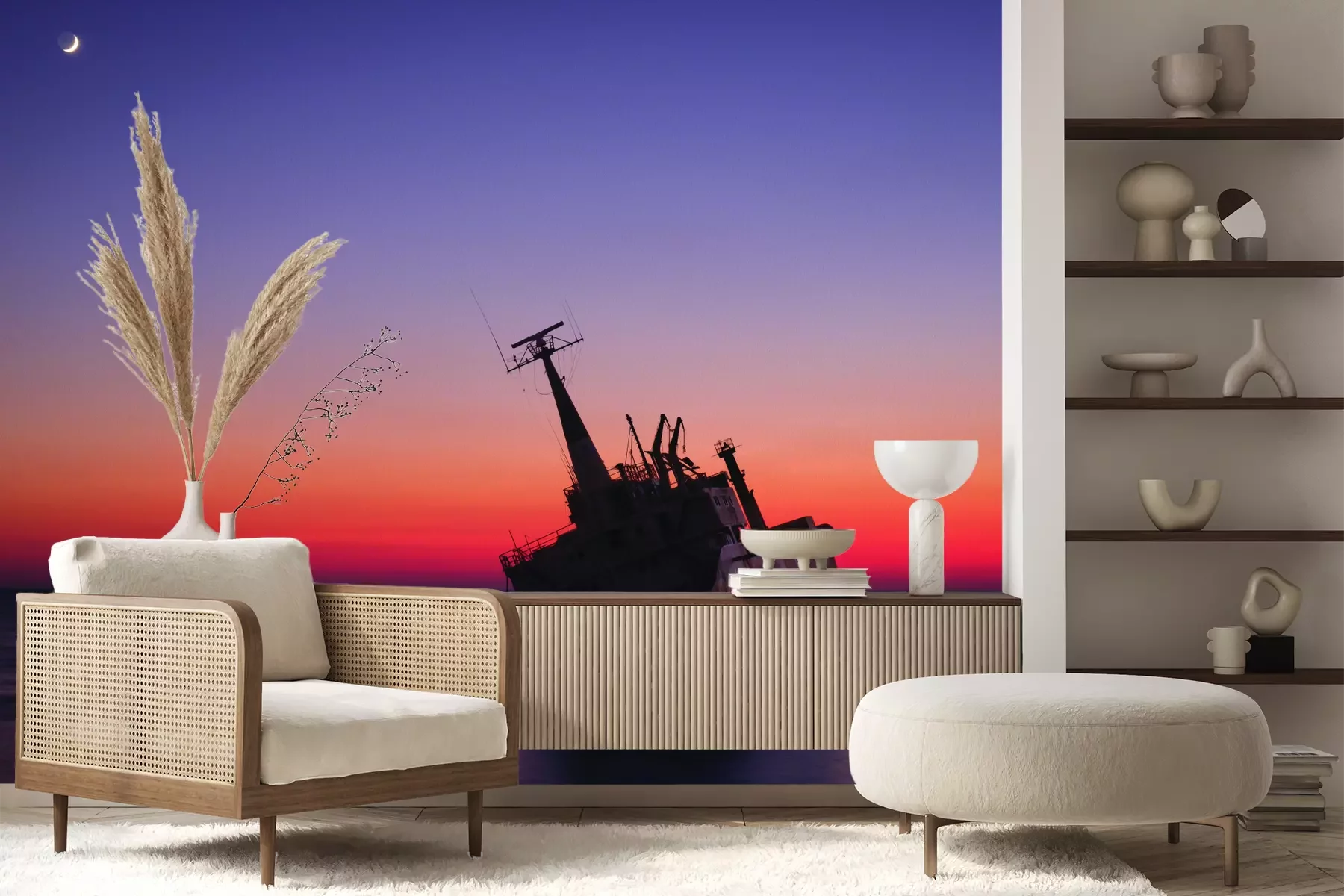 Het materiaal Premium+ is een gestructureerd vinyl op vlies met een gewicht van 255 g/m², dat kleine oneffenheden in de muur effectief camoufleert. De subtiele structuur van fijn zand geeft het oppervlak een exclusieve uitstraling, terwijl de halfmatte afwerking de diepte van de kleuren benadrukt. Het materiaal is dampdoorlatend, waardoor het ook in de keuken en badkamer kan worden gebruikt. De maximale breedte van één baan bedraagt 100 cm – bij grotere afmetingen wordt het fotobehang in meerdere gelijke banen verdeeld. De lijm wordt direct op de muur aangebracht en het behang wordt rand-aan-rand geplakt, wat zorgt voor een esthetisch resultaat zonder zichtbare naden. Het oppervlak kan gemakkelijk worden schoongemaakt door het voorzichtig af te nemen met een vochtige doek.