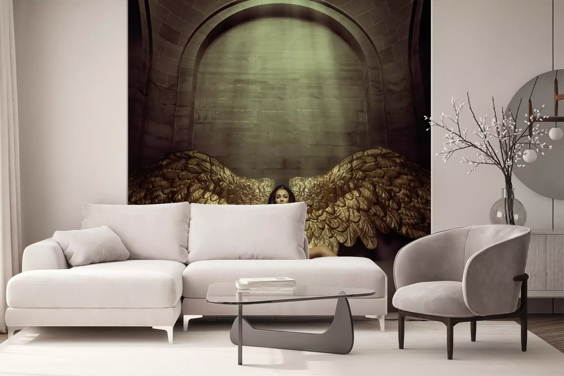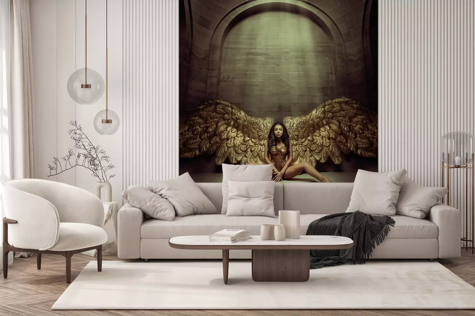 Het materiaal Premium+ is een gestructureerd vinyl op vlies met een gewicht van 255 g/m², dat kleine oneffenheden in de muur effectief camoufleert. De subtiele structuur van fijn zand geeft het oppervlak een exclusieve uitstraling, terwijl de halfmatte afwerking de diepte van de kleuren benadrukt. Het materiaal is dampdoorlatend, waardoor het ook in de keuken en badkamer kan worden gebruikt. De maximale breedte van één baan bedraagt 100 cm – bij grotere afmetingen wordt het fotobehang in meerdere gelijke banen verdeeld. De lijm wordt direct op de muur aangebracht en het behang wordt rand-aan-rand geplakt, wat zorgt voor een esthetisch resultaat zonder zichtbare naden. Het oppervlak kan gemakkelijk worden schoongemaakt door het voorzichtig af te nemen met een vochtige doek.