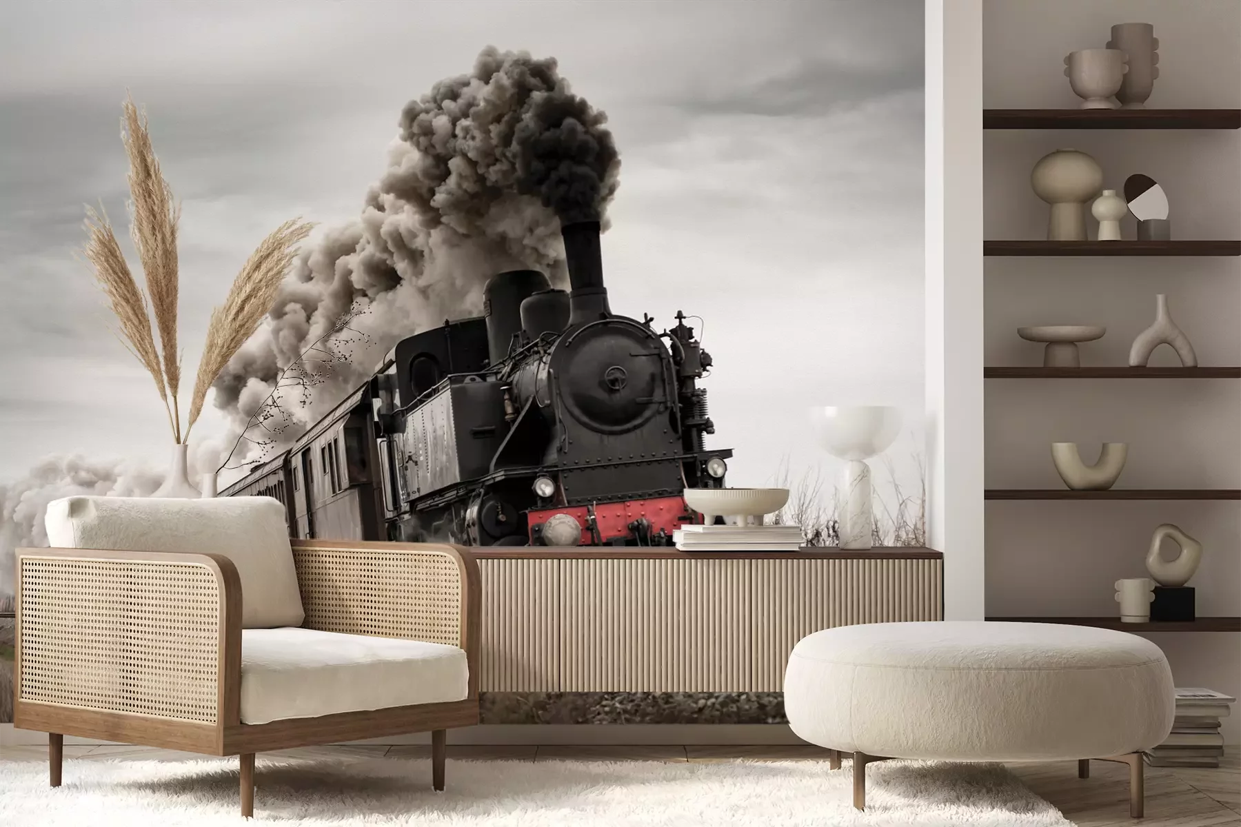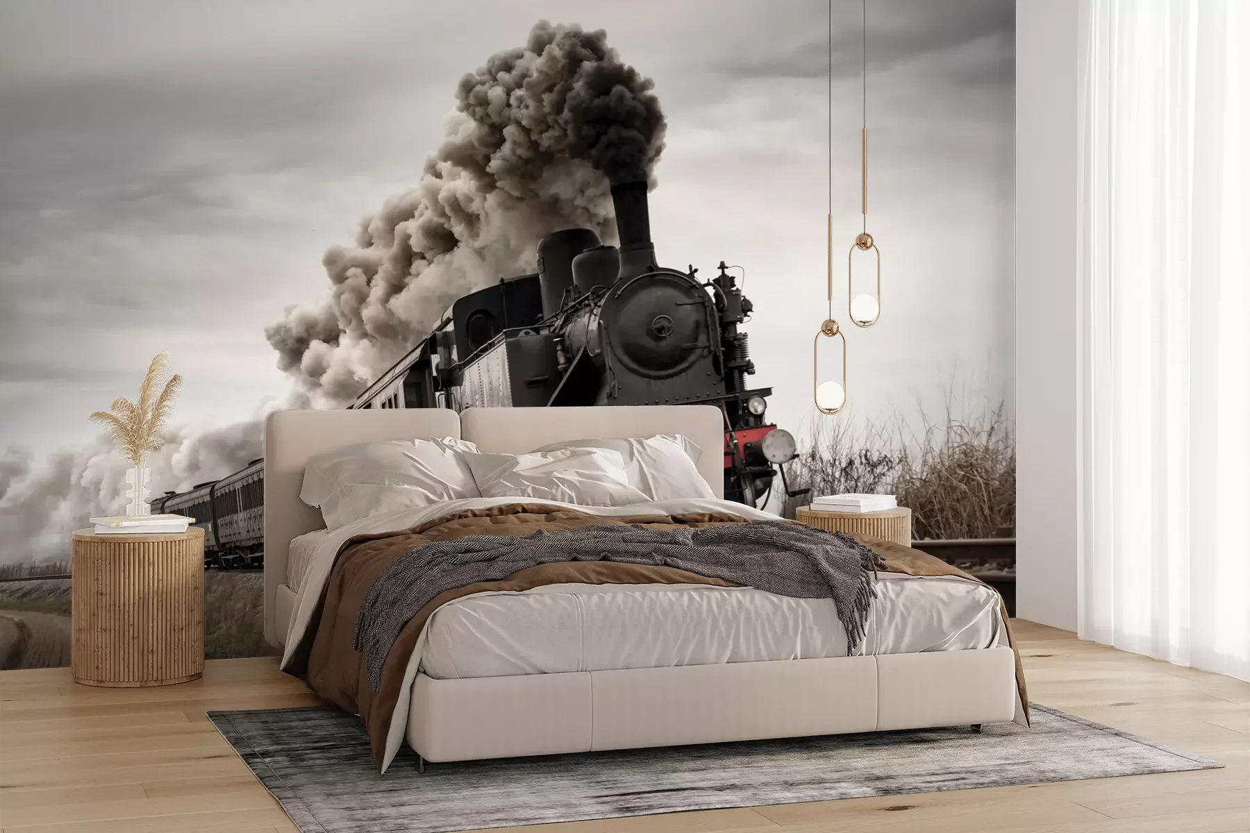 Het materiaal Premium+ is een gestructureerd vinyl op vlies met een gewicht van 255 g/m², dat kleine oneffenheden in de muur effectief camoufleert. De subtiele structuur van fijn zand geeft het oppervlak een exclusieve uitstraling, terwijl de halfmatte afwerking de diepte van de kleuren benadrukt. Het materiaal is dampdoorlatend, waardoor het ook in de keuken en badkamer kan worden gebruikt. De maximale breedte van één baan bedraagt 100 cm – bij grotere afmetingen wordt het fotobehang in meerdere gelijke banen verdeeld. De lijm wordt direct op de muur aangebracht en het behang wordt rand-aan-rand geplakt, wat zorgt voor een esthetisch resultaat zonder zichtbare naden. Het oppervlak kan gemakkelijk worden schoongemaakt door het voorzichtig af te nemen met een vochtige doek.