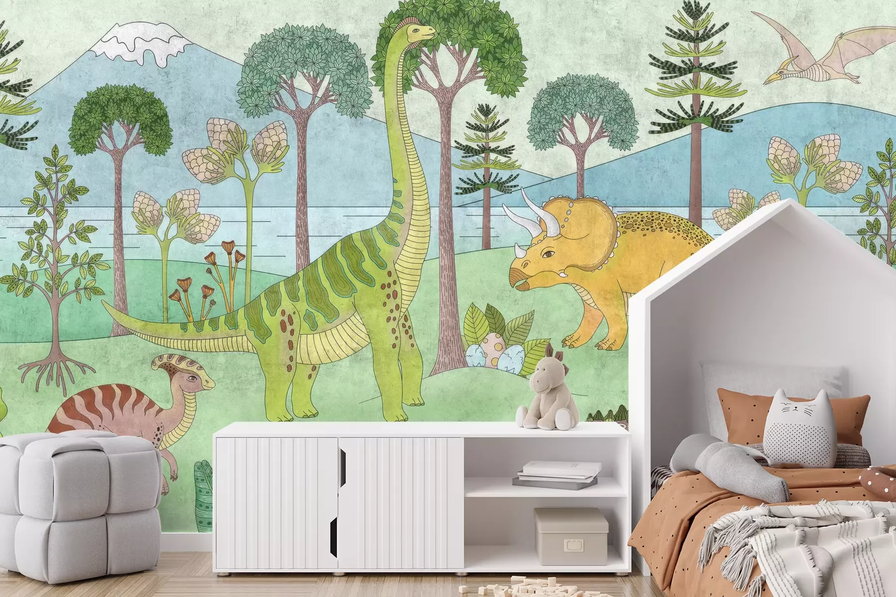 Het materiaal Premium+ is een gestructureerd vinyl op vlies met een gewicht van 255 g/m², dat kleine oneffenheden in de muur effectief camoufleert. De subtiele structuur van fijn zand geeft het oppervlak een exclusieve uitstraling, terwijl de halfmatte afwerking de diepte van de kleuren benadrukt. Het materiaal is dampdoorlatend, waardoor het ook in de keuken en badkamer kan worden gebruikt. De maximale breedte van één baan bedraagt 100 cm – bij grotere afmetingen wordt het fotobehang in meerdere gelijke banen verdeeld. De lijm wordt direct op de muur aangebracht en het behang wordt rand-aan-rand geplakt, wat zorgt voor een esthetisch resultaat zonder zichtbare naden. Het oppervlak kan gemakkelijk worden schoongemaakt door het voorzichtig af te nemen met een vochtige doek.