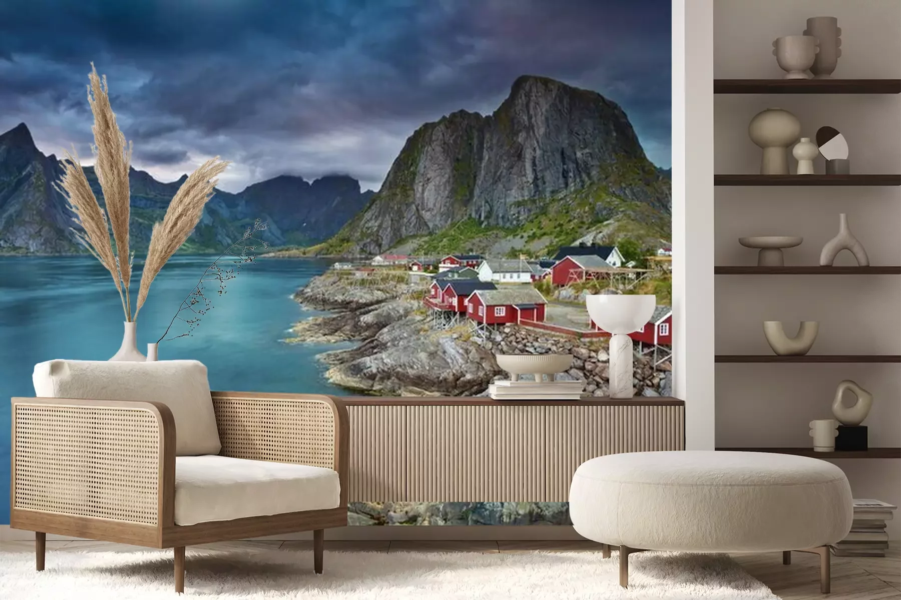 Het materiaal Premium+ is een gestructureerd vinyl op vlies met een gewicht van 255 g/m², dat kleine oneffenheden in de muur effectief camoufleert. De subtiele structuur van fijn zand geeft het oppervlak een exclusieve uitstraling, terwijl de halfmatte afwerking de diepte van de kleuren benadrukt. Het materiaal is dampdoorlatend, waardoor het ook in de keuken en badkamer kan worden gebruikt. De maximale breedte van één baan bedraagt 100 cm – bij grotere afmetingen wordt het fotobehang in meerdere gelijke banen verdeeld. De lijm wordt direct op de muur aangebracht en het behang wordt rand-aan-rand geplakt, wat zorgt voor een esthetisch resultaat zonder zichtbare naden. Het oppervlak kan gemakkelijk worden schoongemaakt door het voorzichtig af te nemen met een vochtige doek.