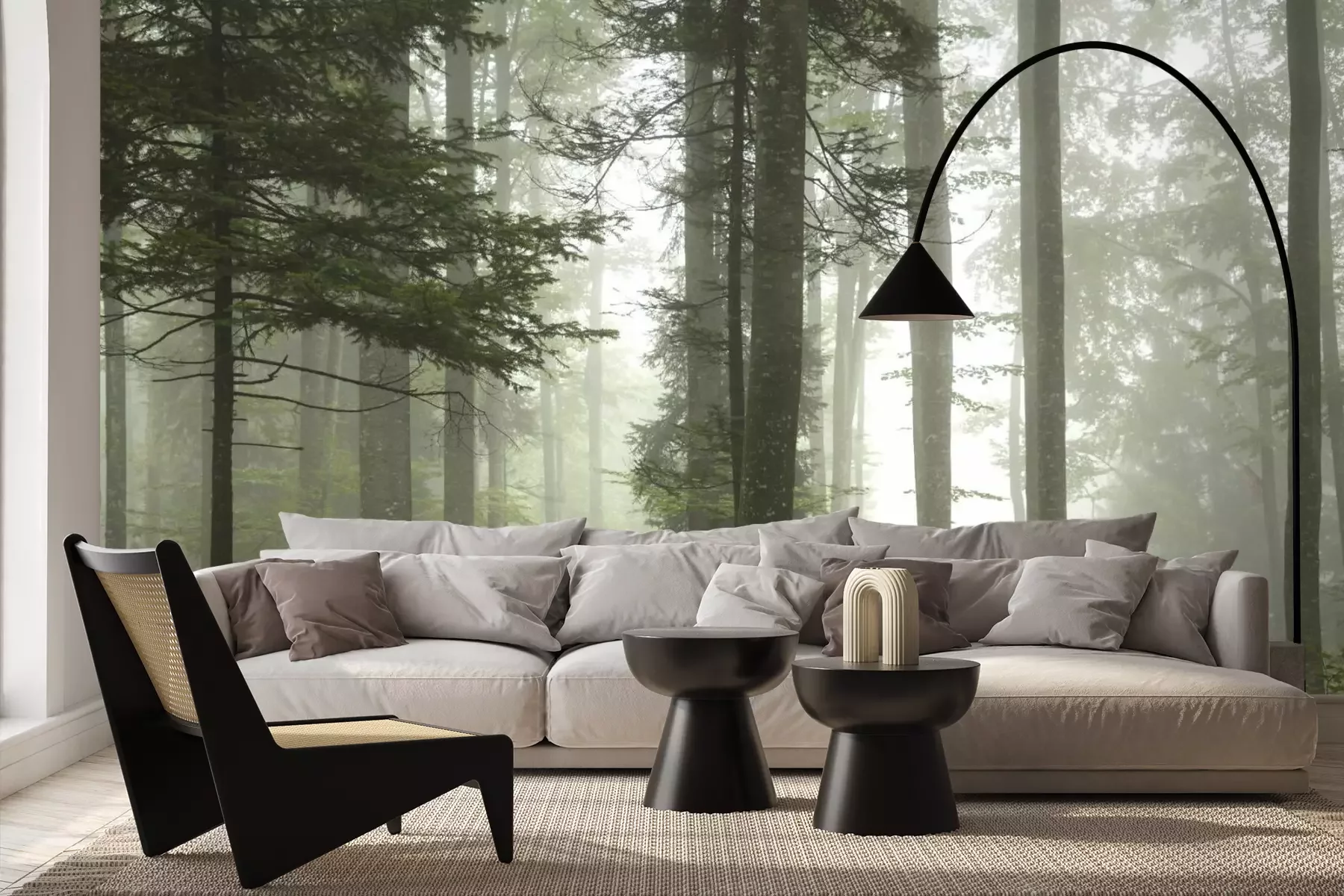 Mistig boslandschap in de ochtendFotobehang