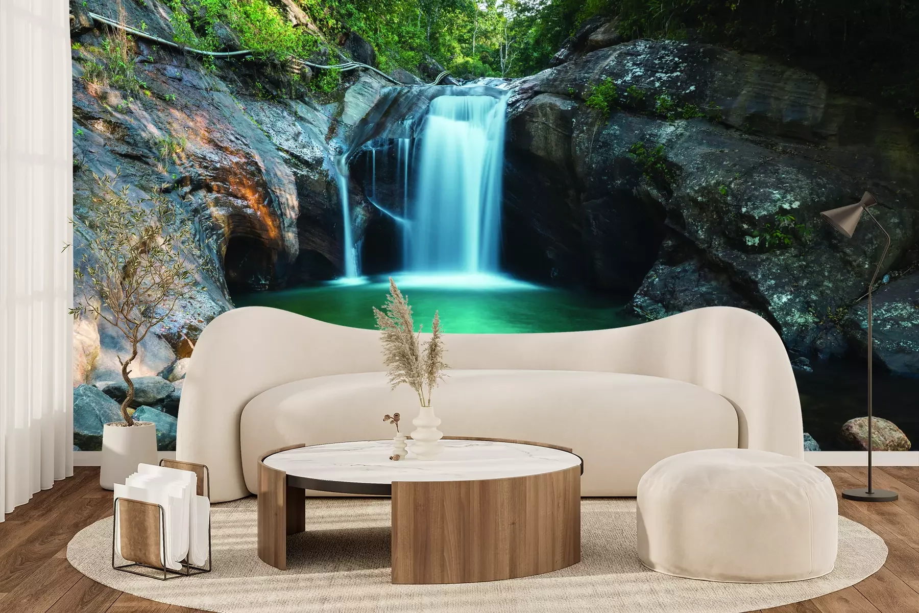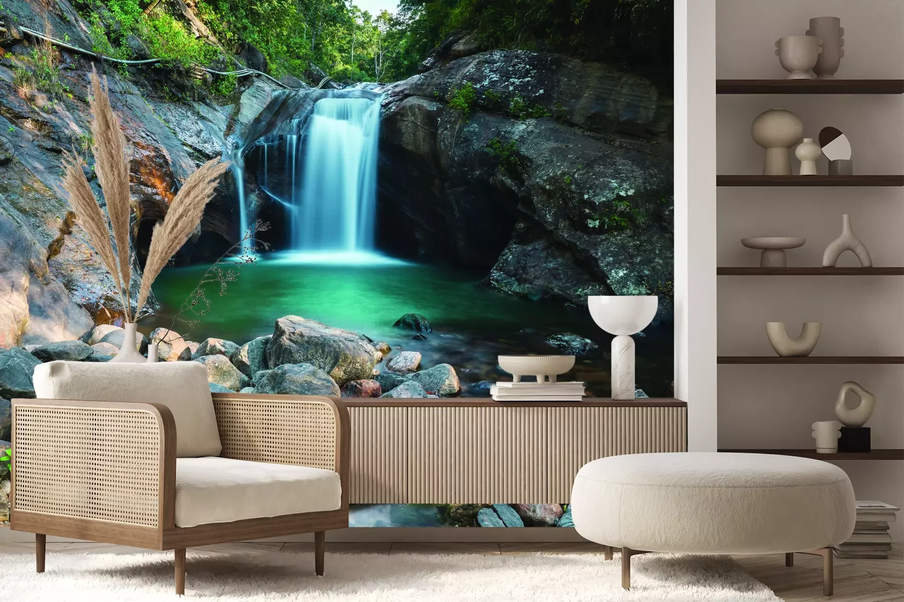 Het materiaal Premium+ is een gestructureerd vinyl op vlies met een gewicht van 255 g/m², dat kleine oneffenheden in de muur effectief camoufleert. De subtiele structuur van fijn zand geeft het oppervlak een exclusieve uitstraling, terwijl de halfmatte afwerking de diepte van de kleuren benadrukt. Het materiaal is dampdoorlatend, waardoor het ook in de keuken en badkamer kan worden gebruikt. De maximale breedte van één baan bedraagt 100 cm – bij grotere afmetingen wordt het fotobehang in meerdere gelijke banen verdeeld. De lijm wordt direct op de muur aangebracht en het behang wordt rand-aan-rand geplakt, wat zorgt voor een esthetisch resultaat zonder zichtbare naden. Het oppervlak kan gemakkelijk worden schoongemaakt door het voorzichtig af te nemen met een vochtige doek.