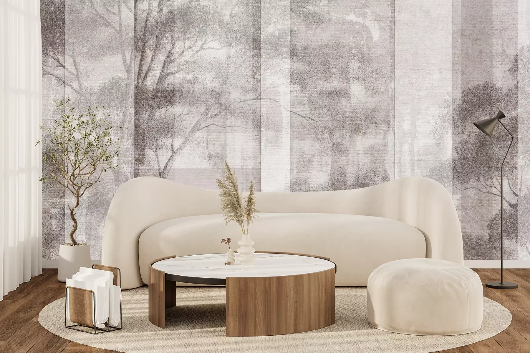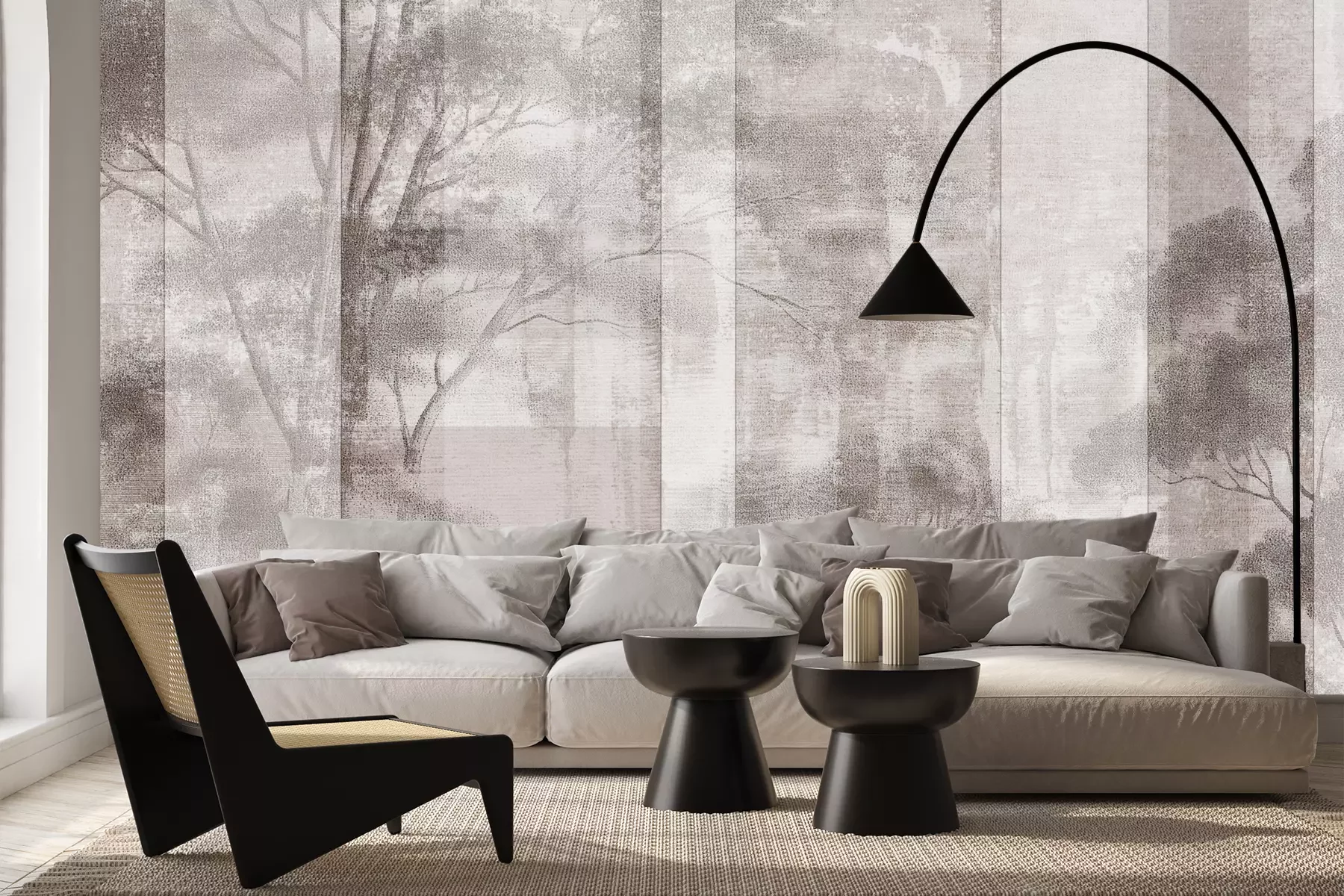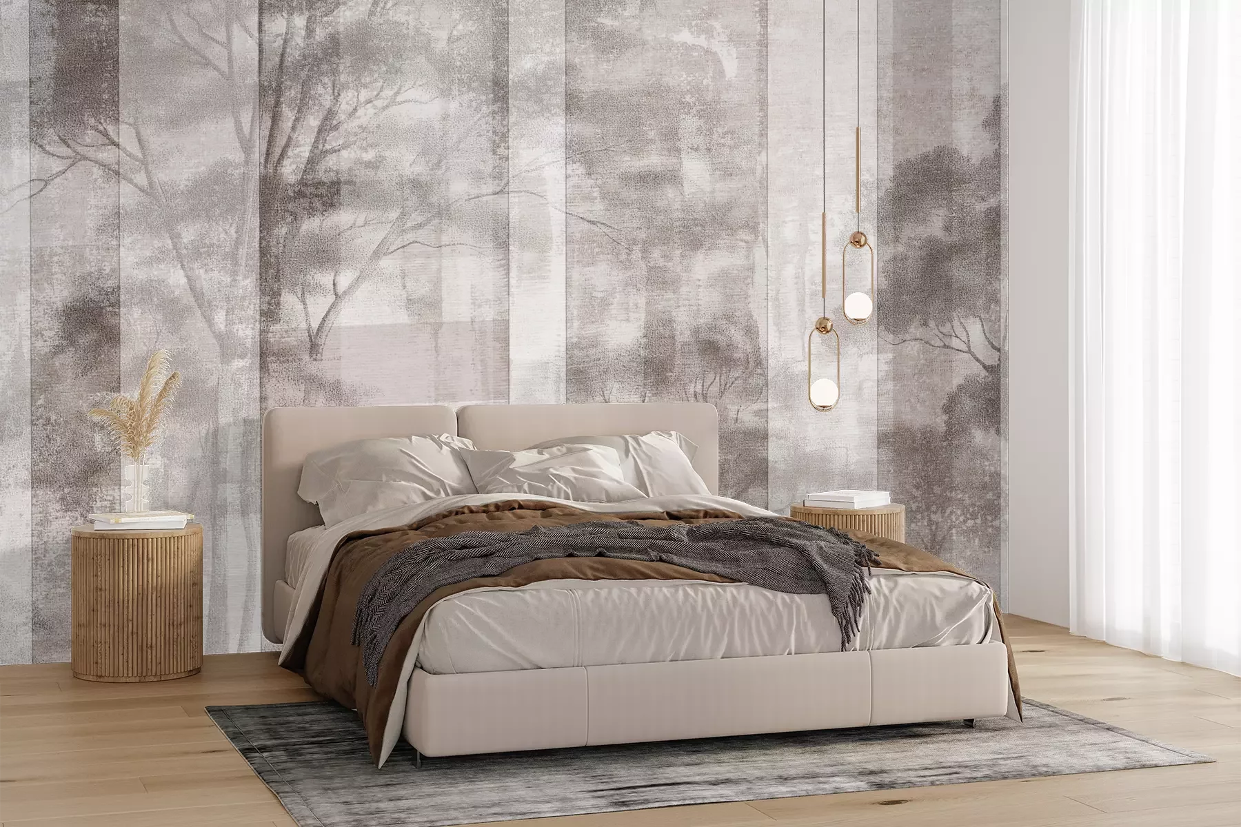Het materiaal Premium+ is een gestructureerd vinyl op vlies met een gewicht van 255 g/m², dat kleine oneffenheden in de muur effectief camoufleert. De subtiele structuur van fijn zand geeft het oppervlak een exclusieve uitstraling, terwijl de halfmatte afwerking de diepte van de kleuren benadrukt. Het materiaal is dampdoorlatend, waardoor het ook in de keuken en badkamer kan worden gebruikt. De maximale breedte van één baan bedraagt 100 cm – bij grotere afmetingen wordt het fotobehang in meerdere gelijke banen verdeeld. De lijm wordt direct op de muur aangebracht en het behang wordt rand-aan-rand geplakt, wat zorgt voor een esthetisch resultaat zonder zichtbare naden. Het oppervlak kan gemakkelijk worden schoongemaakt door het voorzichtig af te nemen met een vochtige doek.