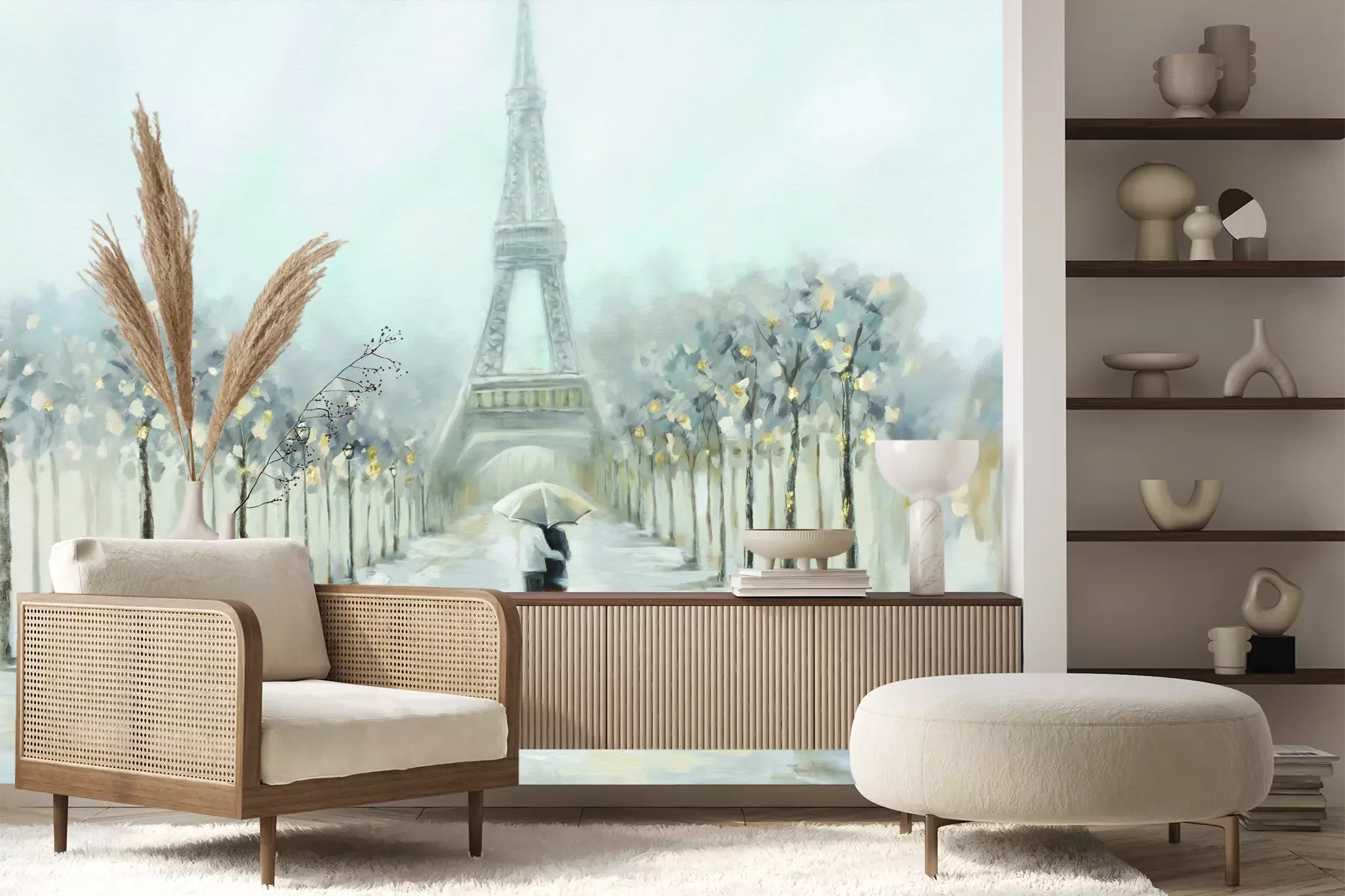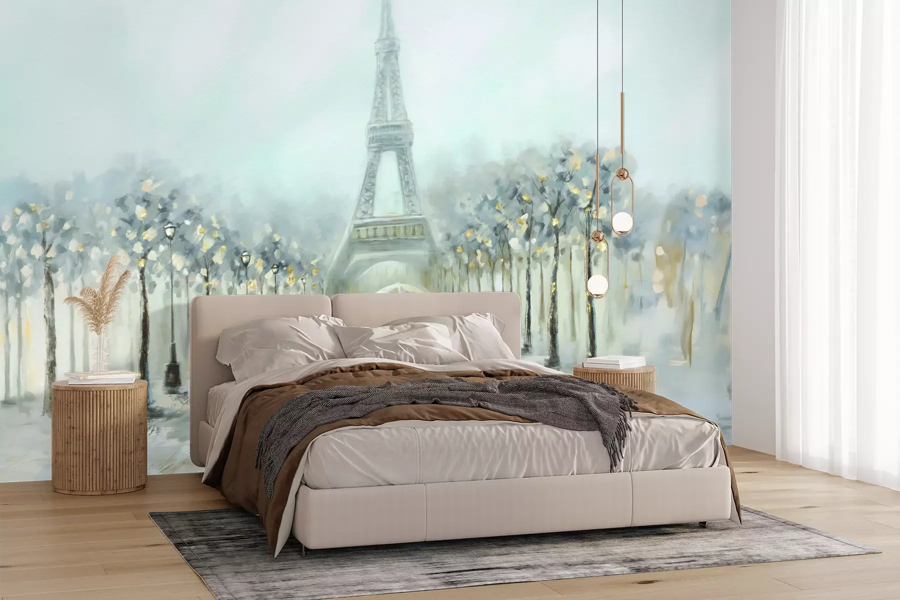 Het materiaal Premium+ is een gestructureerd vinyl op vlies met een gewicht van 255 g/m², dat kleine oneffenheden in de muur effectief camoufleert. De subtiele structuur van fijn zand geeft het oppervlak een exclusieve uitstraling, terwijl de halfmatte afwerking de diepte van de kleuren benadrukt. Het materiaal is dampdoorlatend, waardoor het ook in de keuken en badkamer kan worden gebruikt. De maximale breedte van één baan bedraagt 100 cm – bij grotere afmetingen wordt het fotobehang in meerdere gelijke banen verdeeld. De lijm wordt direct op de muur aangebracht en het behang wordt rand-aan-rand geplakt, wat zorgt voor een esthetisch resultaat zonder zichtbare naden. Het oppervlak kan gemakkelijk worden schoongemaakt door het voorzichtig af te nemen met een vochtige doek.