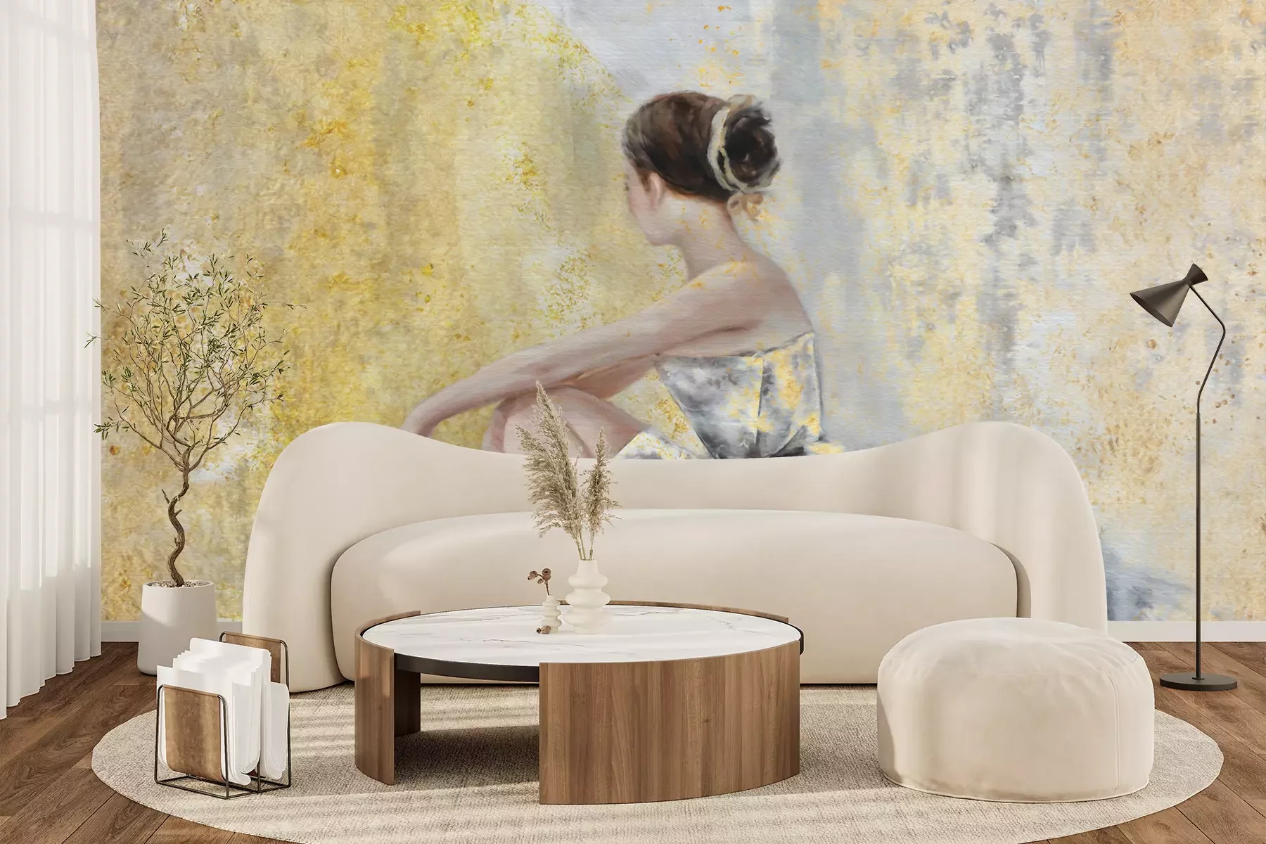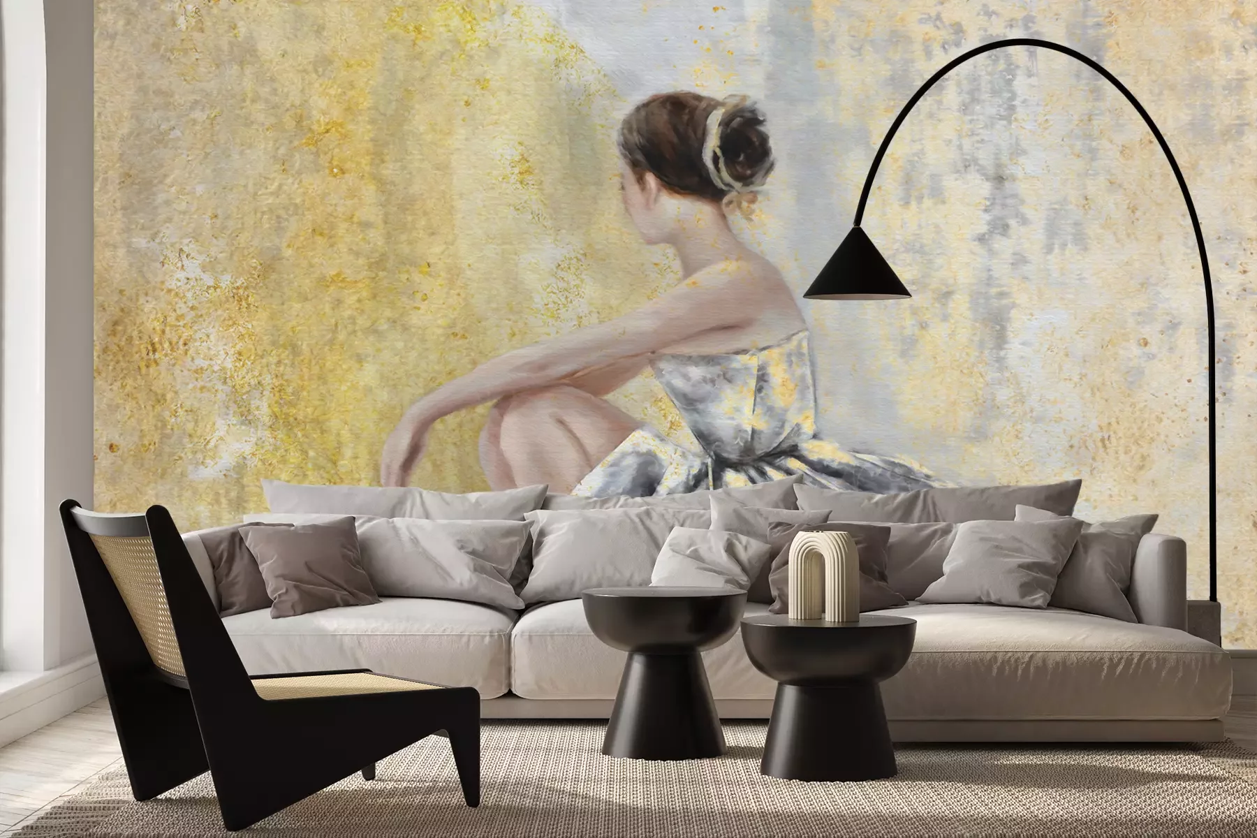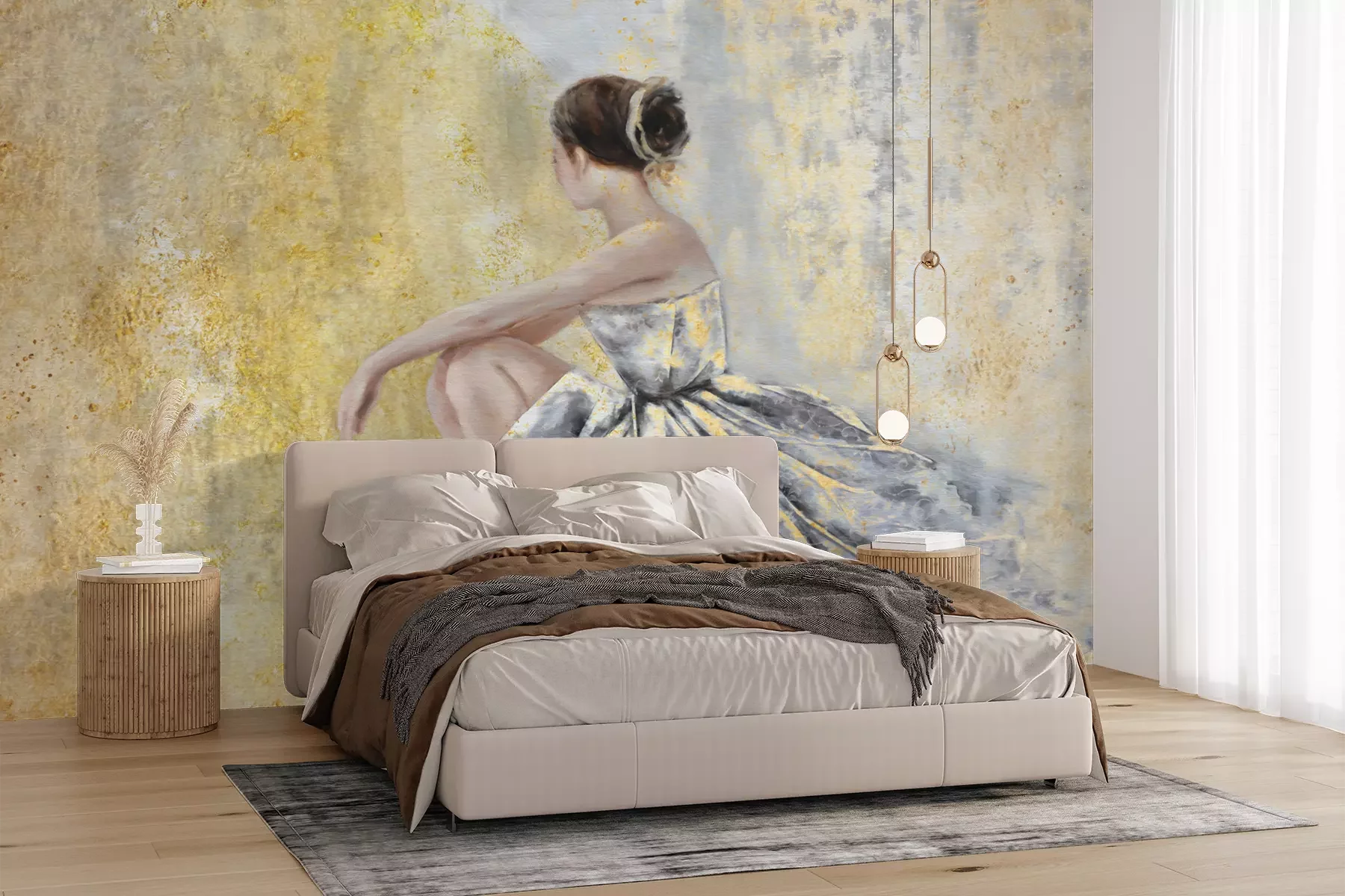 Het materiaal Premium+ is een gestructureerd vinyl op vlies met een gewicht van 255 g/m², dat kleine oneffenheden in de muur effectief camoufleert. De subtiele structuur van fijn zand geeft het oppervlak een exclusieve uitstraling, terwijl de halfmatte afwerking de diepte van de kleuren benadrukt. Het materiaal is dampdoorlatend, waardoor het ook in de keuken en badkamer kan worden gebruikt. De maximale breedte van één baan bedraagt 100 cm – bij grotere afmetingen wordt het fotobehang in meerdere gelijke banen verdeeld. De lijm wordt direct op de muur aangebracht en het behang wordt rand-aan-rand geplakt, wat zorgt voor een esthetisch resultaat zonder zichtbare naden. Het oppervlak kan gemakkelijk worden schoongemaakt door het voorzichtig af te nemen met een vochtige doek.
