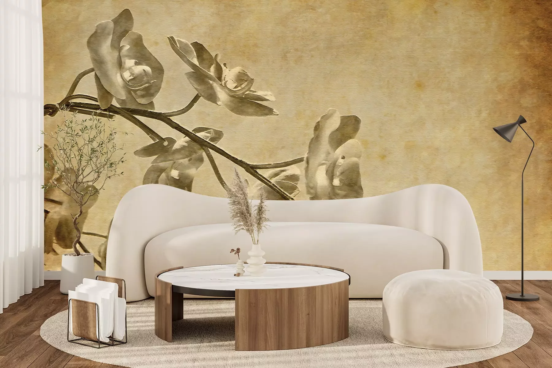 Het materiaal Standard is een hoogwaardig latexmateriaal met een glad, mat oppervlak. Dankzij de HP Latex-printtechnologie zijn de kleuren intens, duurzaam en UV-bestendig, waardoor het patroon jarenlang een onberispelijke uitstraling behoudt. Vervuilde oppervlakken kunnen voorzichtig worden afgeveegd met een droge doek. De maximale breedte van één baan bedraagt 95 cm of 105 cm – afhankelijk van de bestelde fotobehangbreedte. Bij grotere afmetingen wordt het patroon verdeeld over meerdere gelijkmatige banen. Het fotobehang wordt rand-aan-randaangebracht, wat vrijwel onzichtbare naden mogelijk maakt.