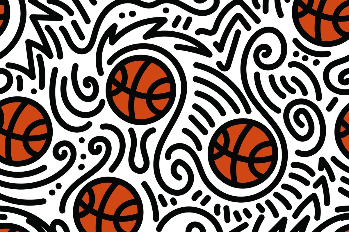 Een tekening met een basketbalmotief