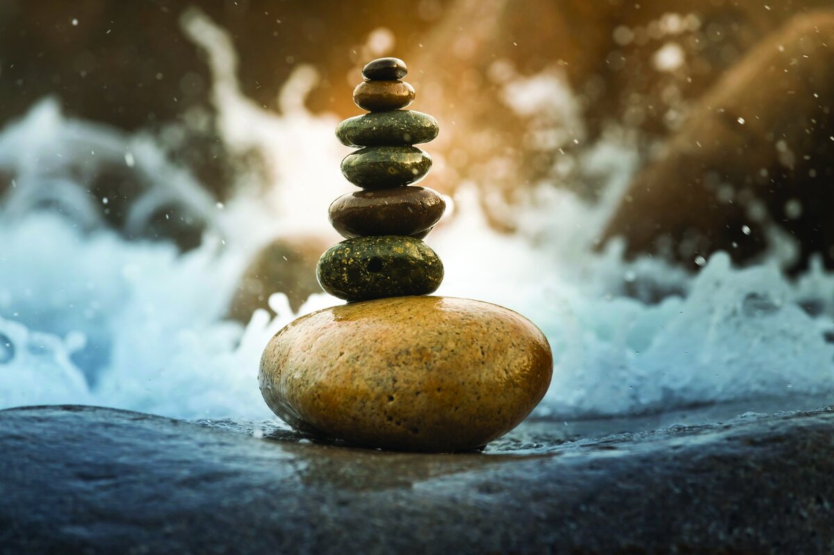 Een toren van natte kiezels
