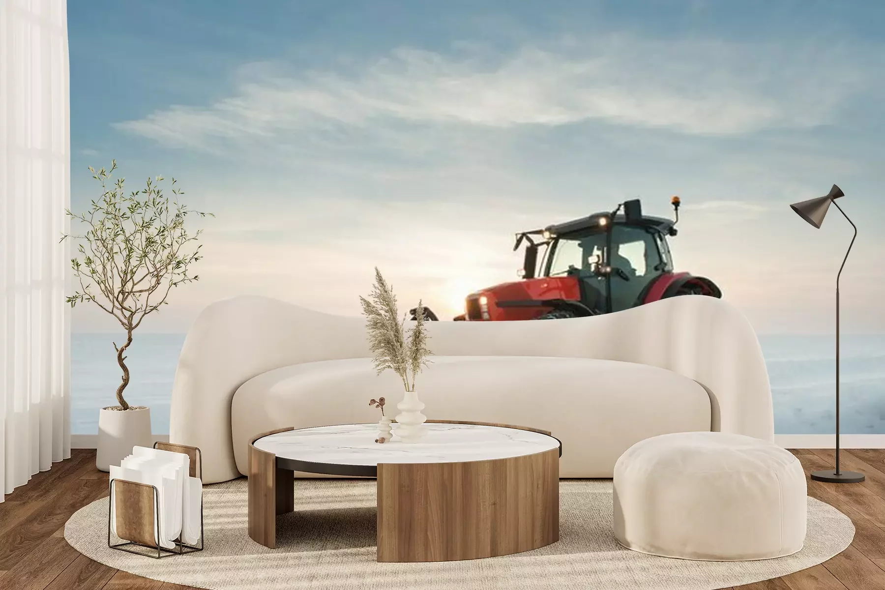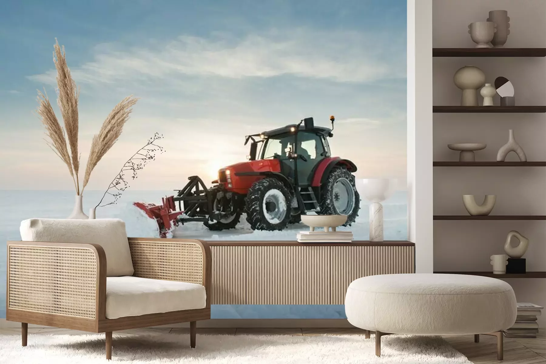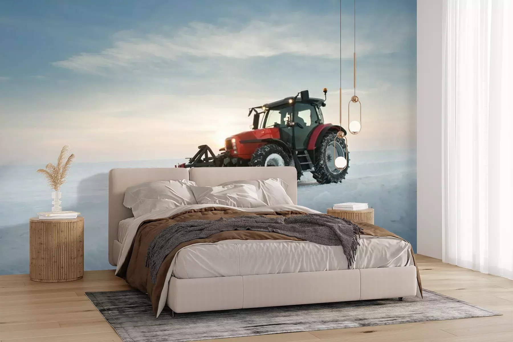 Het materiaal Premium+ is een gestructureerd vinyl op vlies met een gewicht van 255 g/m², dat kleine oneffenheden in de muur effectief camoufleert. De subtiele structuur van fijn zand geeft het oppervlak een exclusieve uitstraling, terwijl de halfmatte afwerking de diepte van de kleuren benadrukt. Het materiaal is dampdoorlatend, waardoor het ook in de keuken en badkamer kan worden gebruikt. De maximale breedte van één baan bedraagt 100 cm – bij grotere afmetingen wordt het fotobehang in meerdere gelijke banen verdeeld. De lijm wordt direct op de muur aangebracht en het behang wordt rand-aan-rand geplakt, wat zorgt voor een esthetisch resultaat zonder zichtbare naden. Het oppervlak kan gemakkelijk worden schoongemaakt door het voorzichtig af te nemen met een vochtige doek.