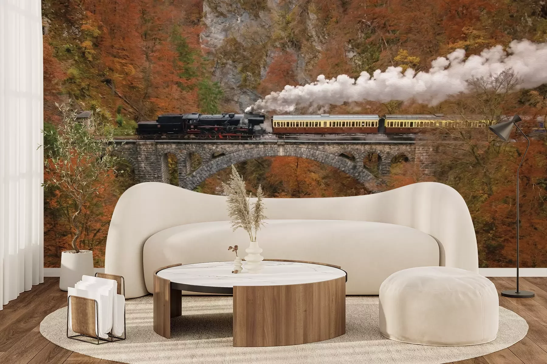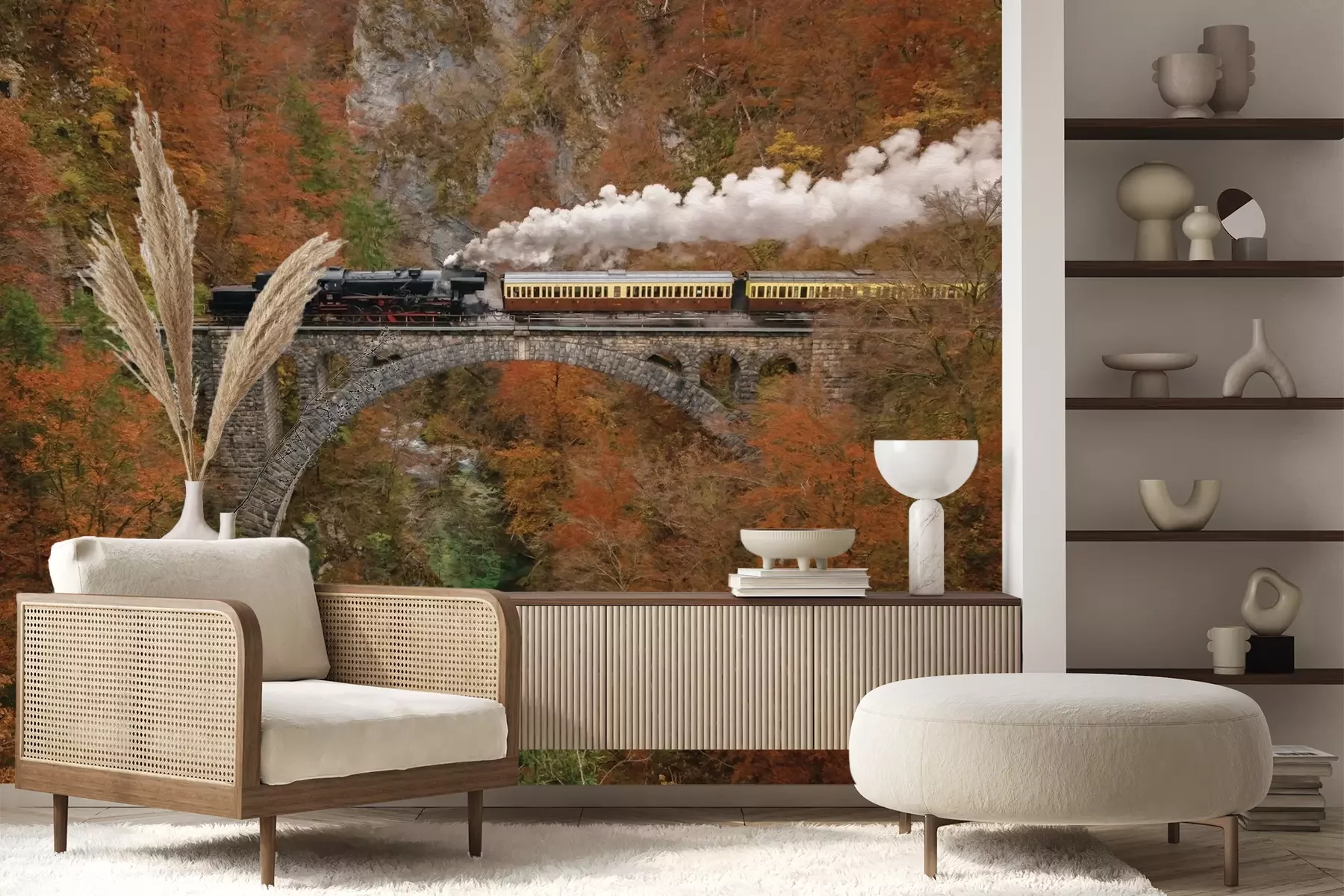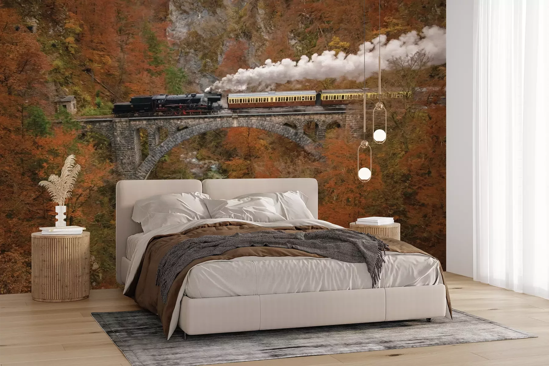 Het materiaal Premium+ is een gestructureerd vinyl op vlies met een gewicht van 255 g/m², dat kleine oneffenheden in de muur effectief camoufleert. De subtiele structuur van fijn zand geeft het oppervlak een exclusieve uitstraling, terwijl de halfmatte afwerking de diepte van de kleuren benadrukt. Het materiaal is dampdoorlatend, waardoor het ook in de keuken en badkamer kan worden gebruikt. De maximale breedte van één baan bedraagt 100 cm – bij grotere afmetingen wordt het fotobehang in meerdere gelijke banen verdeeld. De lijm wordt direct op de muur aangebracht en het behang wordt rand-aan-rand geplakt, wat zorgt voor een esthetisch resultaat zonder zichtbare naden. Het oppervlak kan gemakkelijk worden schoongemaakt door het voorzichtig af te nemen met een vochtige doek.