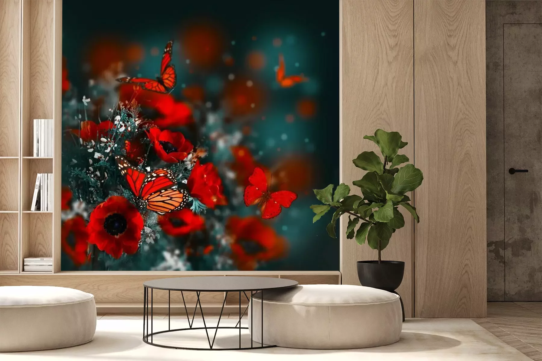 Klaprozen op een turquoise achtergrondProbleemloze bezorging verzorgd door vertrouwde vervoerders