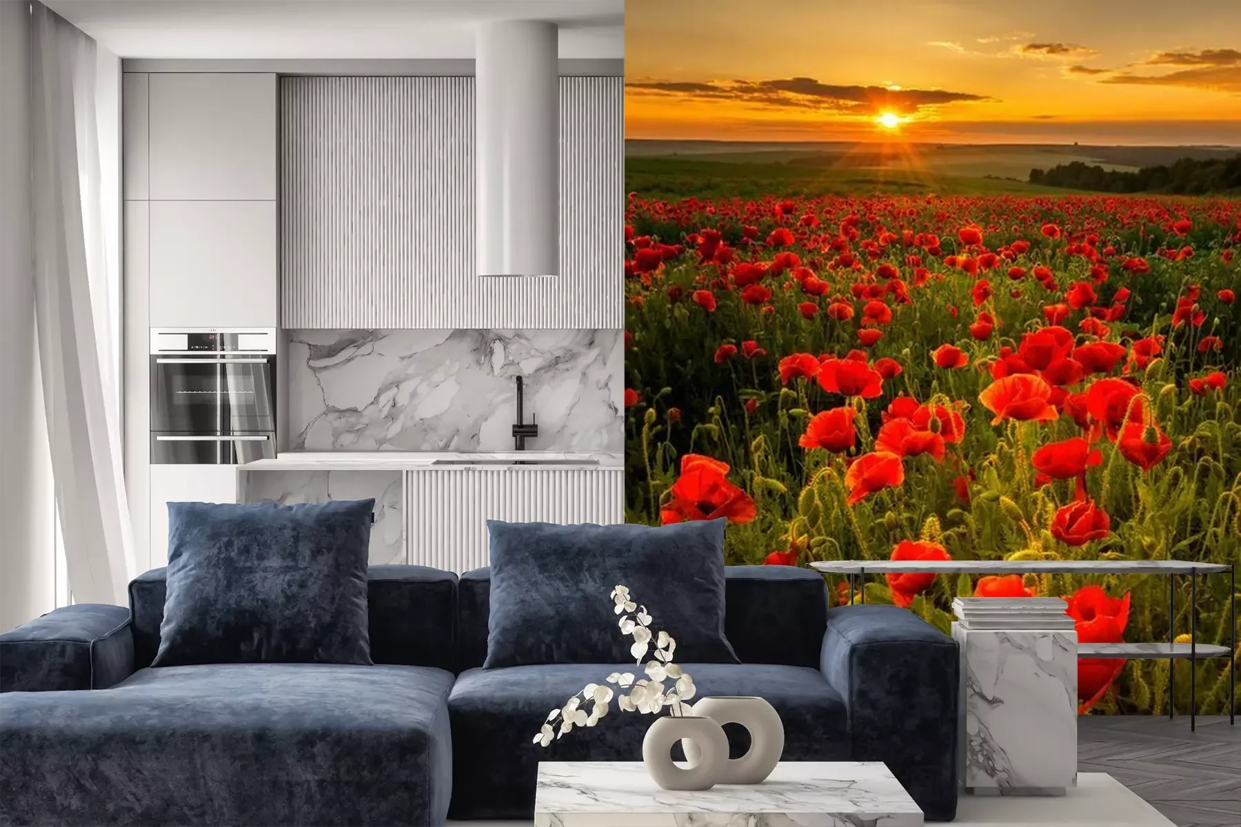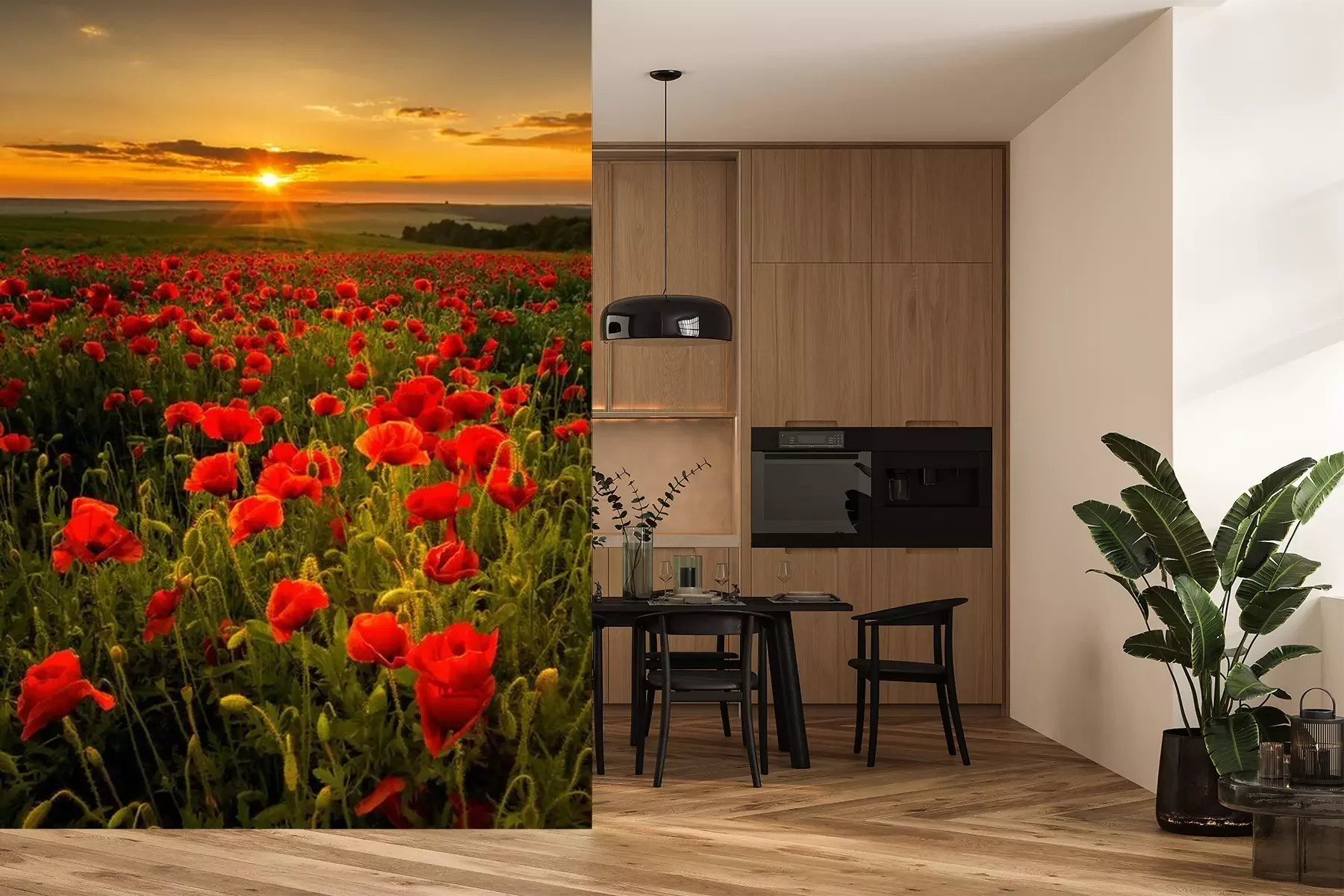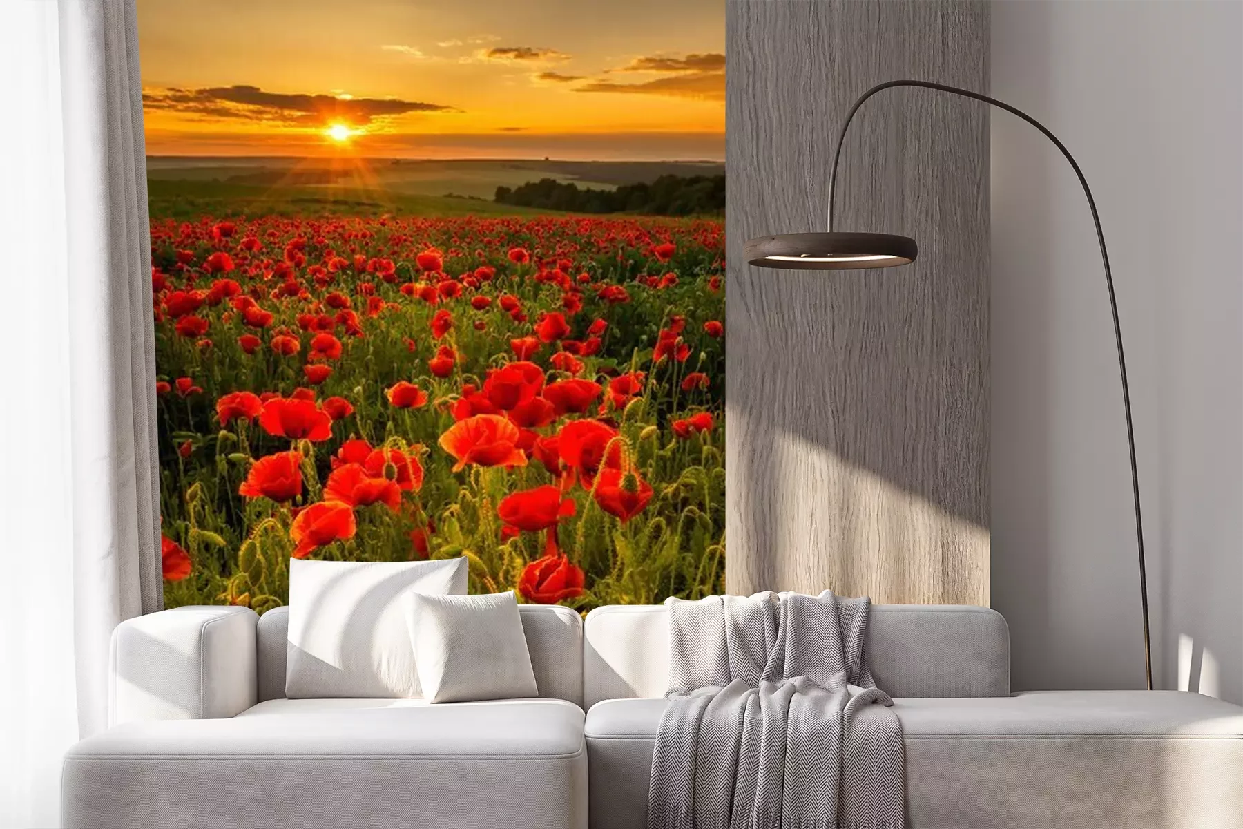 Klaprozenveld bij zonsondergangProbleemloze bezorging verzorgd door vertrouwde vervoerders