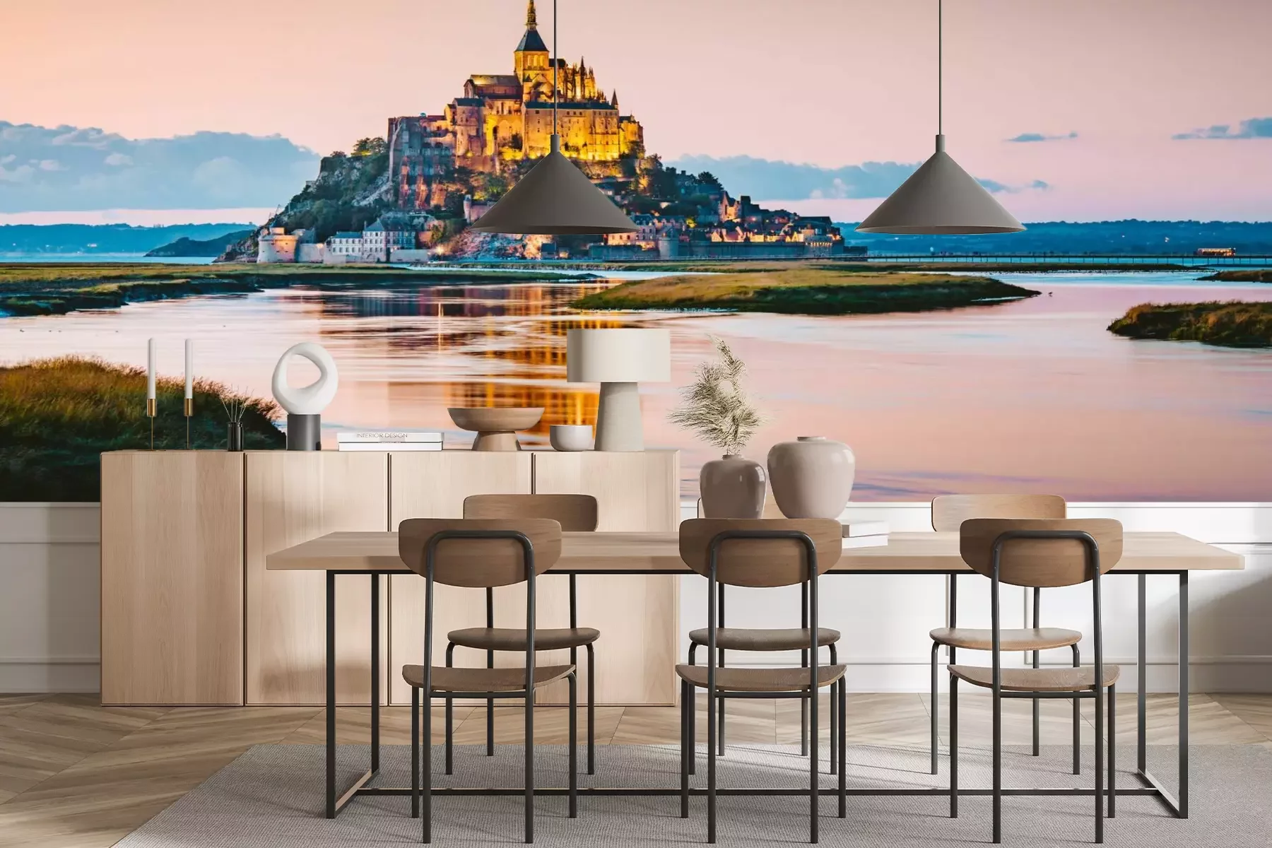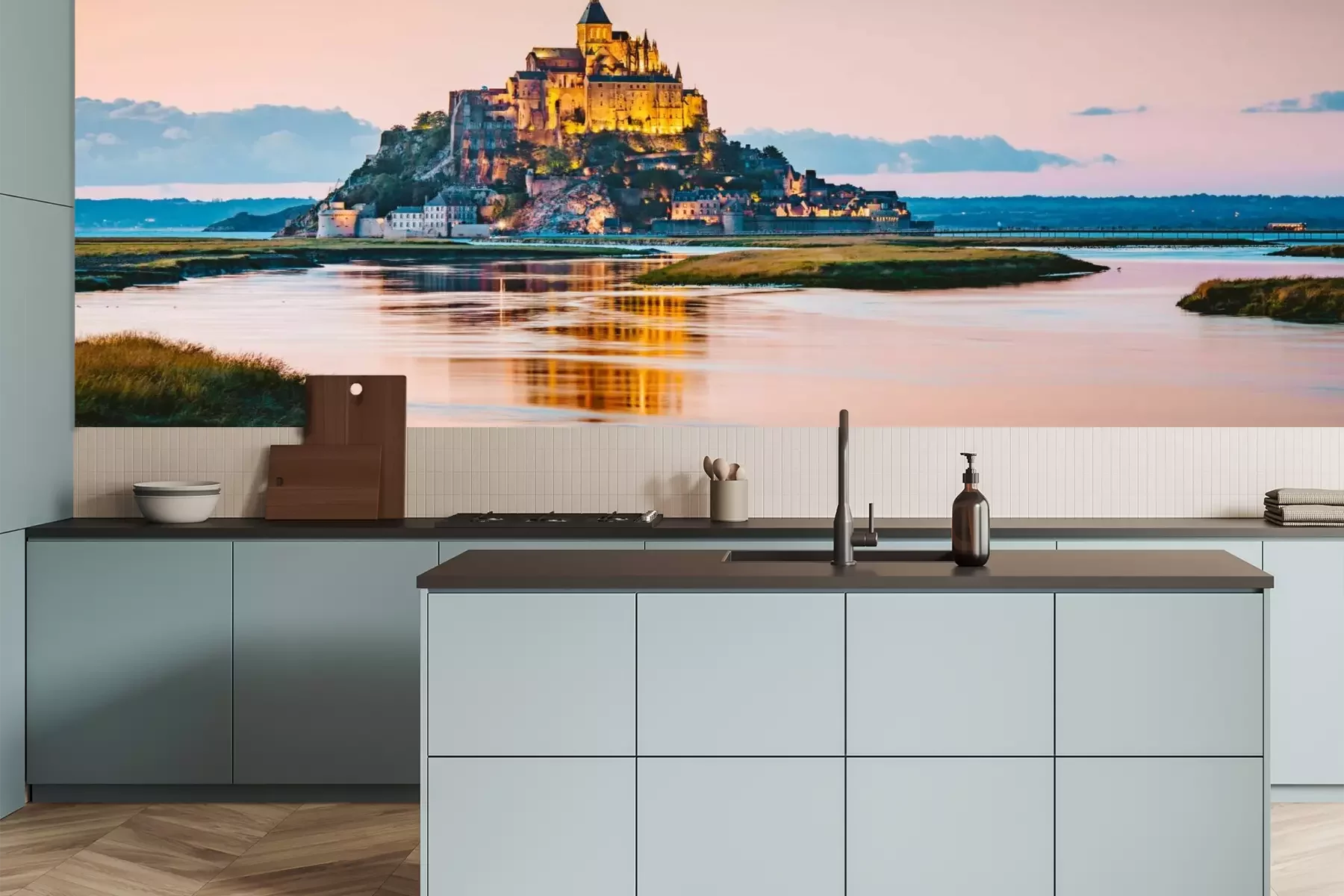 Het materiaal Premium+ is een gestructureerd vinyl op vlies met een gewicht van 255 g/m², dat kleine oneffenheden in de muur effectief camoufleert. De subtiele structuur van fijn zand geeft het oppervlak een exclusieve uitstraling, terwijl de halfmatte afwerking de diepte van de kleuren benadrukt. Het materiaal is dampdoorlatend, waardoor het ook in de keuken en badkamer kan worden gebruikt. De maximale breedte van één baan bedraagt 100 cm – bij grotere afmetingen wordt het fotobehang in meerdere gelijke banen verdeeld. De lijm wordt direct op de muur aangebracht en het behang wordt rand-aan-rand geplakt, wat zorgt voor een esthetisch resultaat zonder zichtbare naden. Het oppervlak kan gemakkelijk worden schoongemaakt door het voorzichtig af te nemen met een vochtige doek.
