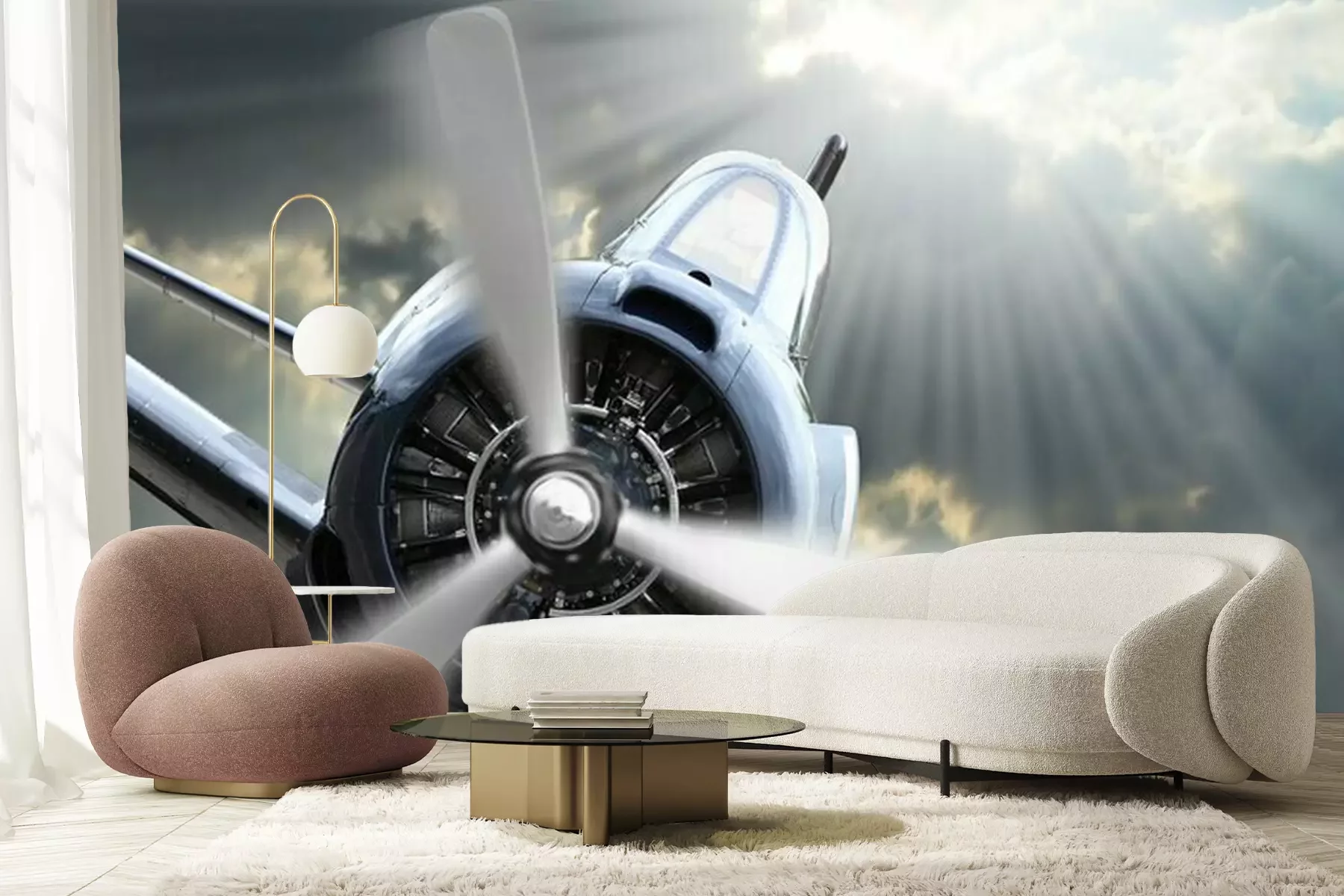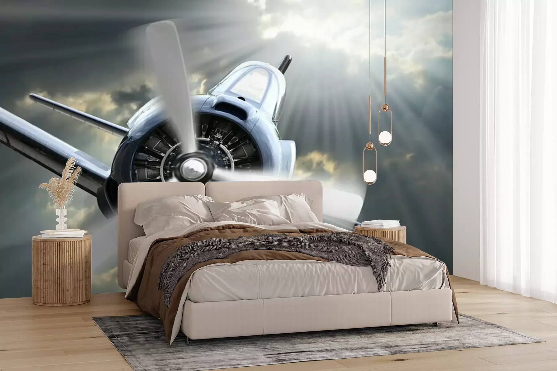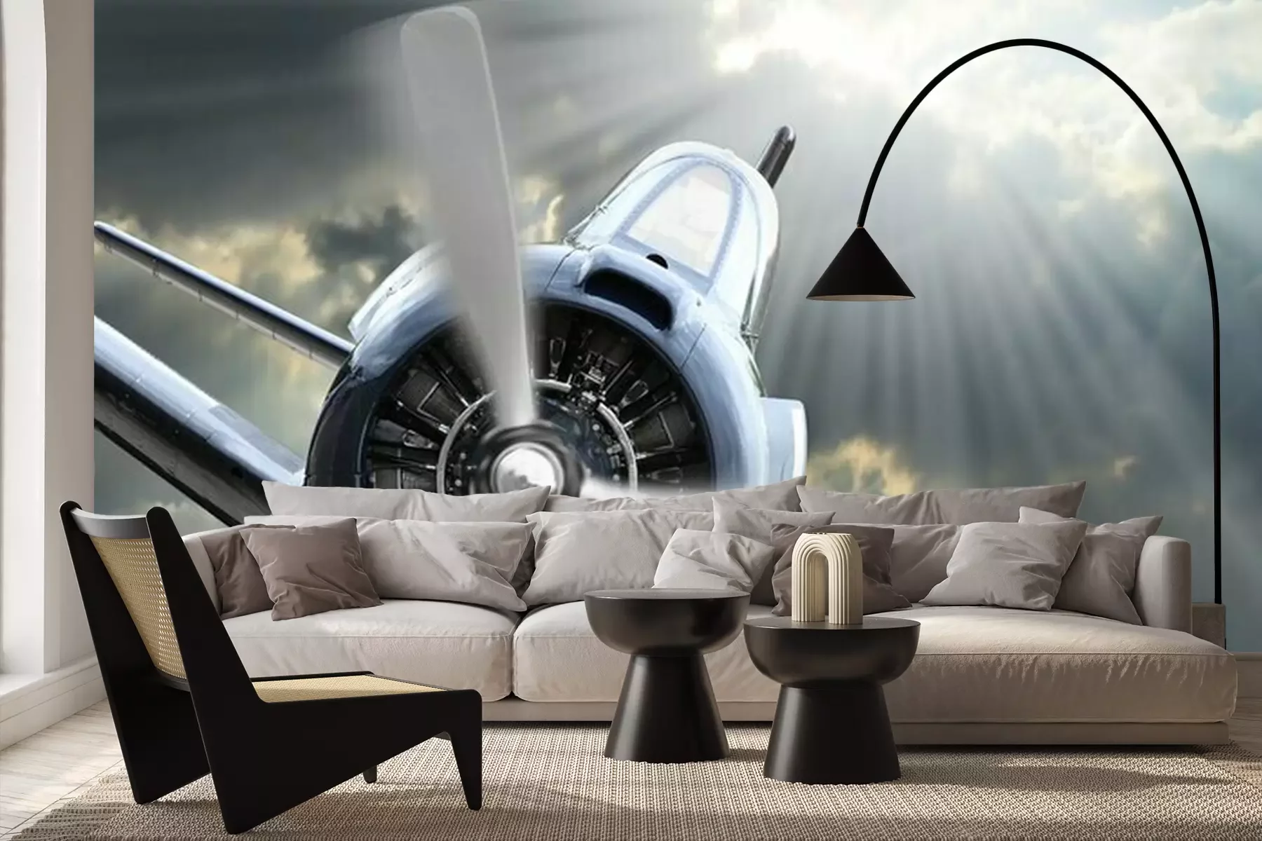 Retro vliegtuigen in beweging in de luchtFotobehang