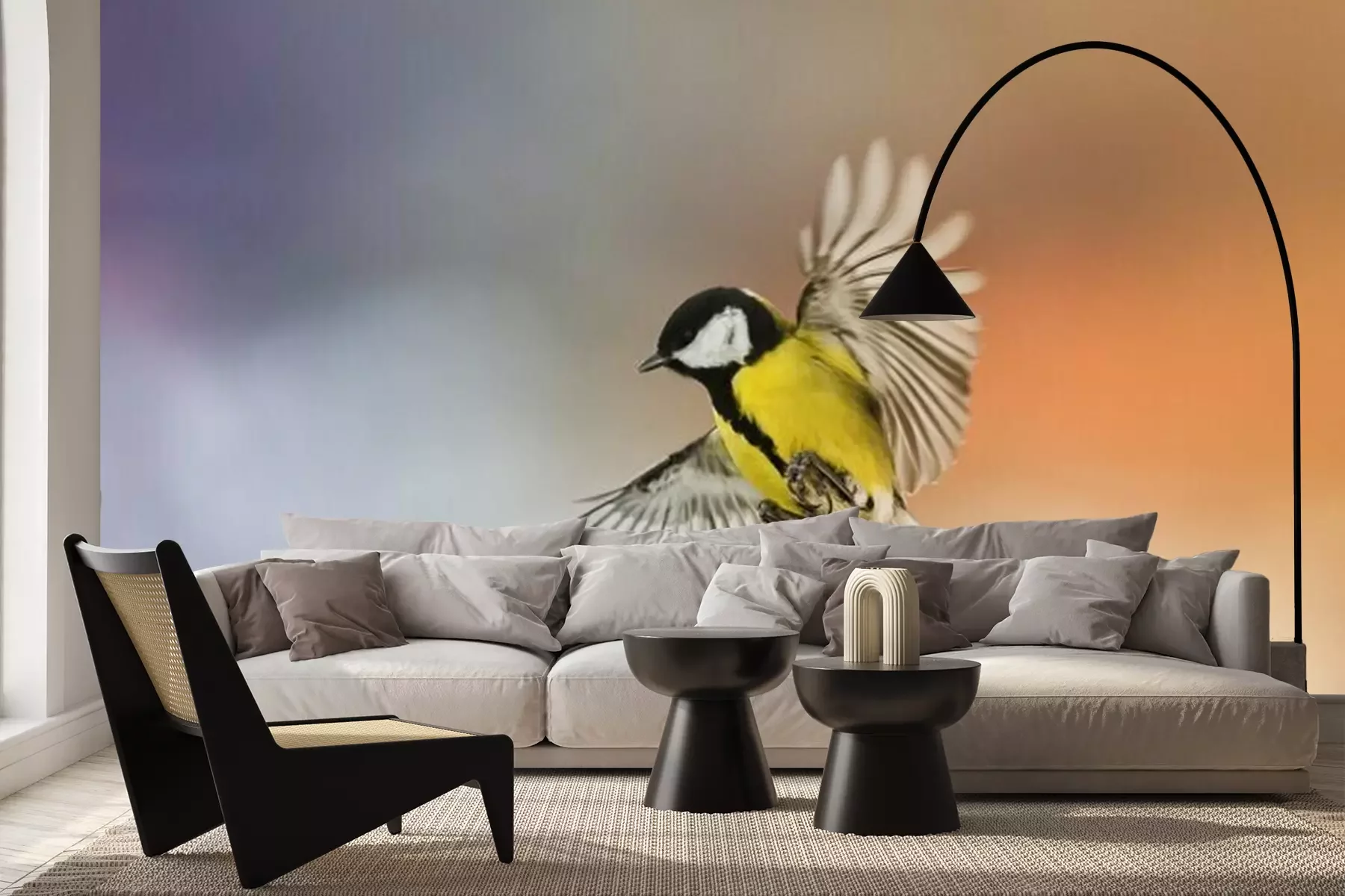 Het materiaal Premium+ is een gestructureerd vinyl op vlies met een gewicht van 255 g/m², dat kleine oneffenheden in de muur effectief camoufleert. De subtiele structuur van fijn zand geeft het oppervlak een exclusieve uitstraling, terwijl de halfmatte afwerking de diepte van de kleuren benadrukt. Het materiaal is dampdoorlatend, waardoor het ook in de keuken en badkamer kan worden gebruikt. De maximale breedte van één baan bedraagt 100 cm – bij grotere afmetingen wordt het fotobehang in meerdere gelijke banen verdeeld. De lijm wordt direct op de muur aangebracht en het behang wordt rand-aan-rand geplakt, wat zorgt voor een esthetisch resultaat zonder zichtbare naden. Het oppervlak kan gemakkelijk worden schoongemaakt door het voorzichtig af te nemen met een vochtige doek.
