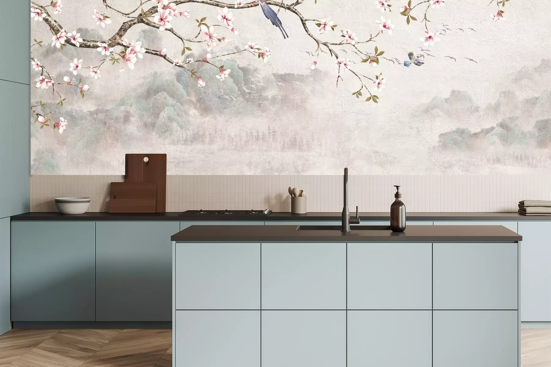 Het materiaal Premium is een glad vinyl op vlies, dat bestand is tegen uitrekken en vervorming. Het is dampdoorlatend – de muren kunnen vrij ademen – waardoor het geschikt is voor gebruik in de keuken en badkamer. Bij vervuiling kan het materiaal worden afgenomen met een vochtige doek. De maximale breedte van één baan bedraagt 95 of 105 cm, afhankelijk van de beschikbaarheid. Montage vindt plaats met de rand-aan-rand methode, wat een esthetisch resultaat zonder zichtbare naden oplevert. Omdat de lijm rechtstreeks op de muur wordt aangebracht, verloopt de installatie van het fotobehang snel en eenvoudig.