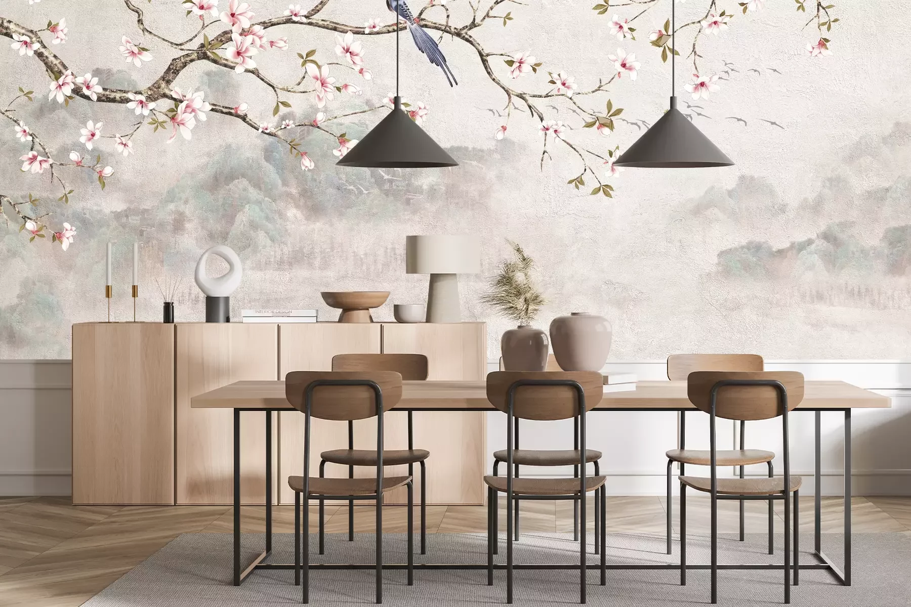 Het materiaal Premium+ is een gestructureerd vinyl op vlies met een gewicht van 255 g/m², dat kleine oneffenheden in de muur effectief camoufleert. De subtiele structuur van fijn zand geeft het oppervlak een exclusieve uitstraling, terwijl de halfmatte afwerking de diepte van de kleuren benadrukt. Het materiaal is dampdoorlatend, waardoor het ook in de keuken en badkamer kan worden gebruikt. De maximale breedte van één baan bedraagt 100 cm – bij grotere afmetingen wordt het fotobehang in meerdere gelijke banen verdeeld. De lijm wordt direct op de muur aangebracht en het behang wordt rand-aan-rand geplakt, wat zorgt voor een esthetisch resultaat zonder zichtbare naden. Het oppervlak kan gemakkelijk worden schoongemaakt door het voorzichtig af te nemen met een vochtige doek.