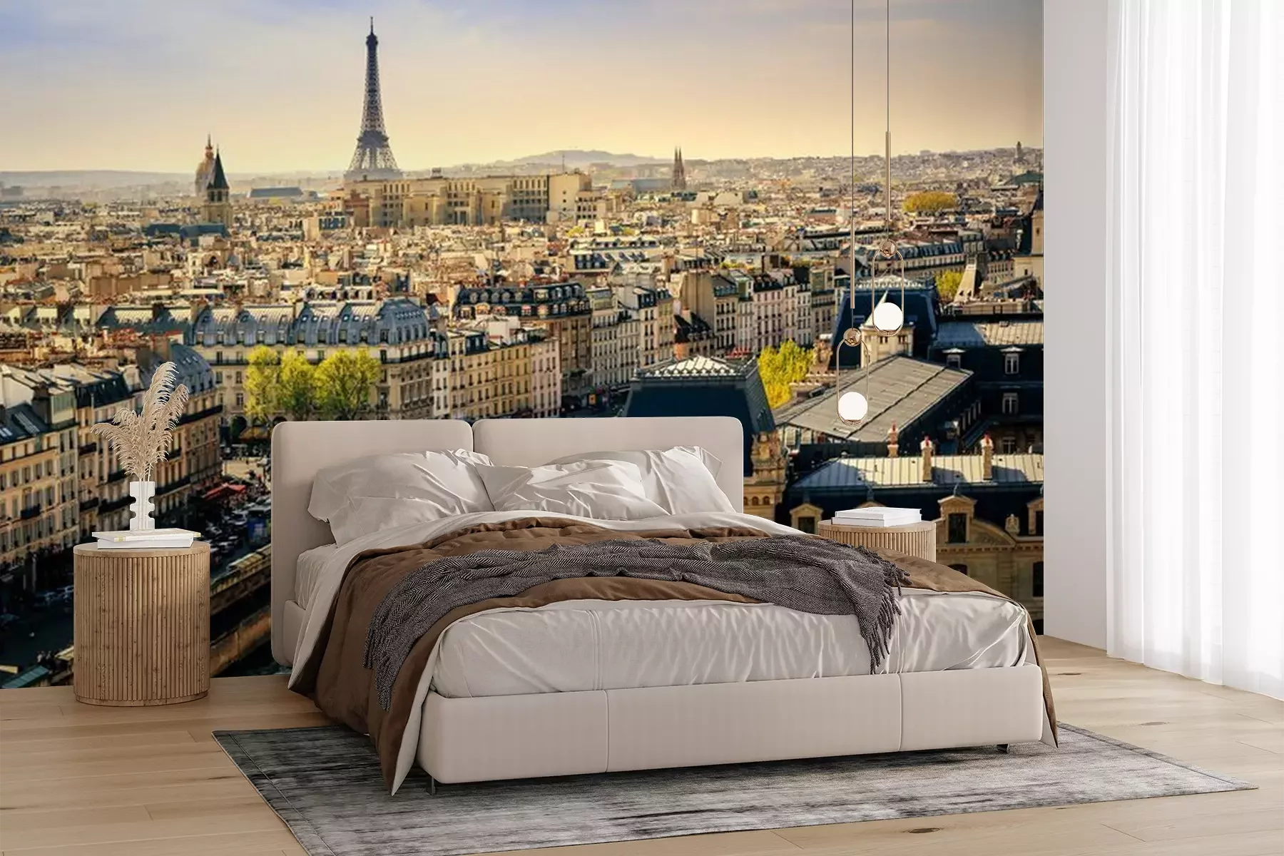 Het materiaal Premium+ is een gestructureerd vinyl op vlies met een gewicht van 255 g/m², dat kleine oneffenheden in de muur effectief camoufleert. De subtiele structuur van fijn zand geeft het oppervlak een exclusieve uitstraling, terwijl de halfmatte afwerking de diepte van de kleuren benadrukt. Het materiaal is dampdoorlatend, waardoor het ook in de keuken en badkamer kan worden gebruikt. De maximale breedte van één baan bedraagt 100 cm – bij grotere afmetingen wordt het fotobehang in meerdere gelijke banen verdeeld. De lijm wordt direct op de muur aangebracht en het behang wordt rand-aan-rand geplakt, wat zorgt voor een esthetisch resultaat zonder zichtbare naden. Het oppervlak kan gemakkelijk worden schoongemaakt door het voorzichtig af te nemen met een vochtige doek.