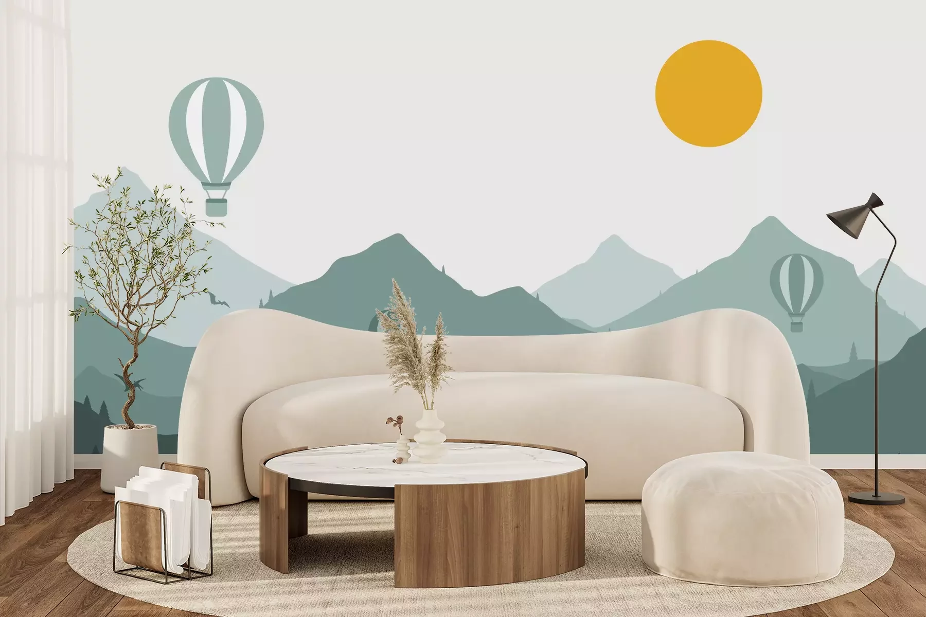 Het materiaal Premium+ is een gestructureerd vinyl op vlies met een gewicht van 255 g/m², dat kleine oneffenheden in de muur effectief camoufleert. De subtiele structuur van fijn zand geeft het oppervlak een exclusieve uitstraling, terwijl de halfmatte afwerking de diepte van de kleuren benadrukt. Het materiaal is dampdoorlatend, waardoor het ook in de keuken en badkamer kan worden gebruikt. De maximale breedte van één baan bedraagt 100 cm – bij grotere afmetingen wordt het fotobehang in meerdere gelijke banen verdeeld. De lijm wordt direct op de muur aangebracht en het behang wordt rand-aan-rand geplakt, wat zorgt voor een esthetisch resultaat zonder zichtbare naden. Het oppervlak kan gemakkelijk worden schoongemaakt door het voorzichtig af te nemen met een vochtige doek.