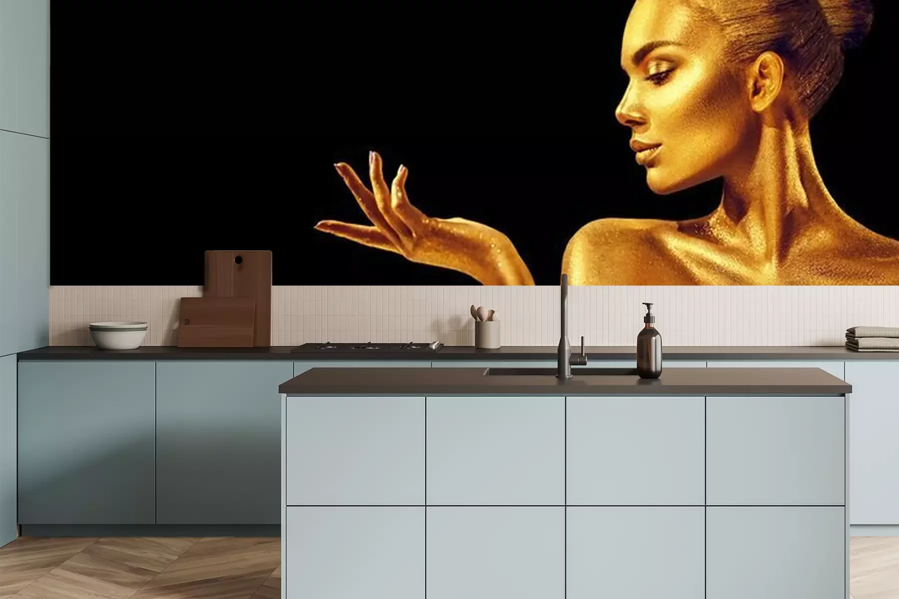 Het materiaal Premium is een glad vinyl op vlies, dat bestand is tegen uitrekken en vervorming. Het is dampdoorlatend – de muren kunnen vrij ademen – waardoor het geschikt is voor gebruik in de keuken en badkamer. Bij vervuiling kan het materiaal worden afgenomen met een vochtige doek. De maximale breedte van één baan bedraagt 95 of 105 cm, afhankelijk van de beschikbaarheid. Montage vindt plaats met de rand-aan-rand methode, wat een esthetisch resultaat zonder zichtbare naden oplevert. Omdat de lijm rechtstreeks op de muur wordt aangebracht, verloopt de installatie van het fotobehang snel en eenvoudig.