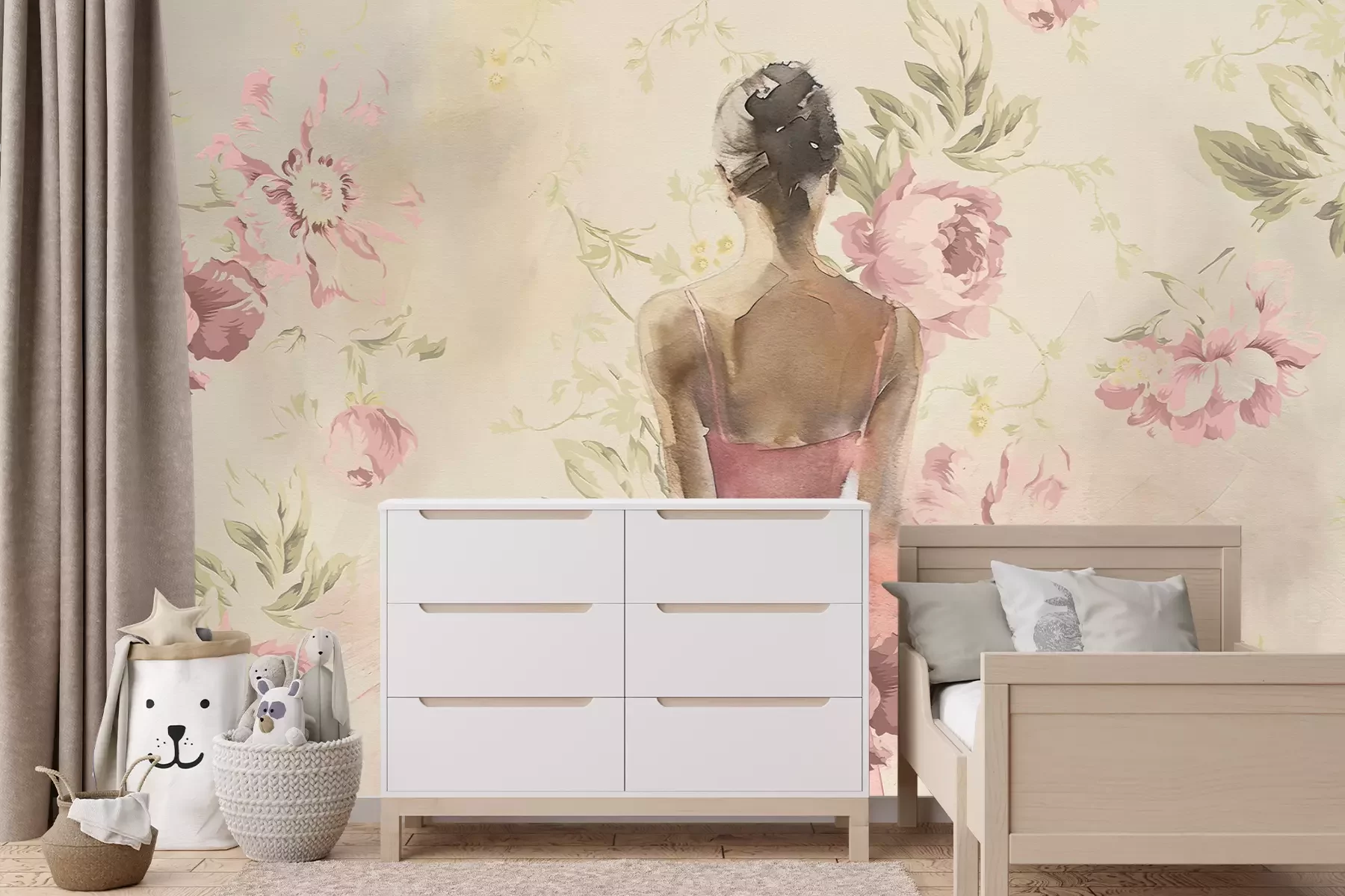 Het materiaal Premium+ is een gestructureerd vinyl op vlies met een gewicht van 255 g/m², dat kleine oneffenheden in de muur effectief camoufleert. De subtiele structuur van fijn zand geeft het oppervlak een exclusieve uitstraling, terwijl de halfmatte afwerking de diepte van de kleuren benadrukt. Het materiaal is dampdoorlatend, waardoor het ook in de keuken en badkamer kan worden gebruikt. De maximale breedte van één baan bedraagt 100 cm – bij grotere afmetingen wordt het fotobehang in meerdere gelijke banen verdeeld. De lijm wordt direct op de muur aangebracht en het behang wordt rand-aan-rand geplakt, wat zorgt voor een esthetisch resultaat zonder zichtbare naden. Het oppervlak kan gemakkelijk worden schoongemaakt door het voorzichtig af te nemen met een vochtige doek.