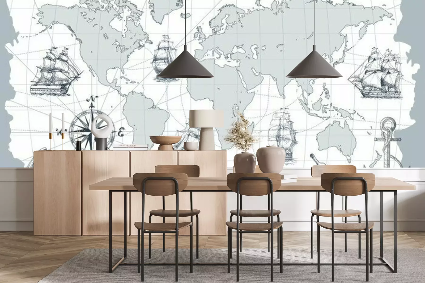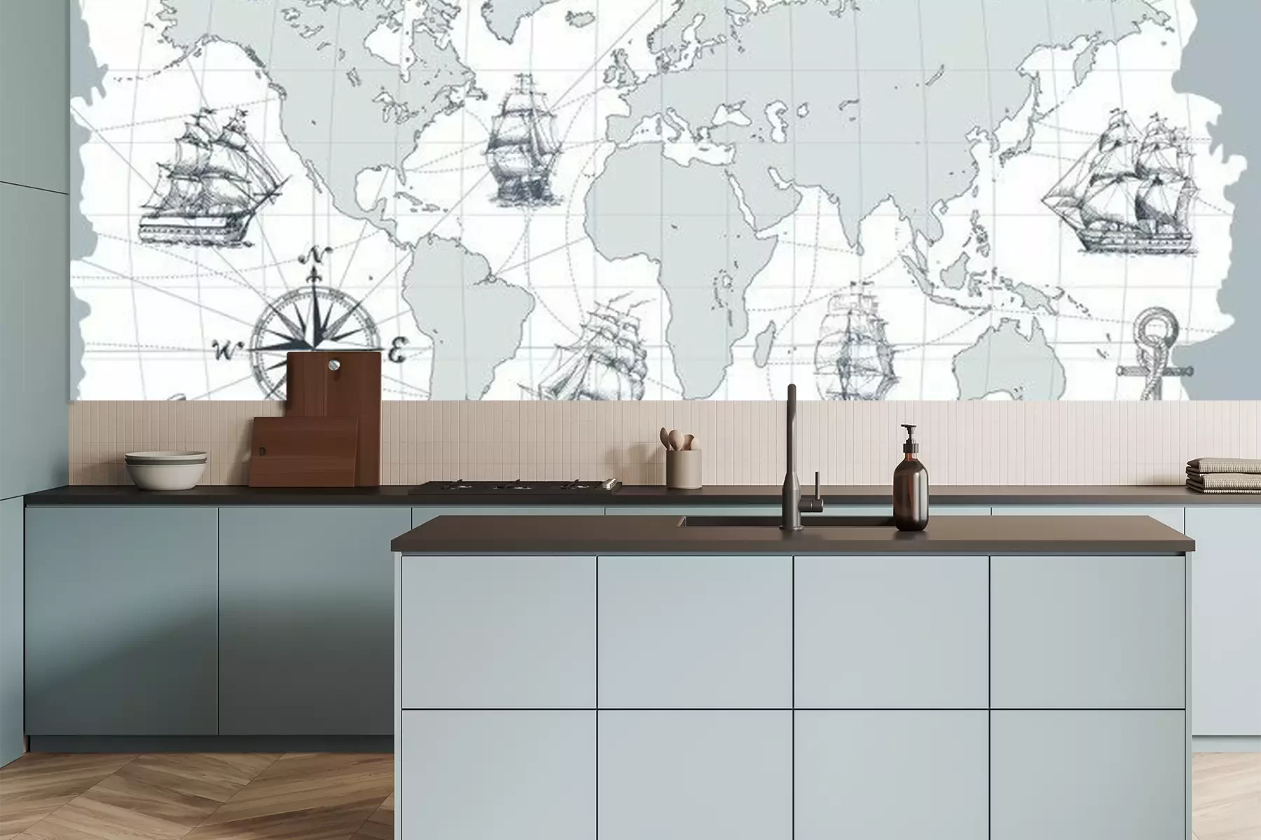 Fotobehang Een wereldkaart in nautische stijl