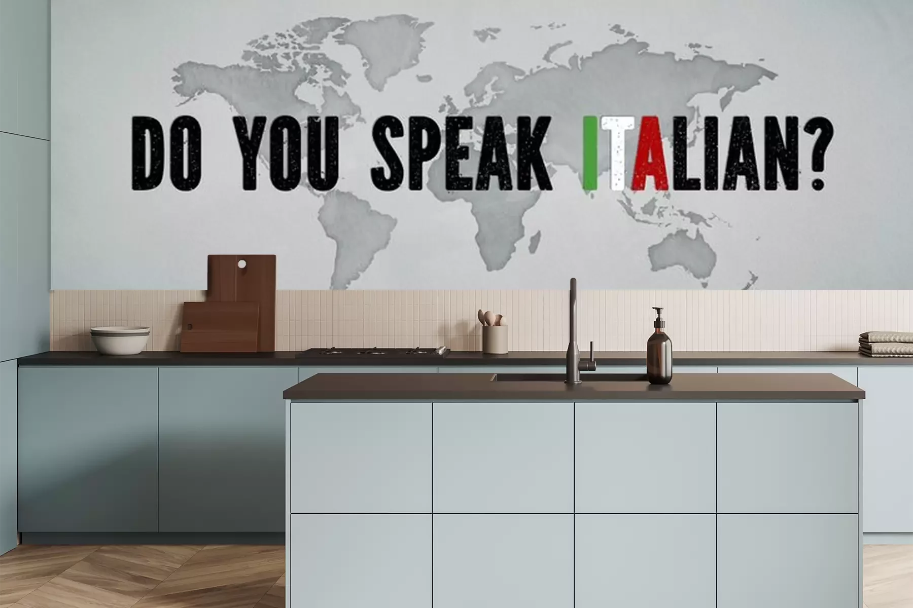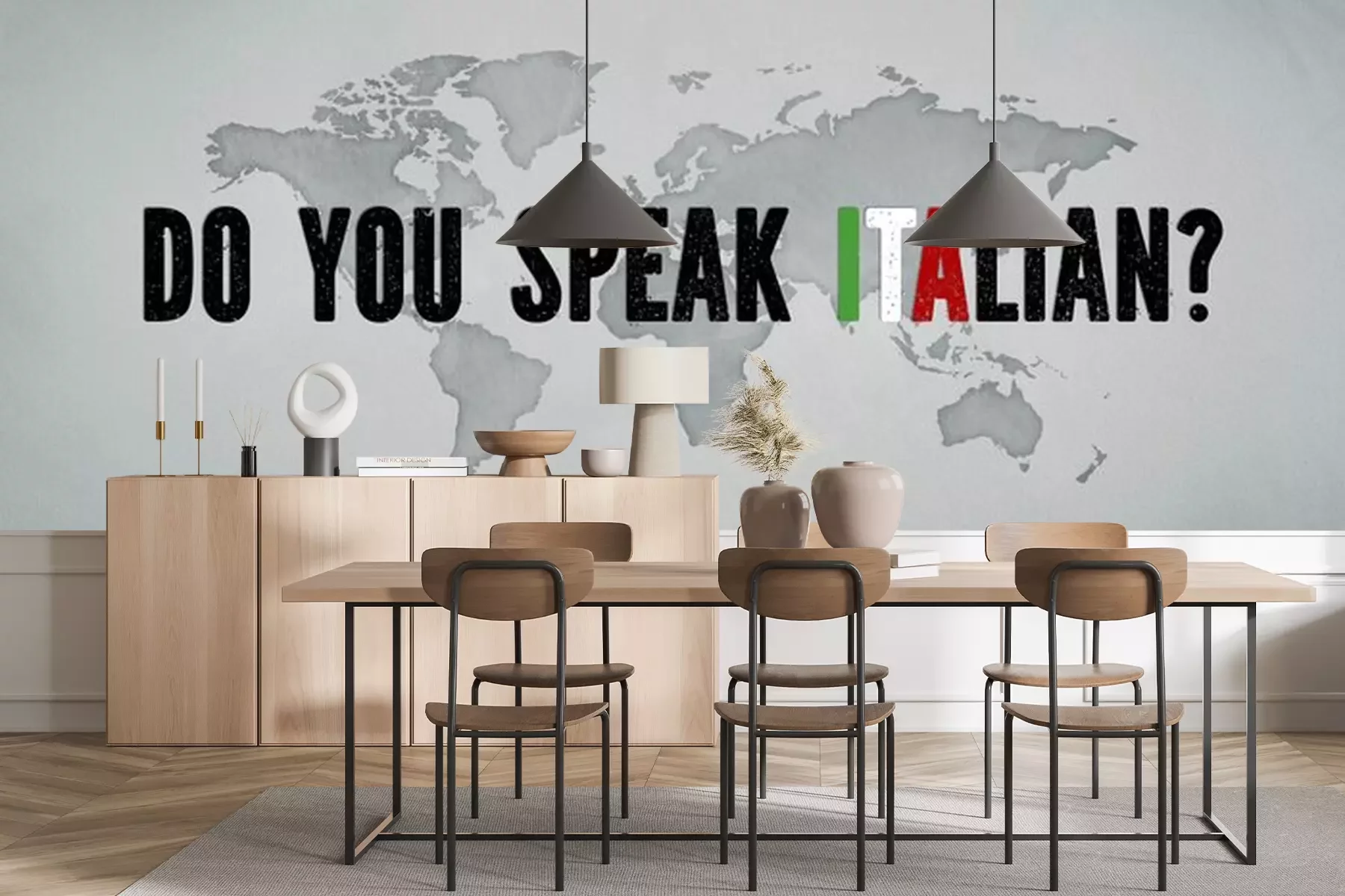 Fotobehang Een wereldkaart met de inscriptie "Spreekt je Italiaans?"