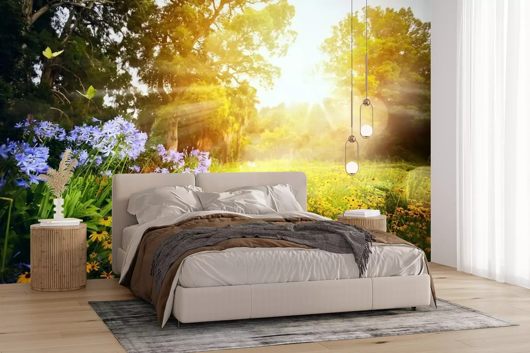 Het materiaal Premium+ is een gestructureerd vinyl op vlies met een gewicht van 255 g/m², dat kleine oneffenheden in de muur effectief camoufleert. De subtiele structuur van fijn zand geeft het oppervlak een exclusieve uitstraling, terwijl de halfmatte afwerking de diepte van de kleuren benadrukt. Het materiaal is dampdoorlatend, waardoor het ook in de keuken en badkamer kan worden gebruikt. De maximale breedte van één baan bedraagt 100 cm – bij grotere afmetingen wordt het fotobehang in meerdere gelijke banen verdeeld. De lijm wordt direct op de muur aangebracht en het behang wordt rand-aan-rand geplakt, wat zorgt voor een esthetisch resultaat zonder zichtbare naden. Het oppervlak kan gemakkelijk worden schoongemaakt door het voorzichtig af te nemen met een vochtige doek.