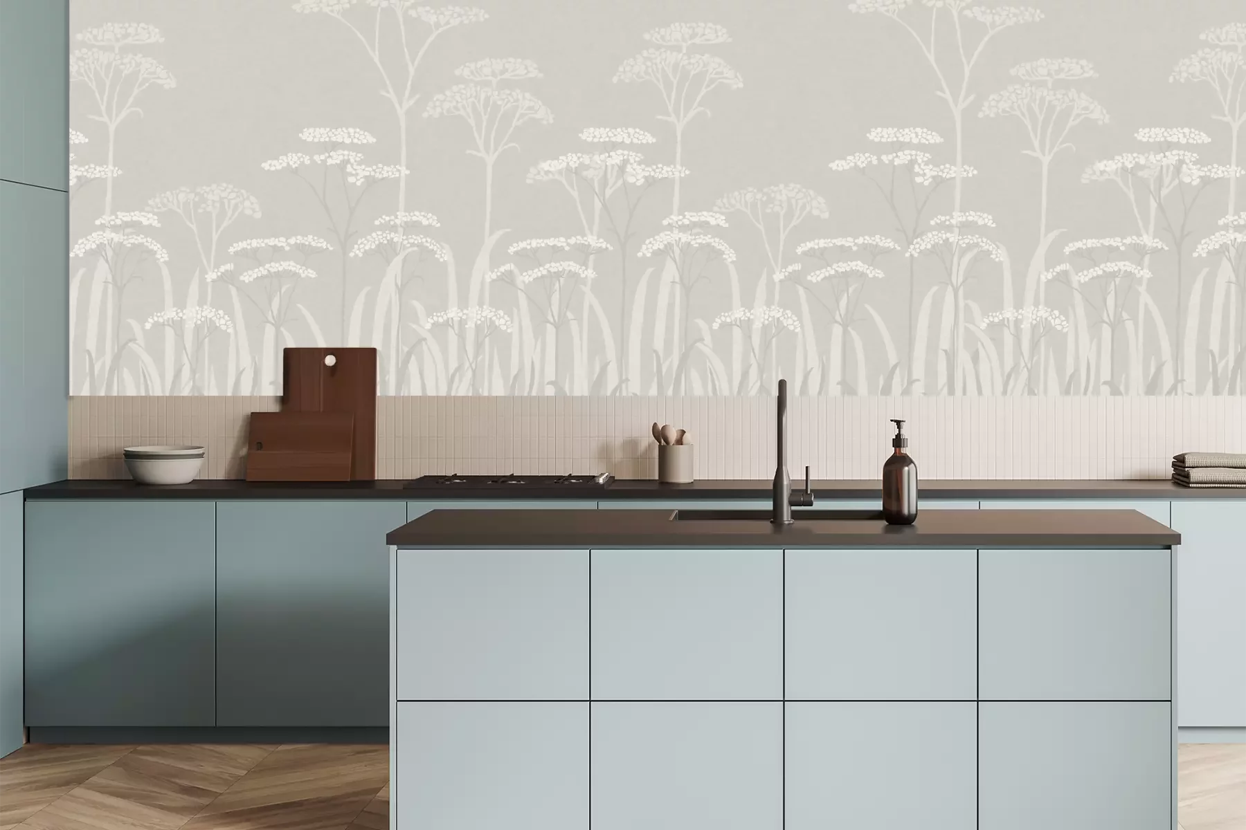 Het materiaal Premium is een glad vinyl op vlies, dat bestand is tegen uitrekken en vervorming. Het is dampdoorlatend – de muren kunnen vrij ademen – waardoor het geschikt is voor gebruik in de keuken en badkamer. Bij vervuiling kan het materiaal worden afgenomen met een vochtige doek. De maximale breedte van één baan bedraagt 95 of 105 cm, afhankelijk van de beschikbaarheid. Montage vindt plaats met de rand-aan-rand methode, wat een esthetisch resultaat zonder zichtbare naden oplevert. Omdat de lijm rechtstreeks op de muur wordt aangebracht, verloopt de installatie van het fotobehang snel en eenvoudig.