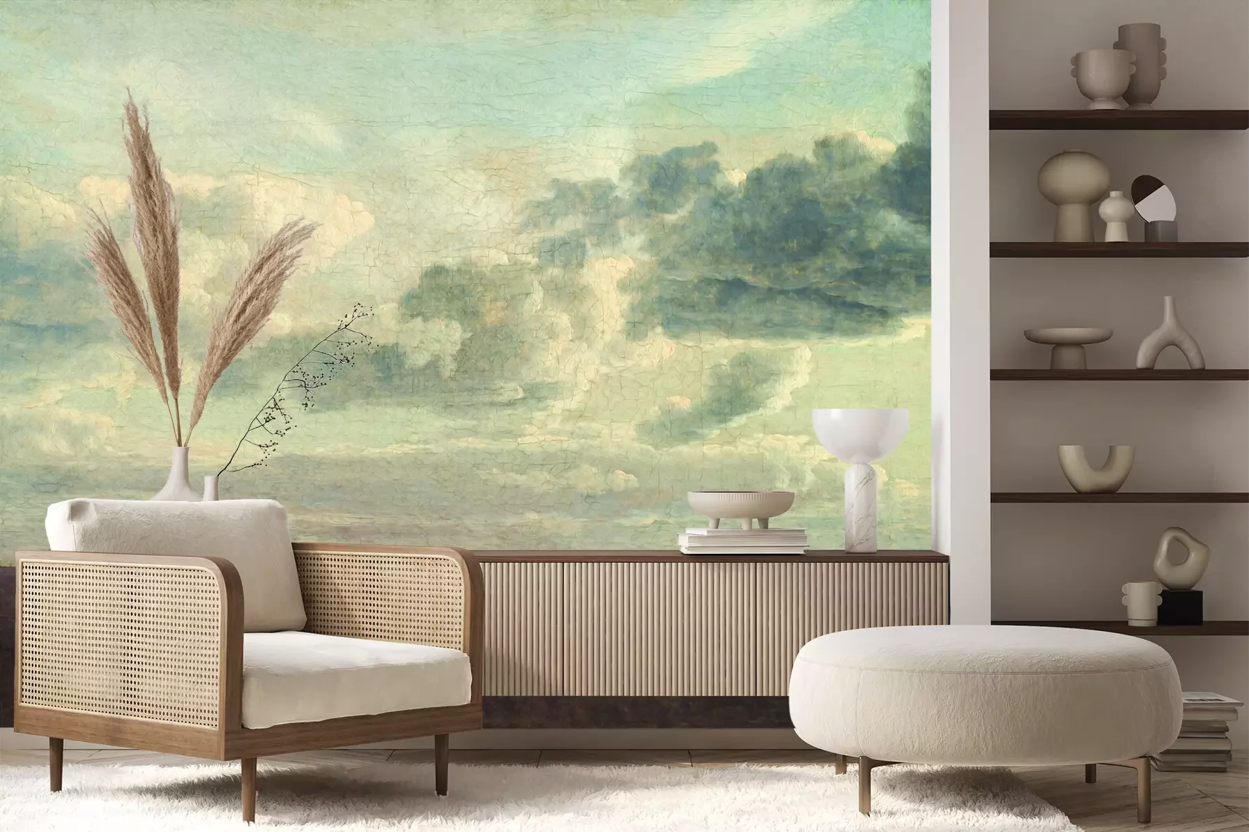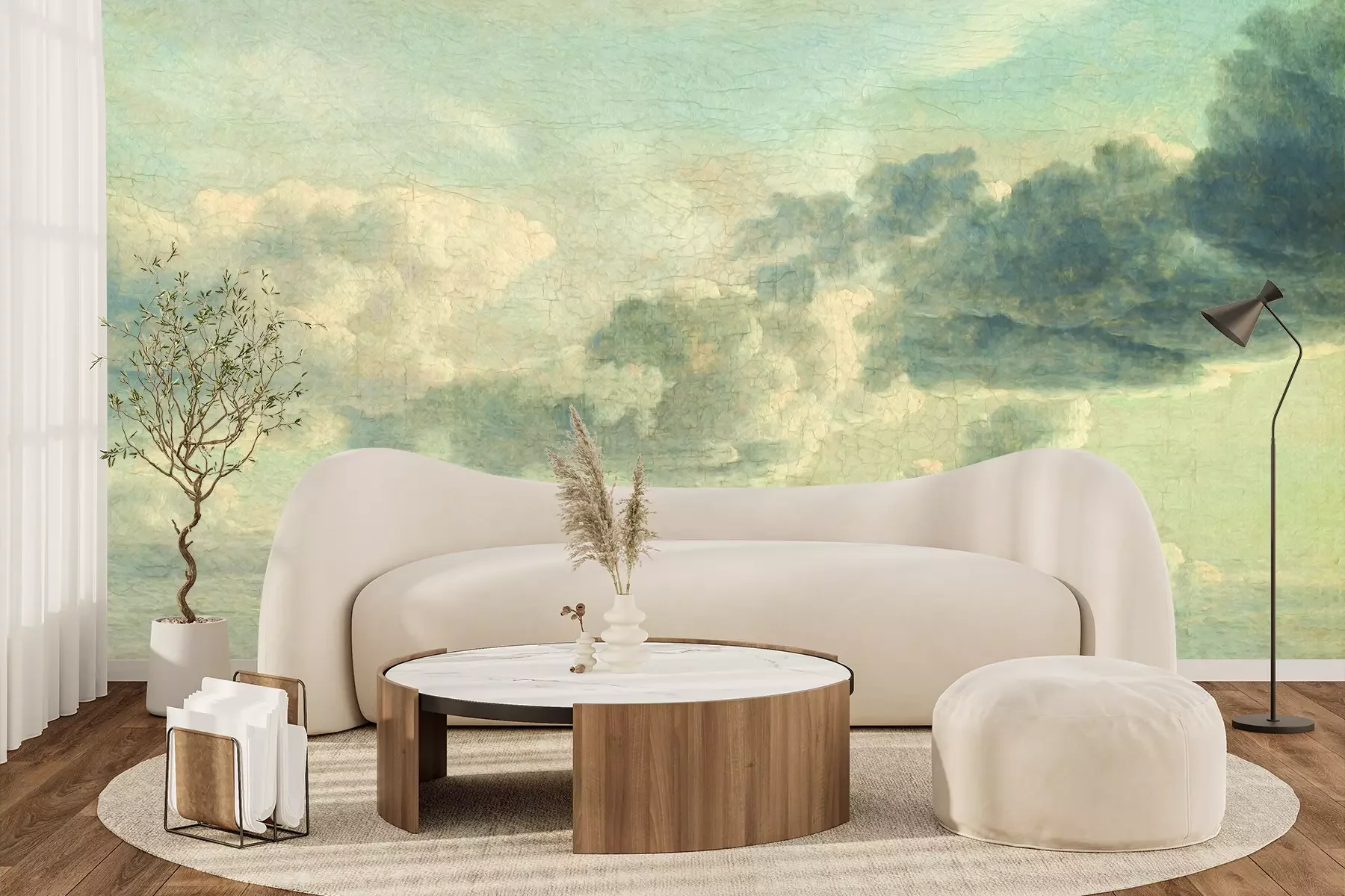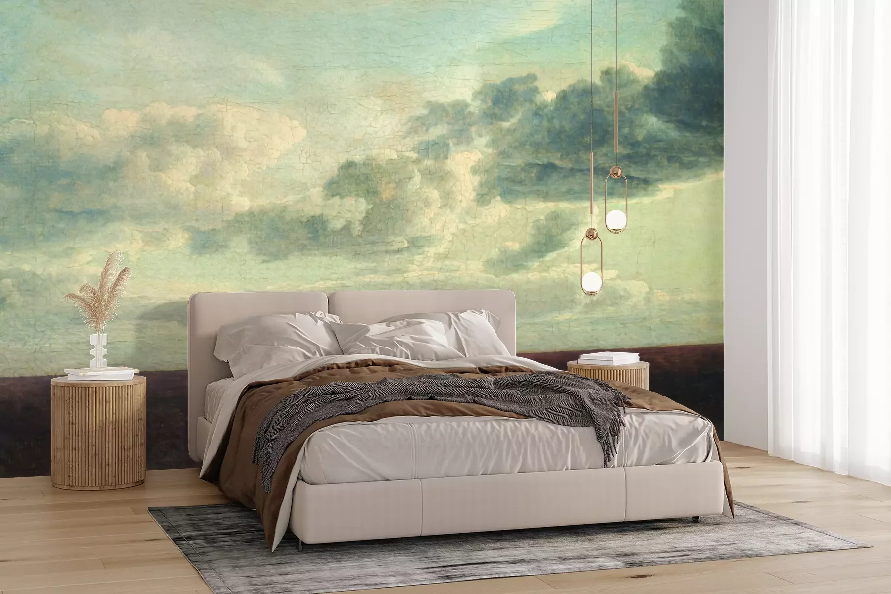 Het materiaal Premium+ is een gestructureerd vinyl op vlies met een gewicht van 255 g/m², dat kleine oneffenheden in de muur effectief camoufleert. De subtiele structuur van fijn zand geeft het oppervlak een exclusieve uitstraling, terwijl de halfmatte afwerking de diepte van de kleuren benadrukt. Het materiaal is dampdoorlatend, waardoor het ook in de keuken en badkamer kan worden gebruikt. De maximale breedte van één baan bedraagt 100 cm – bij grotere afmetingen wordt het fotobehang in meerdere gelijke banen verdeeld. De lijm wordt direct op de muur aangebracht en het behang wordt rand-aan-rand geplakt, wat zorgt voor een esthetisch resultaat zonder zichtbare naden. Het oppervlak kan gemakkelijk worden schoongemaakt door het voorzichtig af te nemen met een vochtige doek.