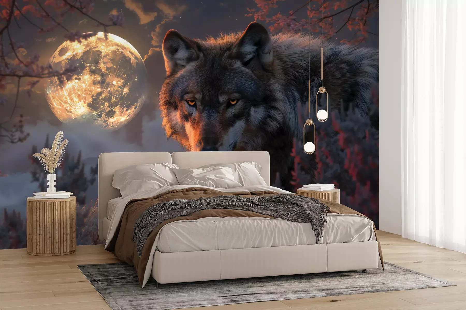 Het materiaal Premium+ is een gestructureerd vinyl op vlies met een gewicht van 255 g/m², dat kleine oneffenheden in de muur effectief camoufleert. De subtiele structuur van fijn zand geeft het oppervlak een exclusieve uitstraling, terwijl de halfmatte afwerking de diepte van de kleuren benadrukt. Het materiaal is dampdoorlatend, waardoor het ook in de keuken en badkamer kan worden gebruikt. De maximale breedte van één baan bedraagt 100 cm – bij grotere afmetingen wordt het fotobehang in meerdere gelijke banen verdeeld. De lijm wordt direct op de muur aangebracht en het behang wordt rand-aan-rand geplakt, wat zorgt voor een esthetisch resultaat zonder zichtbare naden. Het oppervlak kan gemakkelijk worden schoongemaakt door het voorzichtig af te nemen met een vochtige doek.