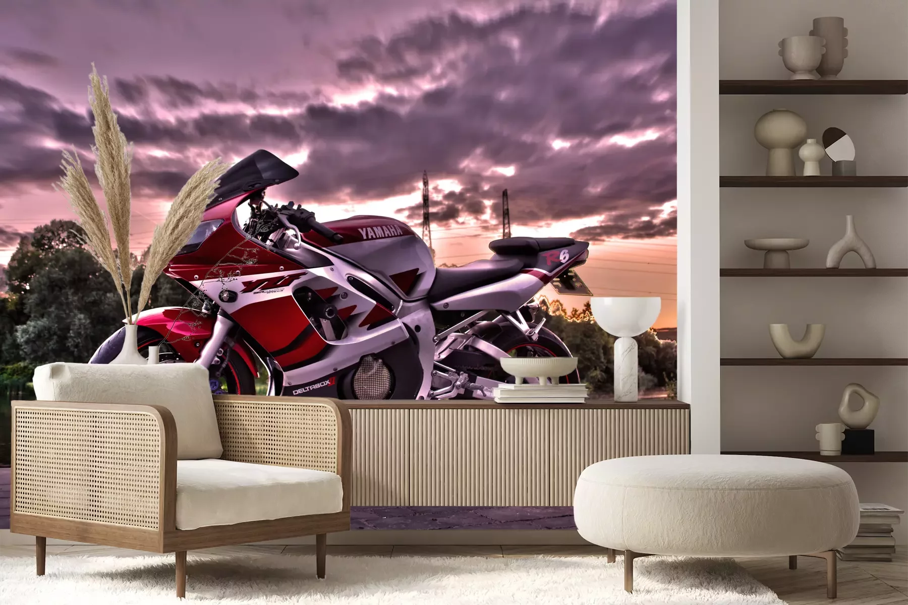 Het materiaal Premium+ is een gestructureerd vinyl op vlies met een gewicht van 255 g/m², dat kleine oneffenheden in de muur effectief camoufleert. De subtiele structuur van fijn zand geeft het oppervlak een exclusieve uitstraling, terwijl de halfmatte afwerking de diepte van de kleuren benadrukt. Het materiaal is dampdoorlatend, waardoor het ook in de keuken en badkamer kan worden gebruikt. De maximale breedte van één baan bedraagt 100 cm – bij grotere afmetingen wordt het fotobehang in meerdere gelijke banen verdeeld. De lijm wordt direct op de muur aangebracht en het behang wordt rand-aan-rand geplakt, wat zorgt voor een esthetisch resultaat zonder zichtbare naden. Het oppervlak kan gemakkelijk worden schoongemaakt door het voorzichtig af te nemen met een vochtige doek.