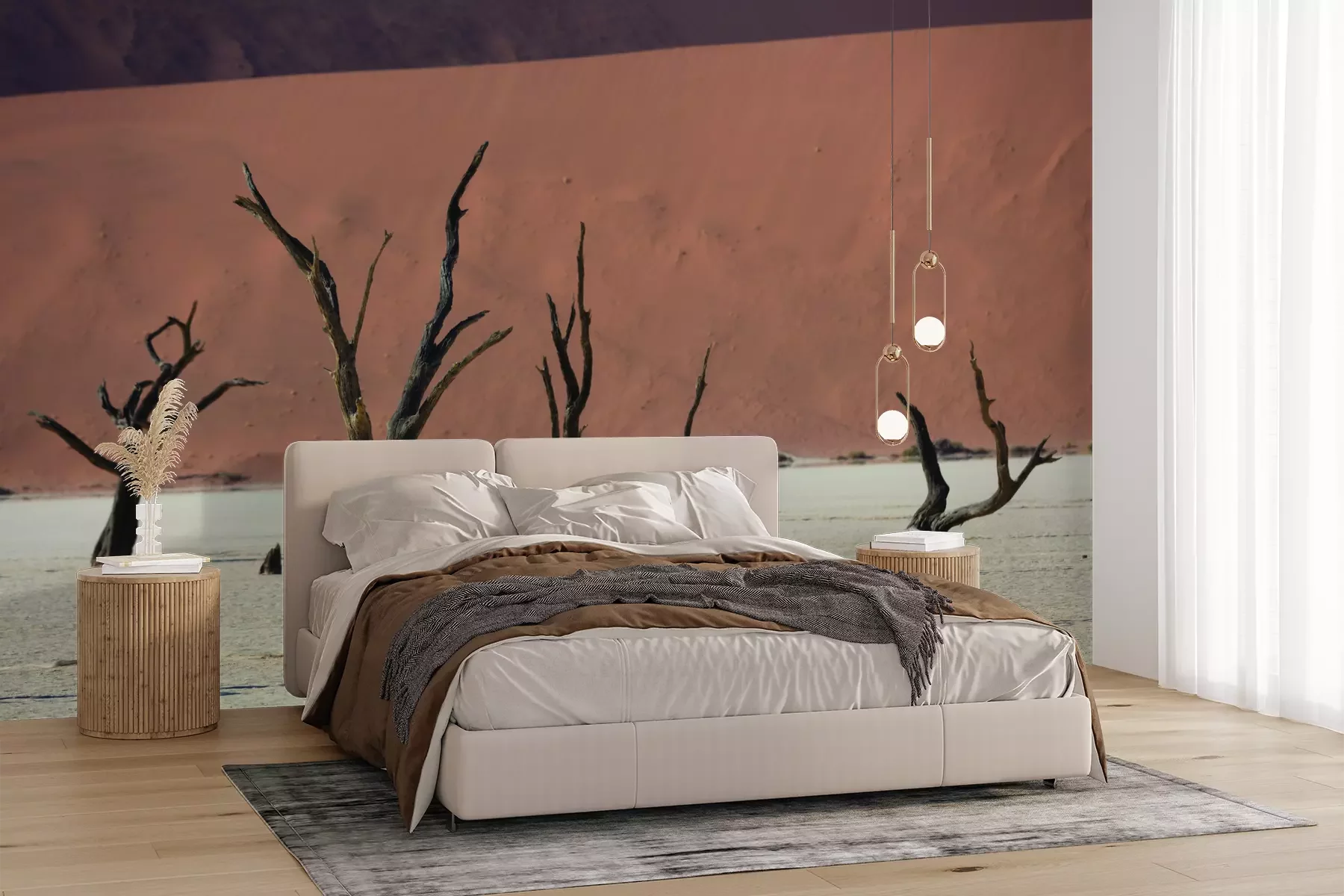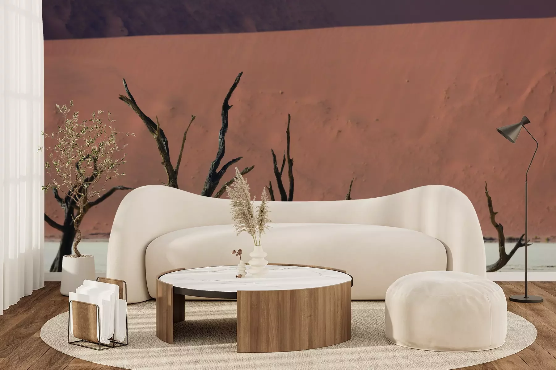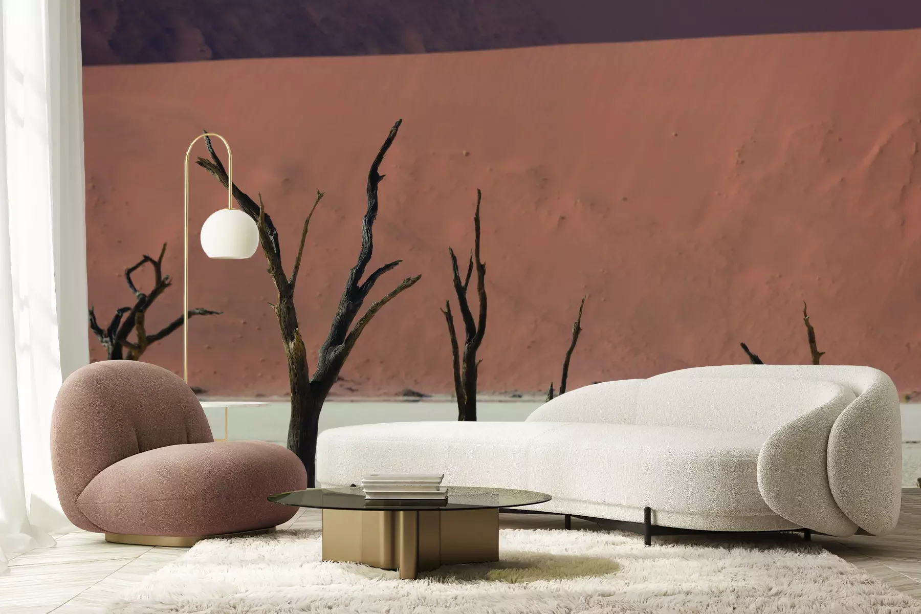 Het materiaal Premium+ is een gestructureerd vinyl op vlies met een gewicht van 255 g/m², dat kleine oneffenheden in de muur effectief camoufleert. De subtiele structuur van fijn zand geeft het oppervlak een exclusieve uitstraling, terwijl de halfmatte afwerking de diepte van de kleuren benadrukt. Het materiaal is dampdoorlatend, waardoor het ook in de keuken en badkamer kan worden gebruikt. De maximale breedte van één baan bedraagt 100 cm – bij grotere afmetingen wordt het fotobehang in meerdere gelijke banen verdeeld. De lijm wordt direct op de muur aangebracht en het behang wordt rand-aan-rand geplakt, wat zorgt voor een esthetisch resultaat zonder zichtbare naden. Het oppervlak kan gemakkelijk worden schoongemaakt door het voorzichtig af te nemen met een vochtige doek.